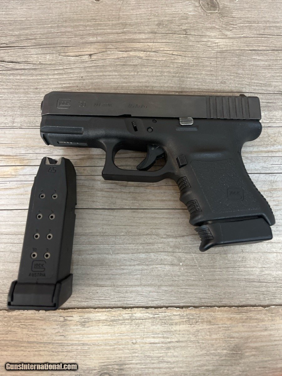 Description: Guns Listing ID: 604549 PISTOL: GLOCK MODEL 30, SERIAL NUMBER UFW392, SEMI - AUTOMATIC, 45 ACP (45 AUTO), BLACK (MATTE), CASE NOT INCLUDED, 3.75\", WITH EXTRA MAG The Glock 30 is a compact, semi-automatic handgun chambered in .45 ACP. It is part of Glock’s lineup designed to offer the larger .45 caliber in a smaller, more compact frame than full-size models. The Glock 30 features a polymer frame and steel slide, using Glock’s well-known striker-fired system. Its shorter barrel and grip make it more compact than many traditional .45-caliber pistols while still maintaining the brand’s reputation for durability and reliability. Like other Glock pistols, it has a simple, minimalist design with standard safety mechanisms integrated into the trigger system rather than external manual safeties. Manufacturer: GLOCK Model: G30 Caliber Info: .45 ACP Condition: Used - Non-Certified Barrels: 3.75" BARREL Action: SEMI AUTOMATIC Finish: black matte Price: $399.99 Contact Seller |