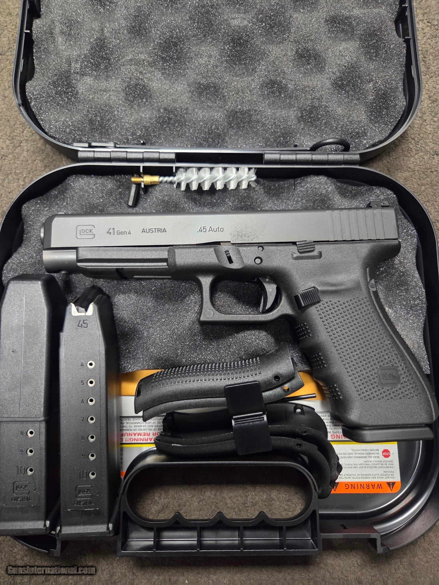 Description: Guns Listing ID: 583136 THIS \"USED\" PISTOL APPEARS TO BE IN PERFOCT \"NIB\" UNFIRED CONDITION. THREE 10 ROUND MAGAZINES AND GRIP ACCESSORIES ARE INCLUDED AS PICTURED. The GLOCK 41 Gen4 is a 45 Auto caliber pistol designed to maximize sight radius while achieving perfect weight distribution and balance. The longer barrel and slide help to reduce muzzle flip and felt recoil whereas the extended sight radius provides better accuracy. The Modular Back Strap system makes it possible to instantly customize its grip to accommodate any hand size. The reversible magazine catch makes it ideal for left and right-handed shooters. Manufacturer: GLOCK Model: G41 GEN 4 Caliber Info: .45 ACP Condition: Used - Non-Certified Barrels: 5.3" BARREL Action: STRIKER FIRED Weight: 1.7 lbs. Price: $650.99 Contact Seller |