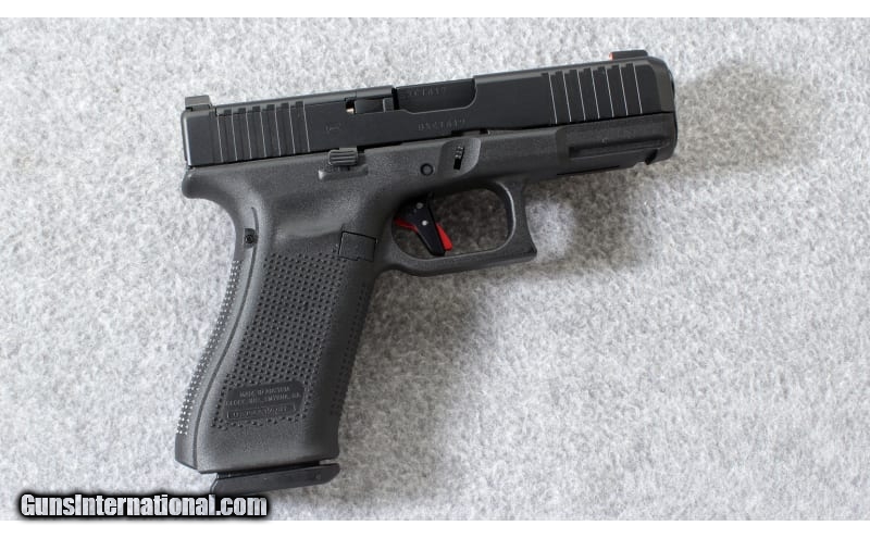Description: The GLOCK® G45 Gen5 MOS Semi-Auto Pistol combines a compact slide with a full-size frame, yet it retains all the great features that make the Gen5 great. The convenient, slide-in Modular Optic System configuration lets you mount a small reflex sight on the slide, and this slide features the highly protective nDLC finish in non-reflective black. Serrations at the sides add extra grip when manipulating the slide. This GLOCK Gen5 features the GLOCK Marksman Barrel (GMB) for accuracy you can count on when you need it most. Black, textured, polymer grips deliver a comfortable, controlled shooting experience. The flared mag-well lets you reload with quickness and ease. Fixed front and rear sights line up for reliable accuracy. Additional features include reversible magazine catch, ambidextrous slide stop lever, and the Modular Backstrap System (MBS) for premium adjustability. Plastic gun case and 3 magazines included. 9mm Parabellum SOLD Metal Condition: Excellent Bore Condition: Excellent with signs of use Barrels: 4.02 inch barrel Triggers: Timney trigger Weight: 25 Oz. Sights: AmeriGlo night sights Item Location: Lehi, UT |