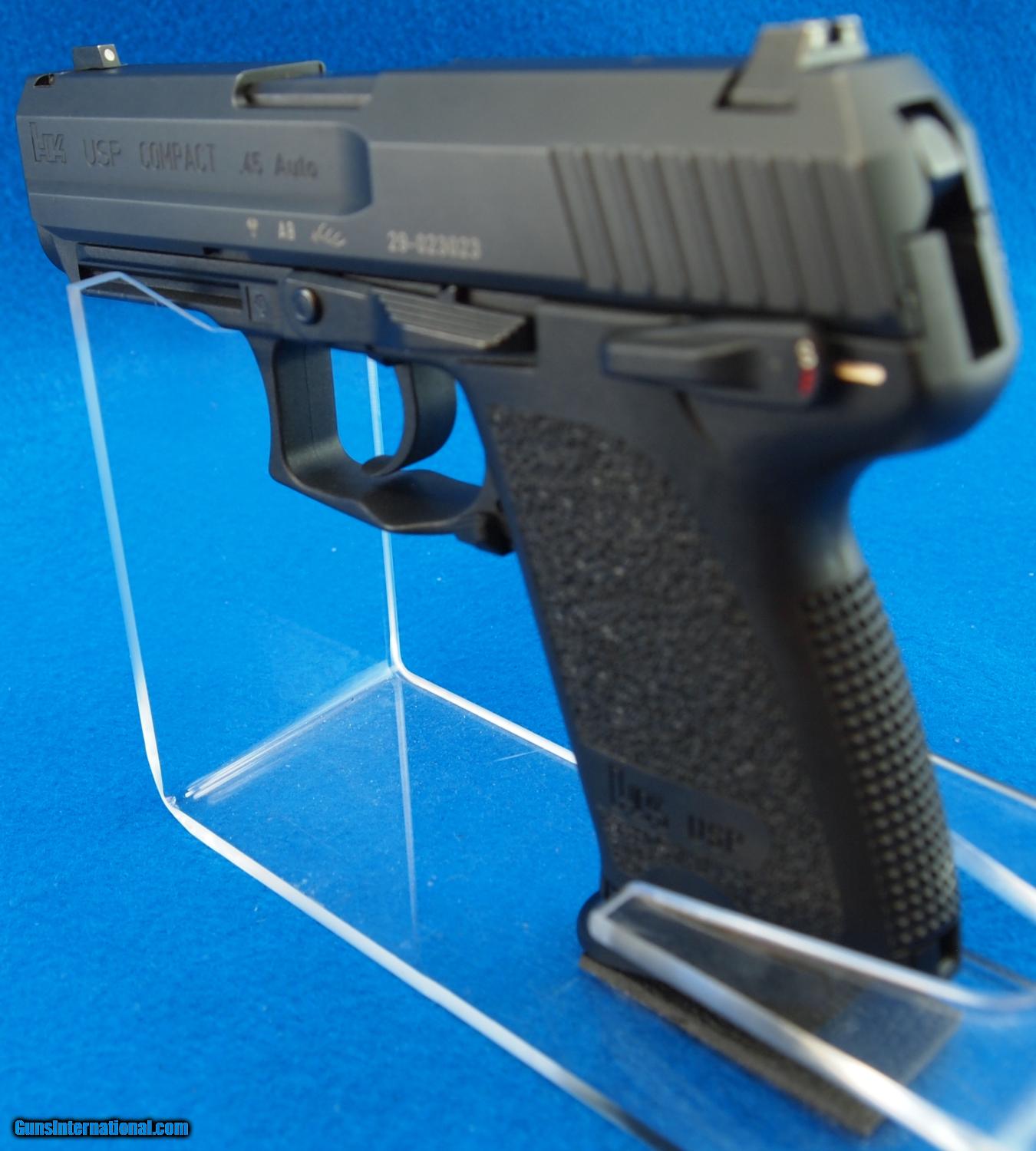 Description: H & K USP .45 COMPACT, POLYMER FRAME, STEEL SLIDE, 3 3/4" BARREL, SHINY BORE, UNIVERSAL MOUNTING GROOVE FOR ACCESSORY MOUNTING, ONE WHITE SIGHT FRONT AND 2 WHITE SIGHT REAR, FLARED RECURVE TRIGGER GUARD, AMBIDEXTROUS MAGAZINE RELEASE, NO WEAR MARKS OR BLEMISHES. S&H $25.00 ADD 3% C/C SOLD |