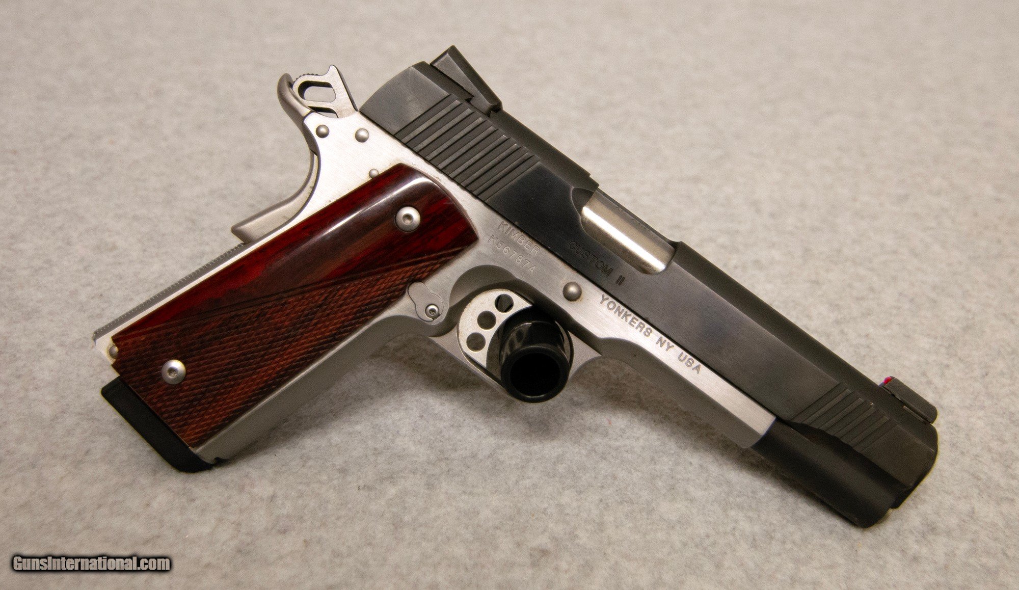 Description: Kimber Custom II, chambered in .45 ACP. Features include: SA, steel frame, 5 in. stainless steel barrel, two-tone slide and frame finish, front slide serrations, 7 shot mag., lowered and flared ejection ports, three-hole trigger, Hi-Viz fiber optic sights, high ride beavertail grip safety, smooth/checkered rosewood grips, 38 oz. Some bluing loss is present on the left side of the slide. .45 ACP Chambers: .45 ACP Metal Condition: Very Good Wood Condition: Excellent Bore Condition: Excellent Barrels: 5'' Sights: 3 Dot Hi-Viz Fiber Optic Item Location: Fort Mill, SC Price: $539.99 Contact Seller |