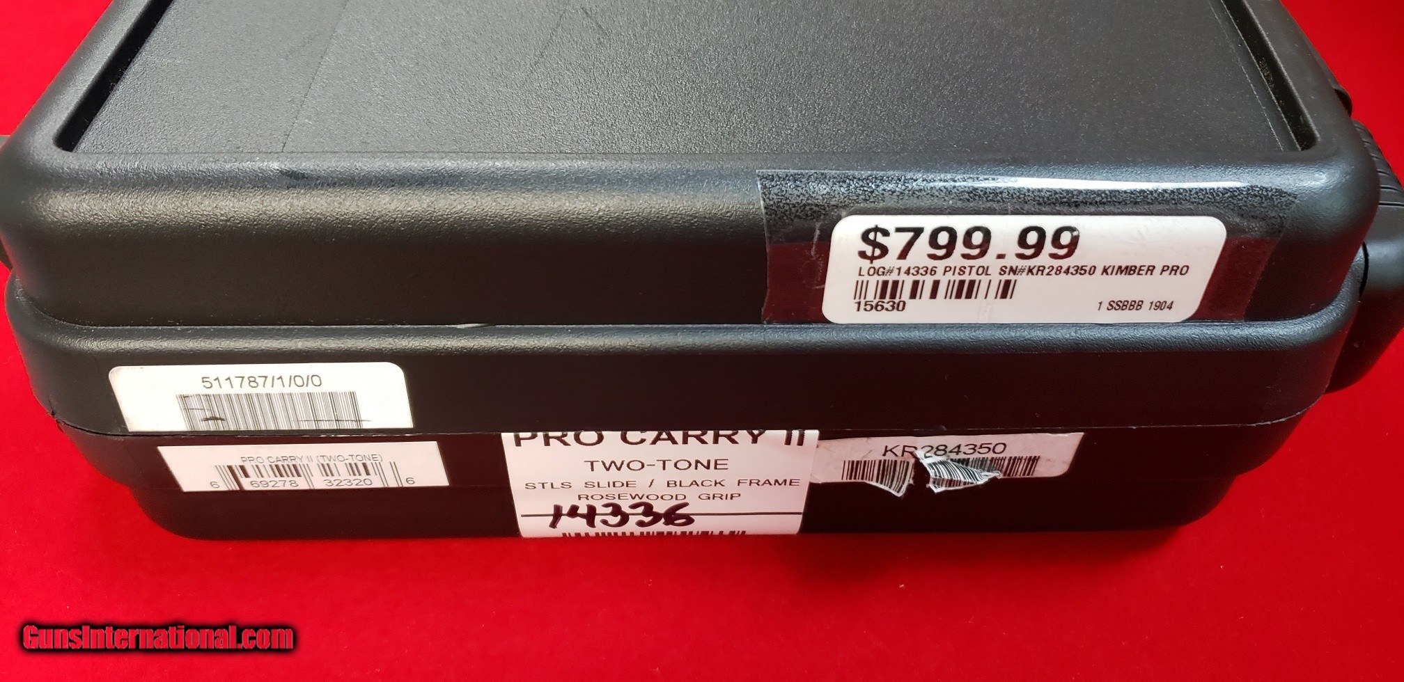 SOLD Manufacturer: Kimber Model: Pro Carry II Serial Number: KR284xxx Caliber Info: 45acp Condition: New |