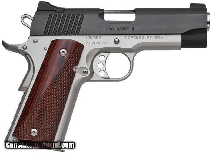 NEW!!The Pro Carry II (Two-Tone) is a hallmark of Kimber quality, complete with a brush-polished carbon slide, aluminum frame and smooth/checkered rosewood grips.Price: $740.00