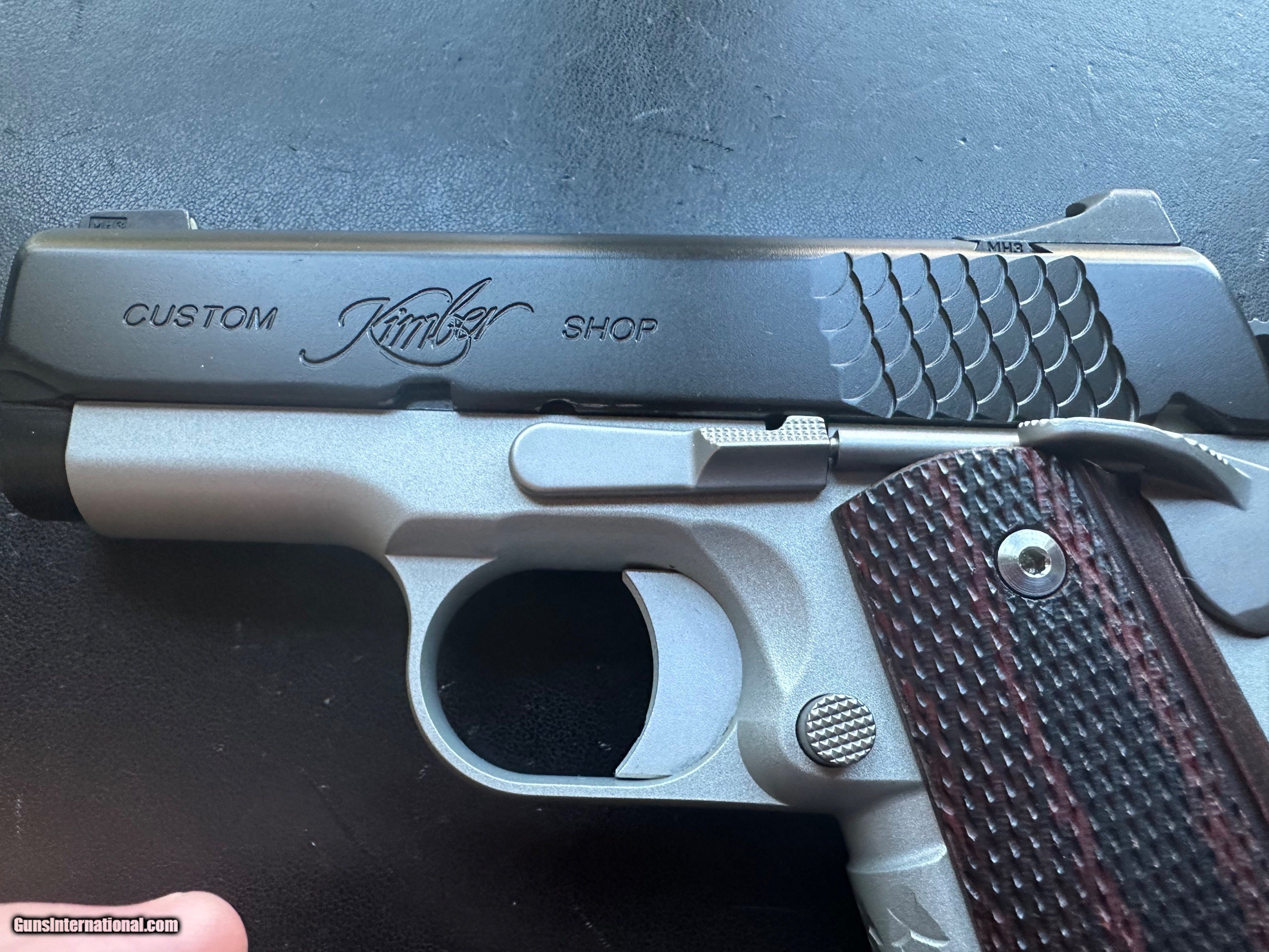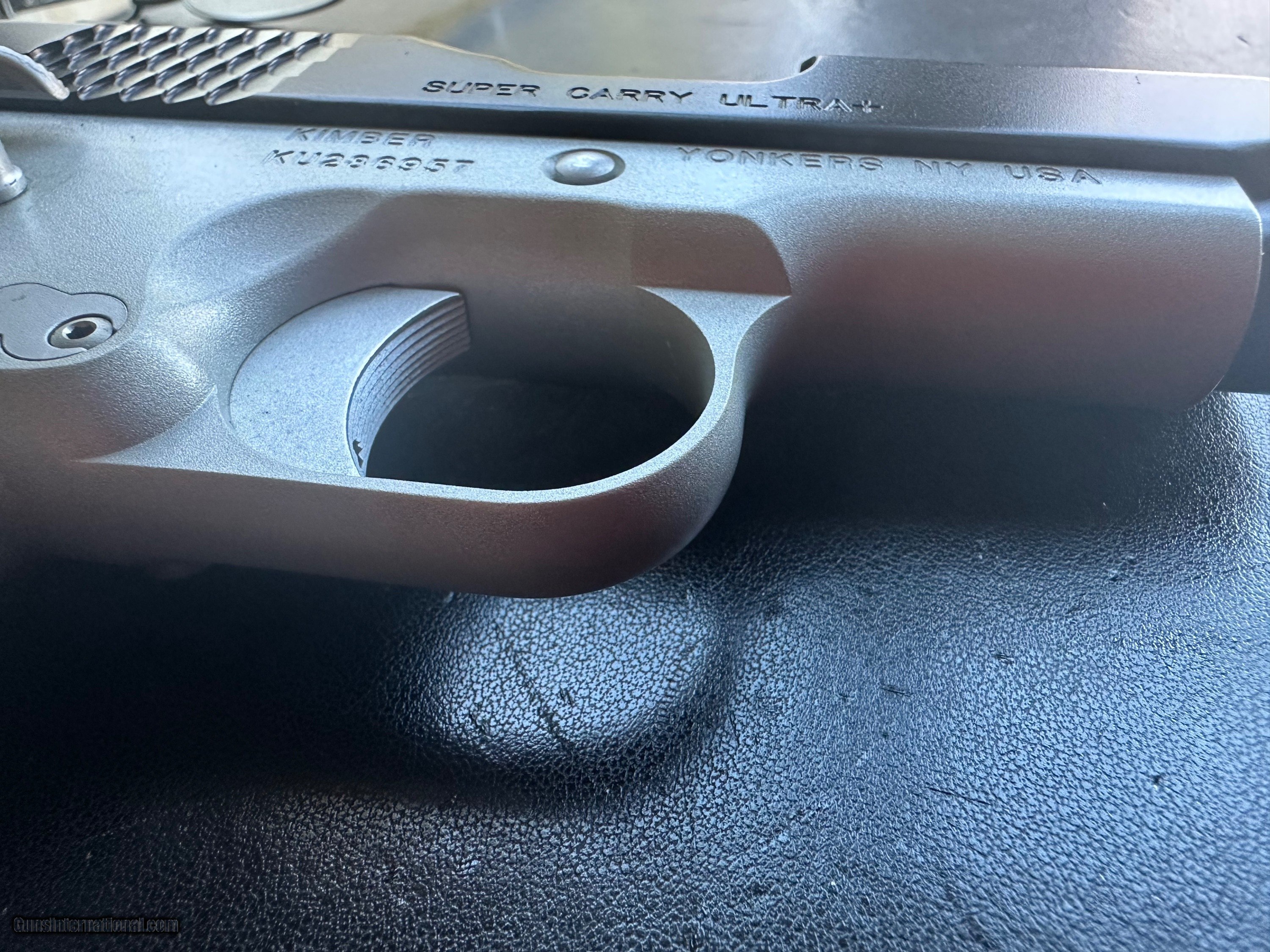 Description: Like new Kimber Super Carry Ultra+. This 45ACP caliber 8 shot capacity semi auto comes with two 8 rd magazines. One is a Kimber mag, the other a Wilson Combat mag. The barrel is 3 inches, the grip is full length. Night sights that are bright. Has the round butt for better concealed carry. Original factory numbered box. Not a scratch on the gun. Shipping by me through shipmygun is included in selling price. Be sure your FFL will accept from shipmygun and his FFL is on the site. SOLD Handgun Caliber: .45 ACP (.45 Auto) Manufacturer: Kimber Model: Ultra Barrel Length: 3 Condition: Exc Metal Condition: Exc Wood Condition: Exc Bore Condition: Exc |