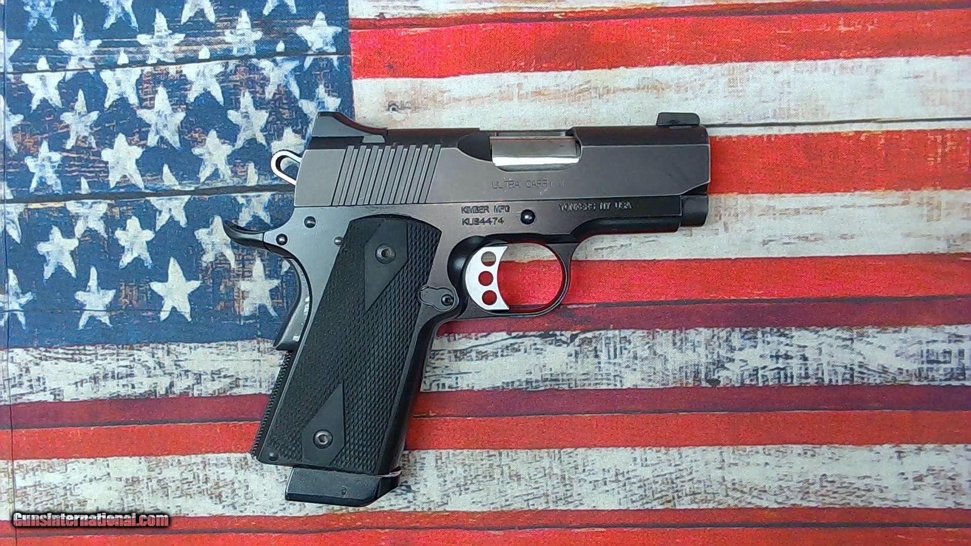 Description: Guns Listing ID: 539506 This is a great pistol. It‚s compact and yet stout at the same time. Perfect for carrying or as a bedside gun. This pistol does have scratches on the slide and frame. Includes one 7 round magazine. The Ultra Carry II Semi-Auto Pistol is designed for concealed carry/personal defense with performance-enhancing features to get you on target quickly. An aluminum frame keeps weight down to a minimum and resists corrosion from carrying the pistol close to the body. The frame and the steel slide have a matte black finish to further minimize corrosion and prevent unwanted reflection in low light environments. An extended beavertail grip safety ensures a high grip; and protects the hammer when carrying the weapon cocked and locked, while minimizing hammer-bite to theof the shooter‚s hand while firing. Synthetic double diamond grip panels and a checkered main spring housing provide a solid, non-slip hold. An aluminum match-grade trigger is factory set to break clean and crisp for precise shot placement and enhance control during rapid fire. Durable fixed, low-profile sights provide consistent point of aim, with minimal interference when drawing or holstering the weapon. The Kimber Ultra Carry II Semi-Auto Pistol is a highly functional sidearm for personal defense that is capable of delivering rapid, well-placed shots. Made in USA. They say a picture is worth a thousand words. These photos are the best statement of condition; please review them carefully before purchasing. Manufacturer: KIMBER Model: ULTRA CARRY II Caliber Info: .45 ACP Condition: Used - Non-Certified Barrels: 3" BARREL Action: SEMI AUTOMATIC Finish: black Price: $659.99 Contact Seller |