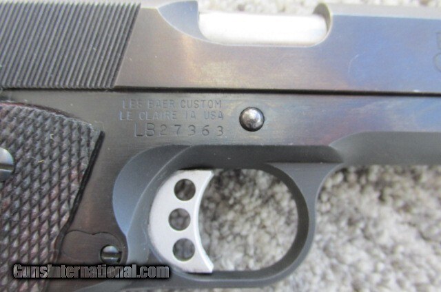 Description: Description: Les Baer, .45 ACP. 5 in. barrel, 7 shot mag., lowered and flared ejection port, Baer extended ejector, match trigger, L Baer adjustable rear sight, dovetailed front sight, checkered cocobolo grips, checkered front strap, rear serrated slide, beveled magwell, blued finish. Light wear marks on the front left slide and a couple of other use marks . Comes with 3 magazines one L Baer and 2 Wilson. Very few factory hardball shot thru the pistol. A few thousand cast bullets with 4.0 grains of Bulls Eye. Gun is still very tight. You need a bushing wrench to get the bushing out. Wrench included, plastic. $1975.00 shipped. Lower 48 only, Postal Money orders only, shipped to your FFL person. Need your address, your phone number and FFL dealers FFL number and phone number. Reason for selling, getting older and have too many firearms. Metal Condition: Very Good Wood Condition: Excellent Bore Condition: Excellent Barrels: 5'' Sights: Les Baer sights Handgun Caliber: .45 ACP (.45 Auto) Manufacturer: Les Baer Model: Premier II Barrel Length: 5 inch Condition: very good Metal Condition: very good Wood Condition: excellent Bore Condition: excellent Action: semi auto Sights: Les Bear sights Item Location: Wisconsin Grips: Factory Wood checkered Price: $1,975.00 Contact Seller |