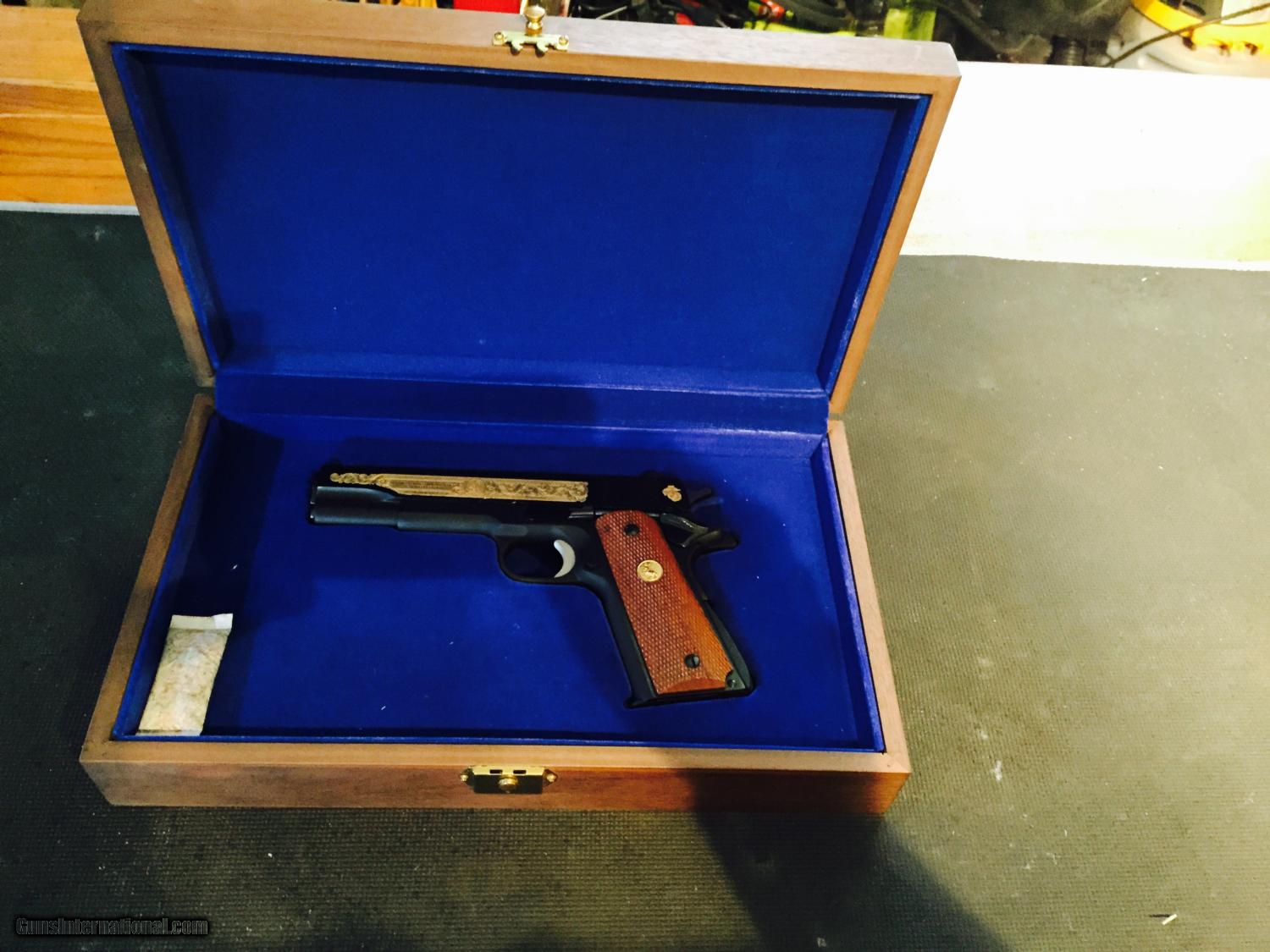Description: This a rare Colt United States Marine Corps Limited Addition 1911 45ACP new in box and never fired. Excellent condition. Wooden display box is in excellent condition. Buyer pays shipping to his FFL. Any questions call Ralph at 760 216-2558. $1800.00. SOLD |