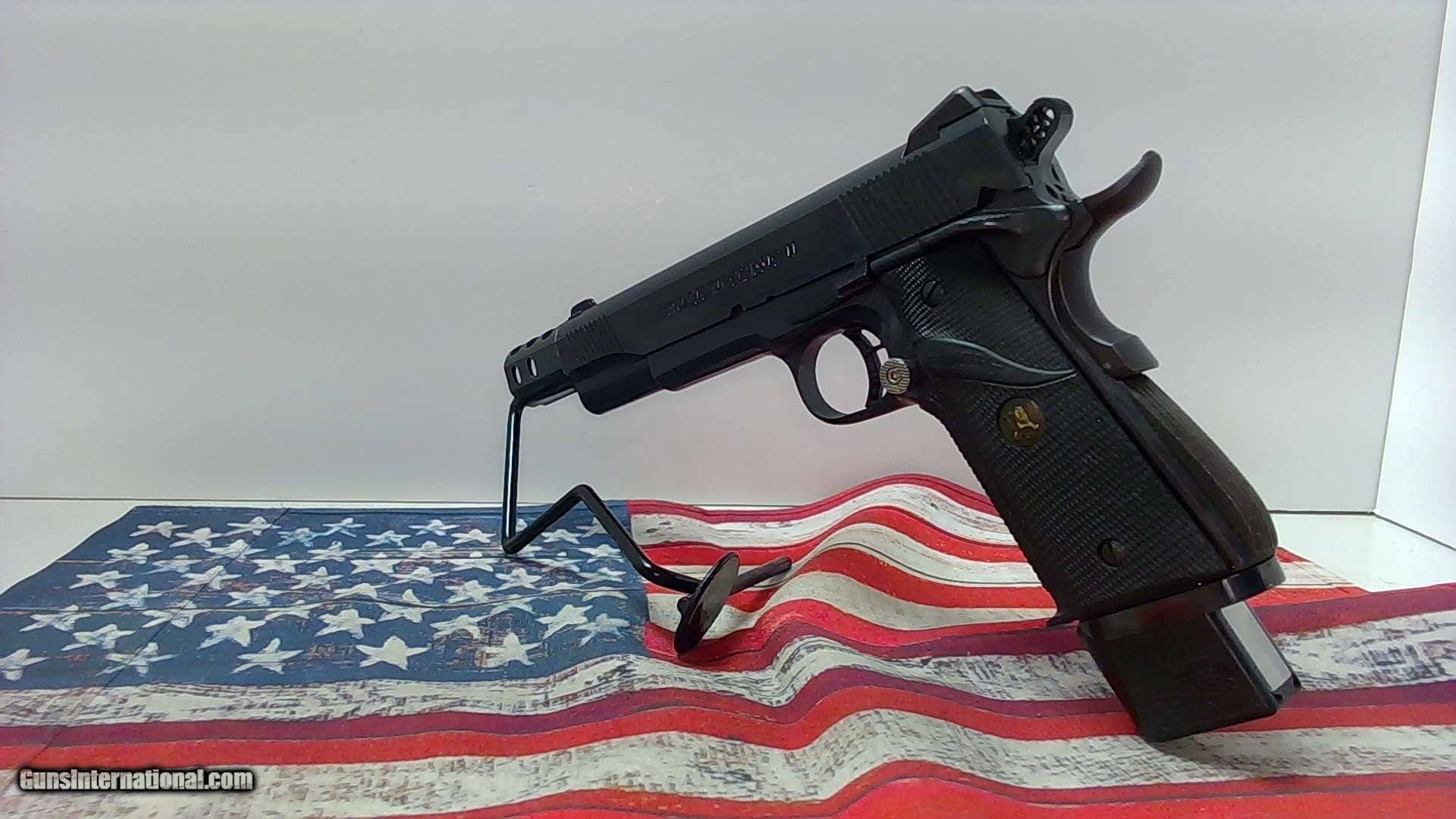 Description: Guns Listing ID: 582705 Pre-owned Metro Arms American Classic II Government Model chambered in .45acp. This gun has some scuffs on the slide and frame but is still in good condition. The bore is clean, and the action is tight. It has Pachmyr grips, a compensator, extended mag release and magazines (one 8, one 10 round). American Classic 1911 Classic II is a single action pistol with a Novak-style rear sight and a dovetail front sight. It features an extended slide stop, a beavertail grip safety, a combat hammer and trigger, an extended thumb safety, and a forged steel barrel. They say a picture is worth a thousand words. These photos are the best statement of condition; please review them carefully before purchasing. Manufacturer: METRO ARMS Model: American Classic Government Model Caliber Info: .45 ACP Condition: Used - Non-Certified Barrels: 5" BARREL Action: SEMI AUTOMATIC Finish: black & blued Price: $569.99 Contact Seller |