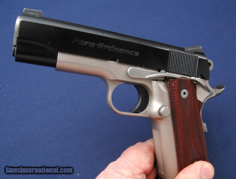 Description: Very nicely appointed Para Ordnance here. 2-tone like we loved doing in the 80's, Ambi safeties, extended slide stop, beavertail grip safety with memory pad, checkered extended mainspring housing with rear mag guide. Colt Commander style hammer, Novak sights, extended mag release button and diamond checkered cocobolo grips. Clean bright bore. Comes with one factory 13 round magazine. $35 shipping to the lower 48, 3% surcharge for using a CC. If you choose to pay with a personal check, we will hold the item for up to 10 days to make sure that it clears. Please expedite such pymts as we will hold an item on your word for 5 days. SOLD Handgun Caliber: .45 ACP (.45 Auto) |