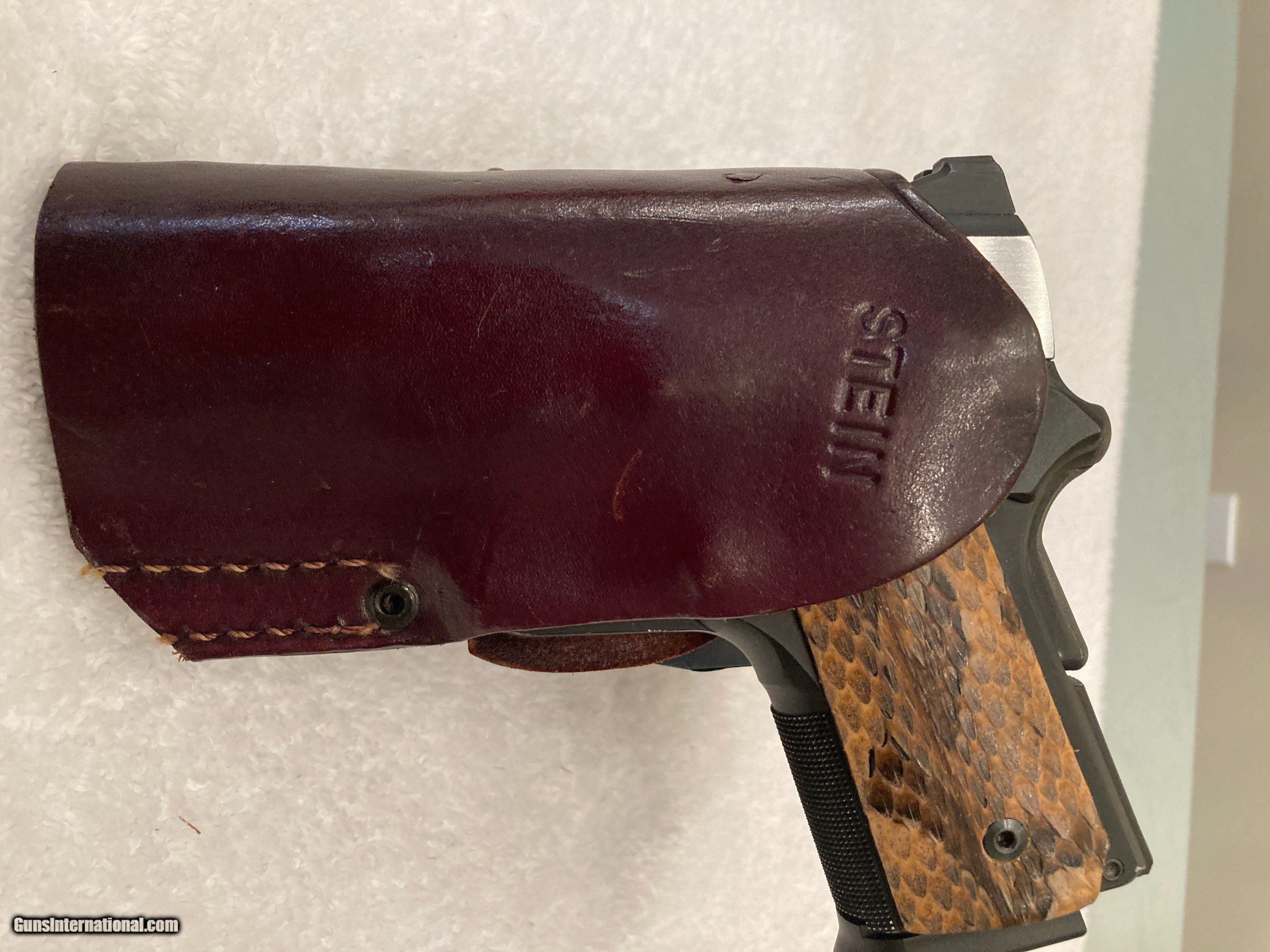 Description: Offering for sale a nice sub compact ParaOrdnance PDA.(45ACP) I have carried this gun almost daily alternating with Para PDA Carry 9 for the last 8 years. This particular pistol has had the Cylinder and Slide Realibility Package. That consist of Polishing the ramp, throating the the chamber (my words) tuning the trigger and adding appropriate recoil spring, ambi safeties'. I have run close to 1000 rds through it without a problem. With age and arthritis creeping up on me I'm having trouble racking the slide as efficiently as I have in past years. 3"ramped match barrel. It is very acurate and reliable. Obviously it has some holster made blemishes on the the finish. They don't show up as clearly as I would like in the photos, nothing bad just comestic. I use the IWB Stein leather holster, and an OWB leather hoster from Galco. If you are the buyer you will have choice of holster at no charge. This gun is built on the 1911 pattern and as you would expect feels great and natural in your hand.The LDA trigger in my opinion is the best trigger ever for the 1911. Althought I have snake skin grips on it now it comes with original grips. It must be shipped to a FFL holder. Let's talk about shipping. Shipping is $50.. The factory grips are included along with snake grips. SOLD Handgun Caliber: .45 ACP (.45 Auto) Manufacturer: Para Ordnance Model: PDX LDA Barrel Length: 3 Bore: .45 Condition: 95% Metal Condition: 90% Wood Condition: N/A Bore Condition: Excellent Barrels: Ramped Match Barrel Barrel Type: Match Action: Semi Auto Triggers: tuned |