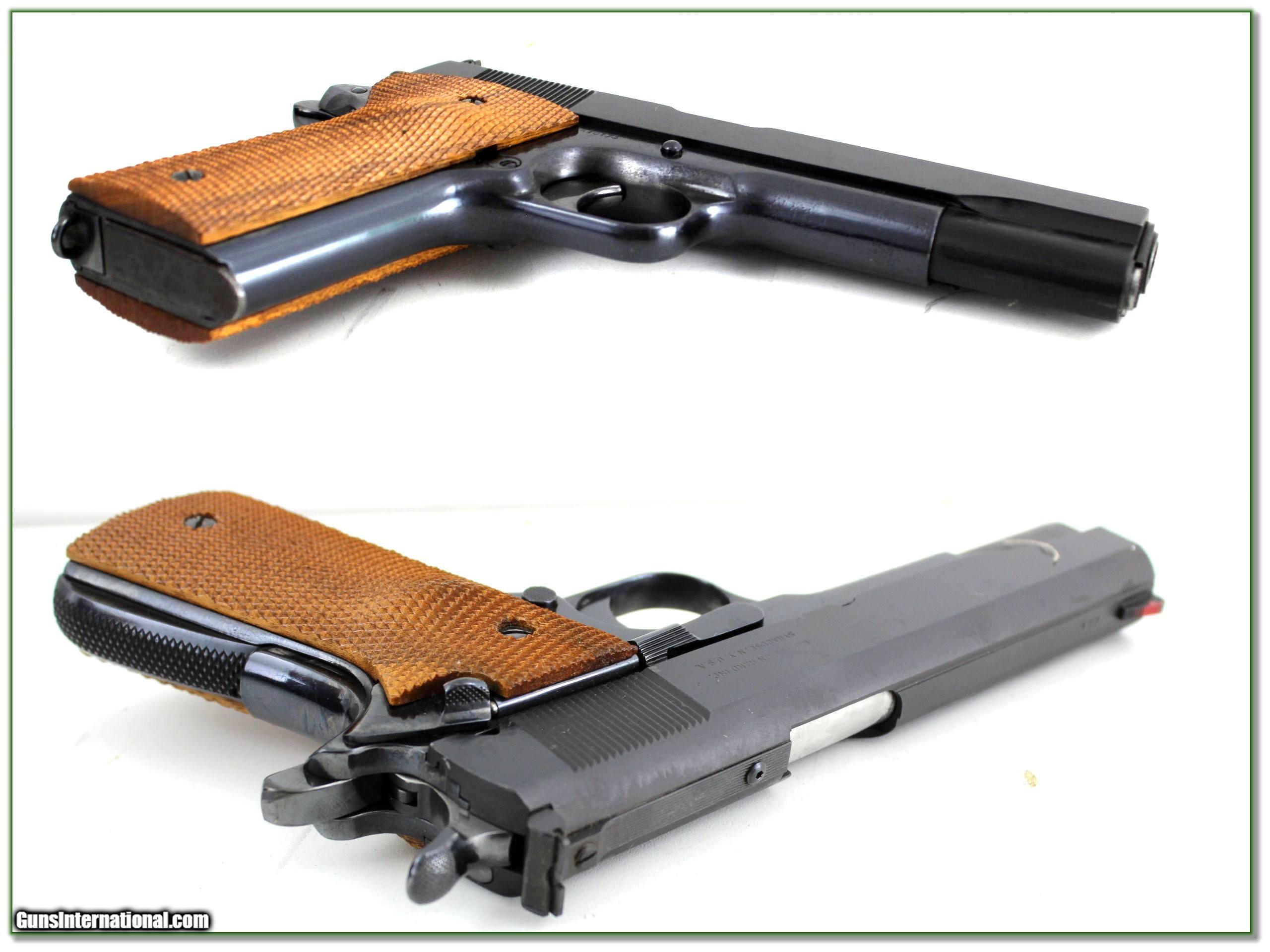 Description: This is Remington Rand 1911. I am not sure when made as I can’t find the serial number in a listing (see 4th picture). It comes with original grips and the ones pictures on the gun. It has 3 magazines. I believe the receiver has been reblued but the slide looks original. I am selling this one on consignment and as such lay-a-way can’t be used. It does of course have the standard 3-day inspection. Shipping and insurance is $39. Please email me with any questions or larger pictures. (Consign your quality firearms with Shooting Investments for only 12%! Let me know if you have any you would like to sell!) 23-0733 Payment: Payment is by Money Order, Cashier’s Check or Personal Check. I can now also accept Credit Cards (MasterCard, Visa, Discover & American Express) with a 3% convenience fee. Shipping: The shipping charge will be listed in each description. It is $49 for most firearms. Some heavy guns or those insured for over $2000 will be higher. Shipments to Alaska and Hawaii are higher because air shipment is required. Most firearms are shipped on Tuesday and Thursday and usually in 5 days of receipt of payment. We package all shipments carefully and insure them. Optics are shipped Priority Mail and most other non-firearm shipments are shipped First Class. Returns: Our return policy is simple. If for any reason you are not pleased with your purchase, you may return your item for a full refund of purchase price. Ammunition cannot be returned. It is important to us that you are happy. Guns cannot be fired or dissembled before returning them and they must be returned in the same condition as received. Notification of a return must occur within 3 days of receipt at your dealer. Shipping, convenience and dealer fees are not refundable and are the responsibility of the buyer. Lay-a-way: If needed, we offer a 60 day lay-a-way option on most firearms. It is 1/3 now, 1/3 in 30 days and 1/3 in 60 days. Lay-a-way firearm sales are final and cannot be returned. If a lay-a-way is not completed the first payment cannot be refunded. Consigning your firearms with Shooting Investments: We will help you get top dollar for your firearms. While most local guns shops charge 20% or more, our fee is only 12% with a minimum of $75. At your local gun shop it might take months to sell. Selling on-line provides instant access to thousands of interested buyers. You won’t find any other on-line dealer willing to sell your firearms for only 12% or listing every gun on 3 separate s. Selling through an House typically costs the seller 15% and the buyer an addition 15% (so 30%) and you have to wait several months to sell and longer to receive funds. If properly priced, we will sell your firearms within a few weeks. Send us an email or give us a call and we’ll explain how easy it is for you to get top dollar. Trading: Trading for us is really just buying your gun to re-sell. If you have a gun you want to trade, please email a picture and we will let you know what we can give for it. You will always get more if we sell it for you on consignment. SOLD |