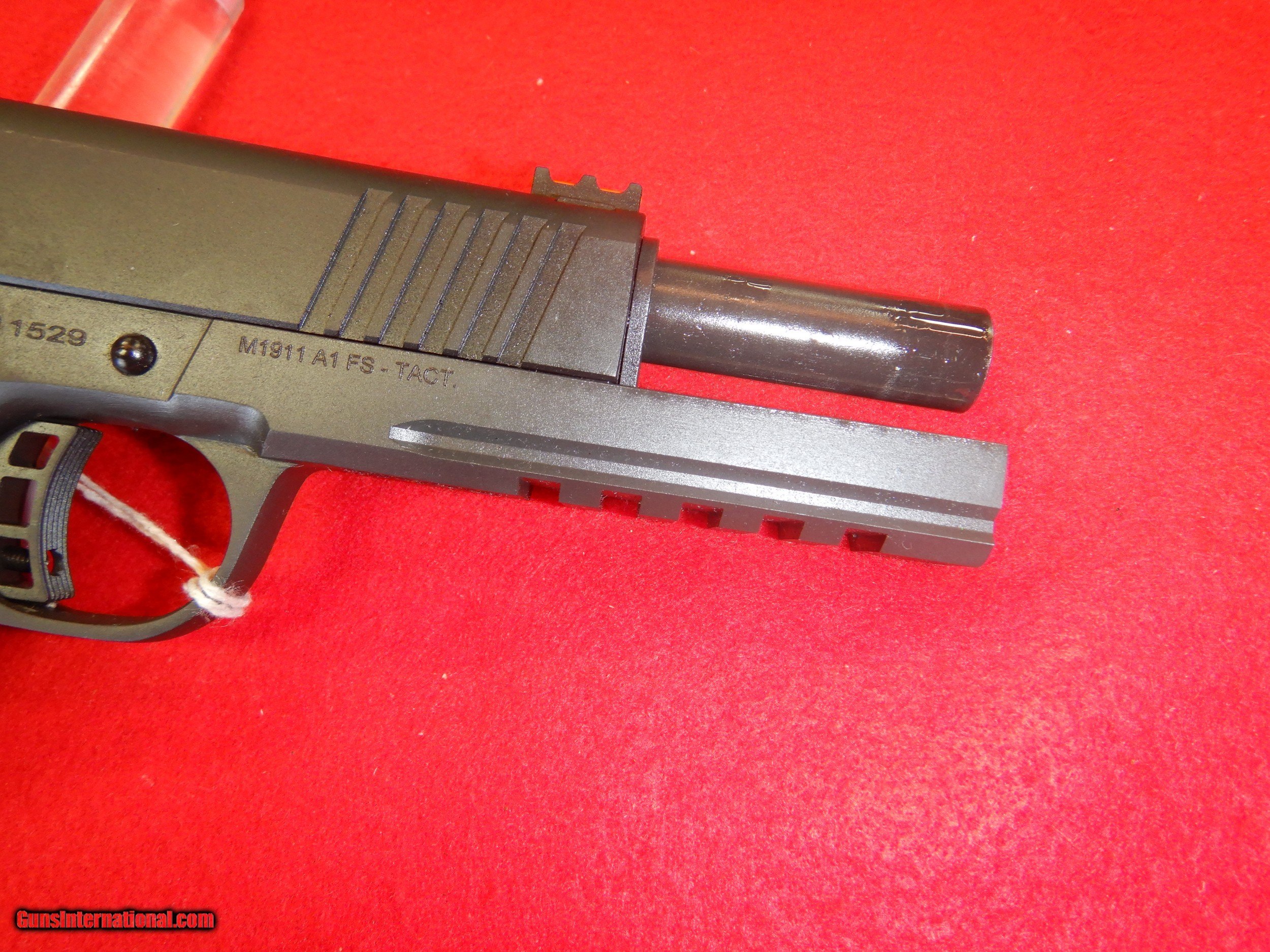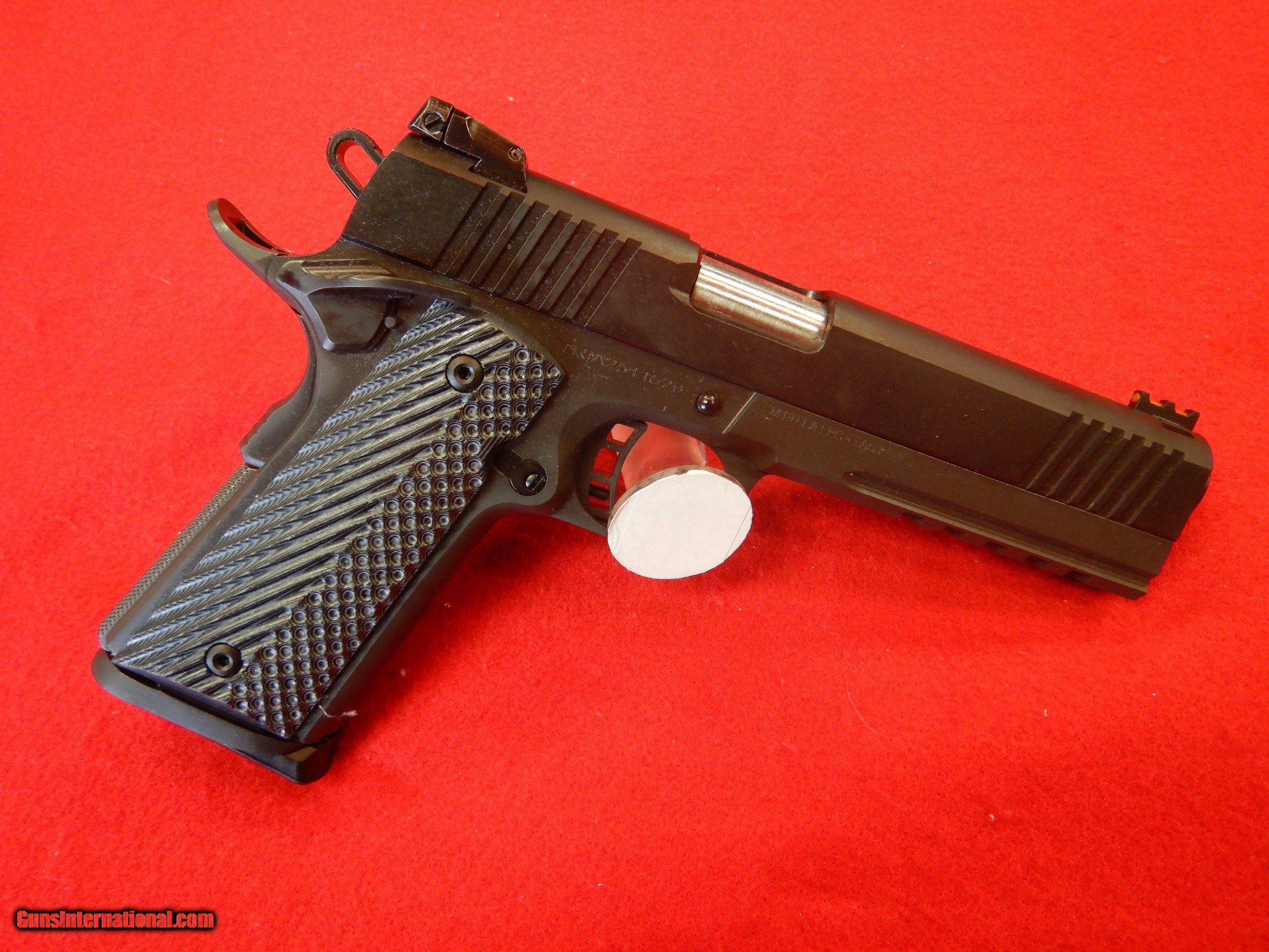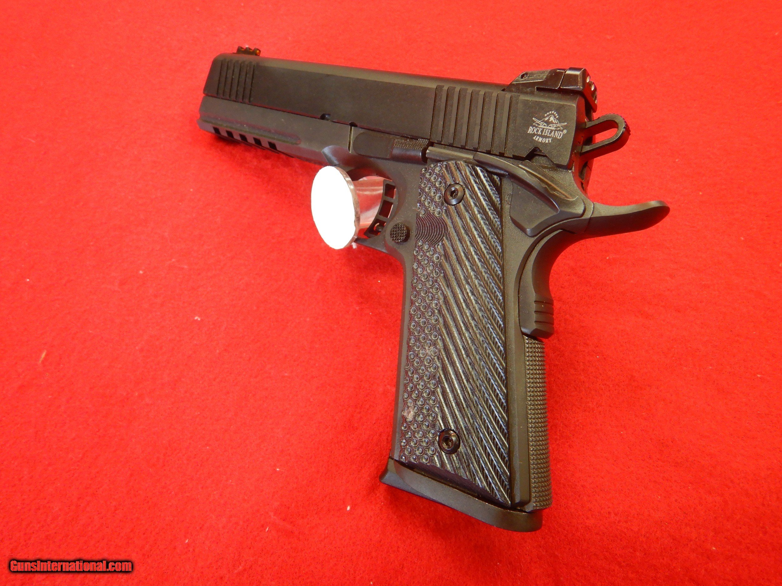 Description: Rock Island Armory Tac Ultra Pistol - The Tac Ultra has a full tactical rail and a button rifled barrel supported by a full length guide rod and full dust cover. It includes a low profile adjustable rear sight and high visibility fiber optic front sight and is also fitted with a skeletonized hammer and trigger with adjustable over travel stop.