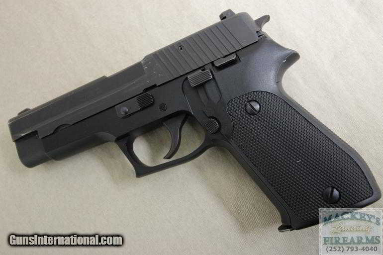 Description: SIG says: The modern SIG SAUER® pistol story began with the P220®. In 1976 the .45 ACP P220 was introduced and quickly became recognized as one of "the most accurate 45s right out of the box." Since that time the P220 has earned an enviable record in hot spots around the world. The P220 features a stainless steel slide machined from barstock and coated with a durable, wear-resistant Nitron® finish, light-weight alloy frame with integral accessory rail, and the SIG SAUER® four-point safety system of decocking lever, patented automatic firing pin safety block, safety intercept notch, and trigger bar disconnector. This SIG P220 is used, with some handling marks and holster wear, but is in great condition. Comes with box and 2 mags. For more information call 252-793-4040. Please reference our inventory # 44253. FFL required for shipping. No shipping outside the US. SOLD |