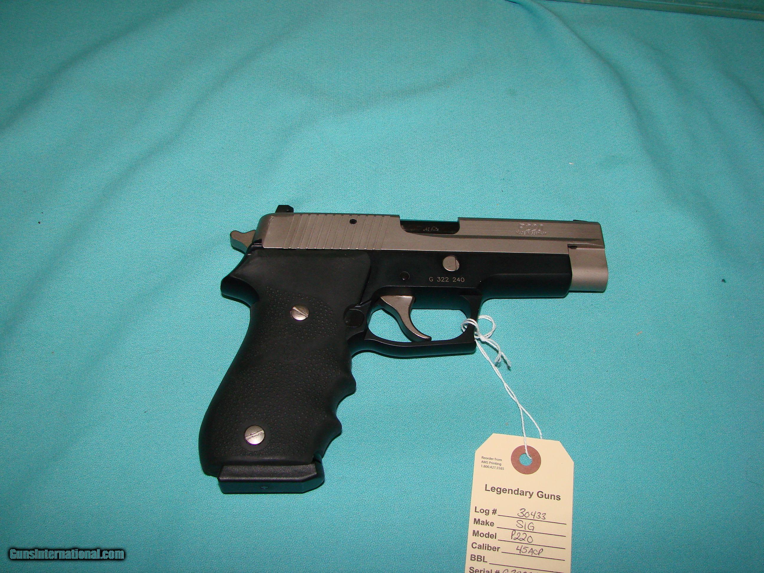 Description: Sig Sauer P220 Two Tone 45acp Made in Germany Serial number Range G 322 xxx Good condition with one mag no box Hogue Wraparound Grips *No extra fees, You only pay for the cost of the item & $35 for shipping{AK&HI Extra} Arizona Residents Must Pay Sales Tax. *Legendary Guns in Phoenix AZ 602-242-1195 Hours of operation M-F 10-6 Sat 10-5 Closed Sundays. *All items online are also for sale at our Phoenix location *Please call the shop for any questions and to confirm availability before buying. We are happy to answer all questions. *We offer a 3 day inspection period with a full refund if item was misrepresented. We accept returns for any reason within the 3 day inspection period with NO refund for shipping coming or going and a 15% restocking fee. *We Only accept/consider trades that can be brought to our Store in Phoenix. *Your State Laws are your Responsibility to know. *Items ship once your Dealers FFL is received SOLD |