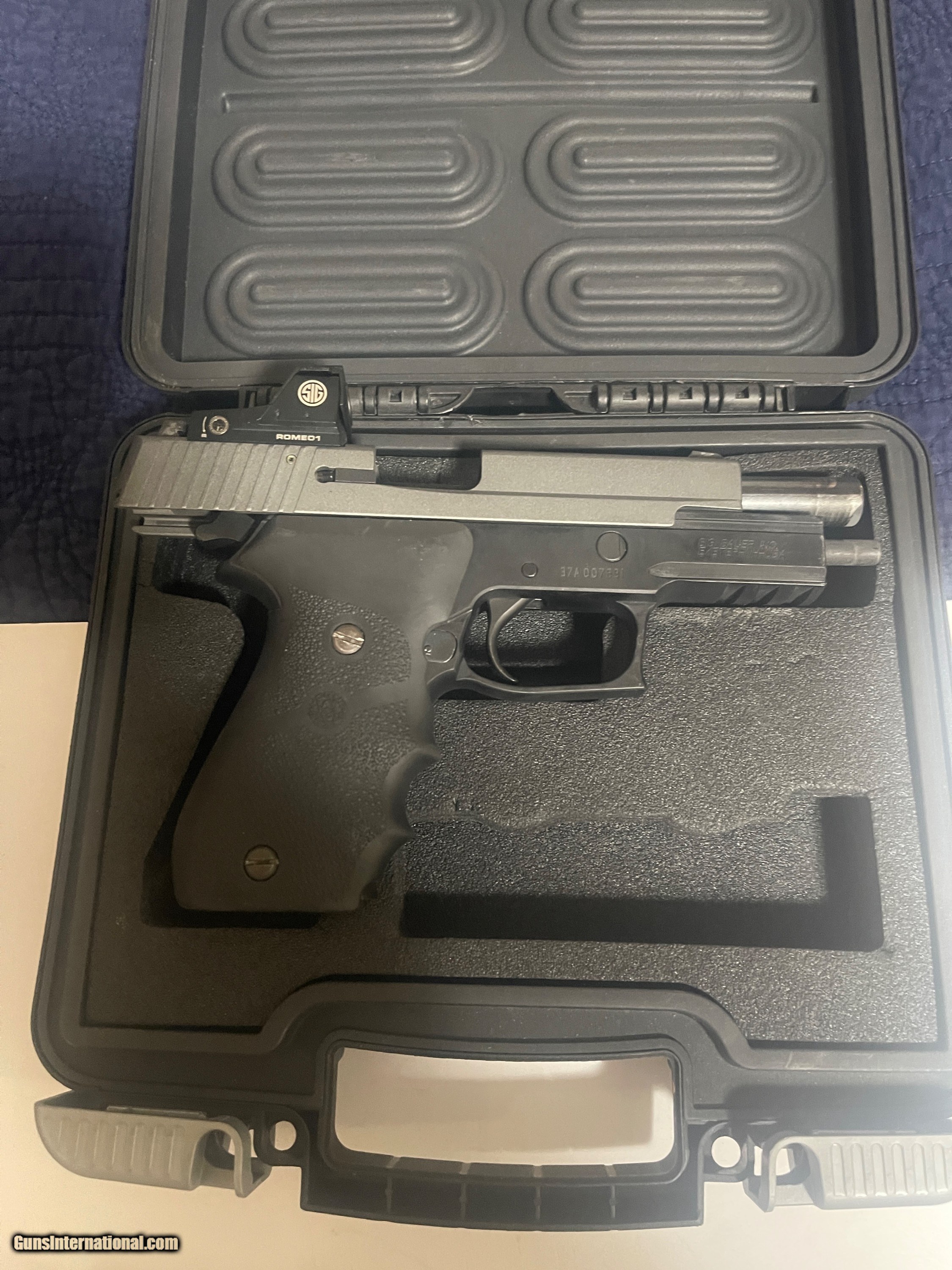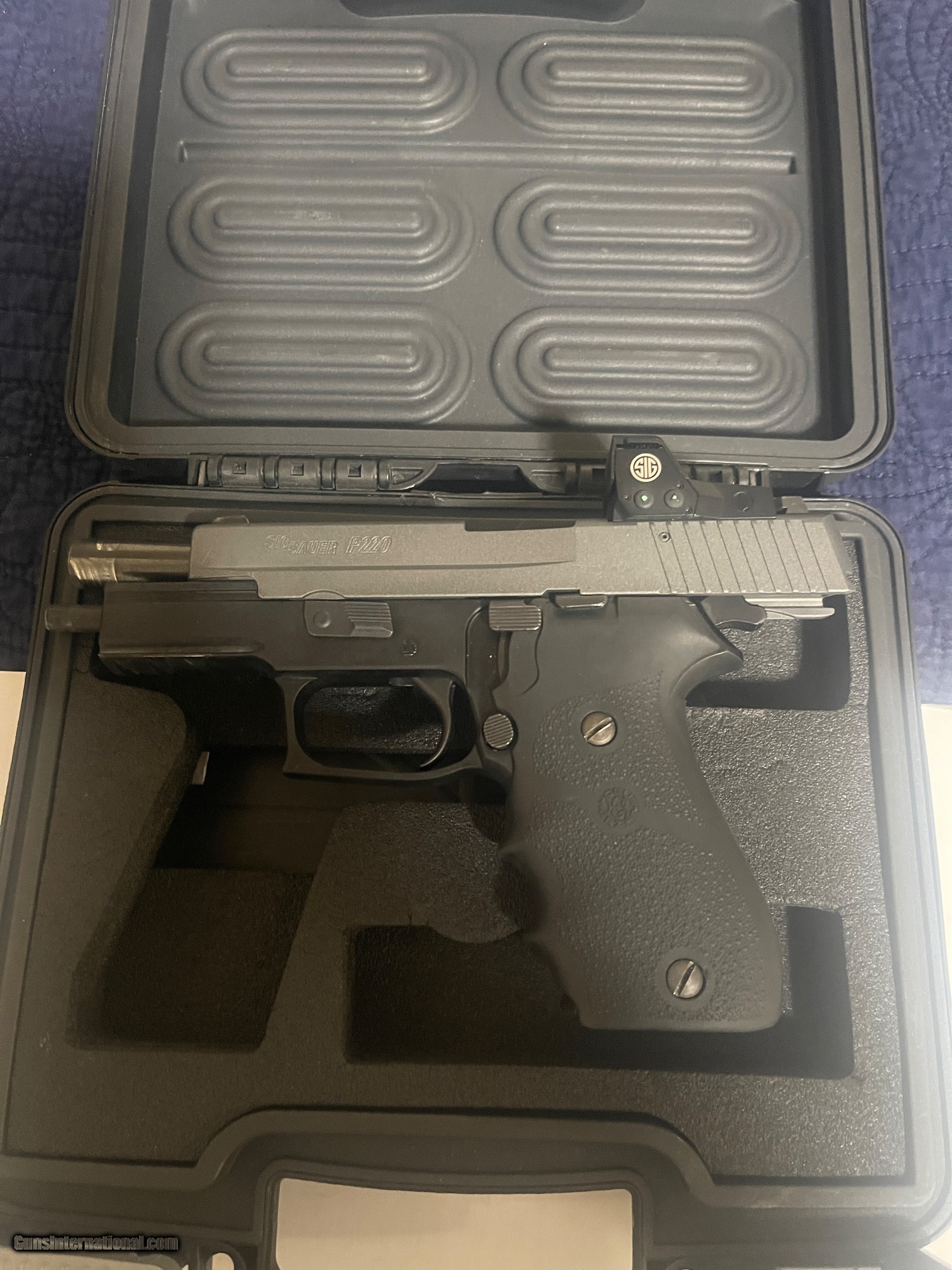 Description: Sig Sauer P220 45acp slide cut an finishing by SAS Tactical. Slide finished in Legion Gray Cerakote and comes with a Sig Sauer Romeo Zero reflex optic with shake awake. Short reset trigger kit installed providing short and crisp trigger brake. Has Hogue grips and comes with three mags. great shooting firearm. Went through firearm and did a thorough maintenance and lube. SOLD Handgun Caliber: .45 ACP (.45 Auto) Manufacturer: Sig Sauer Model: P220 Serial Number: 37A007691 Barrel Length: 4.4 Condition: Very Good Metal Condition: Very Good Bore Condition: Very Good |