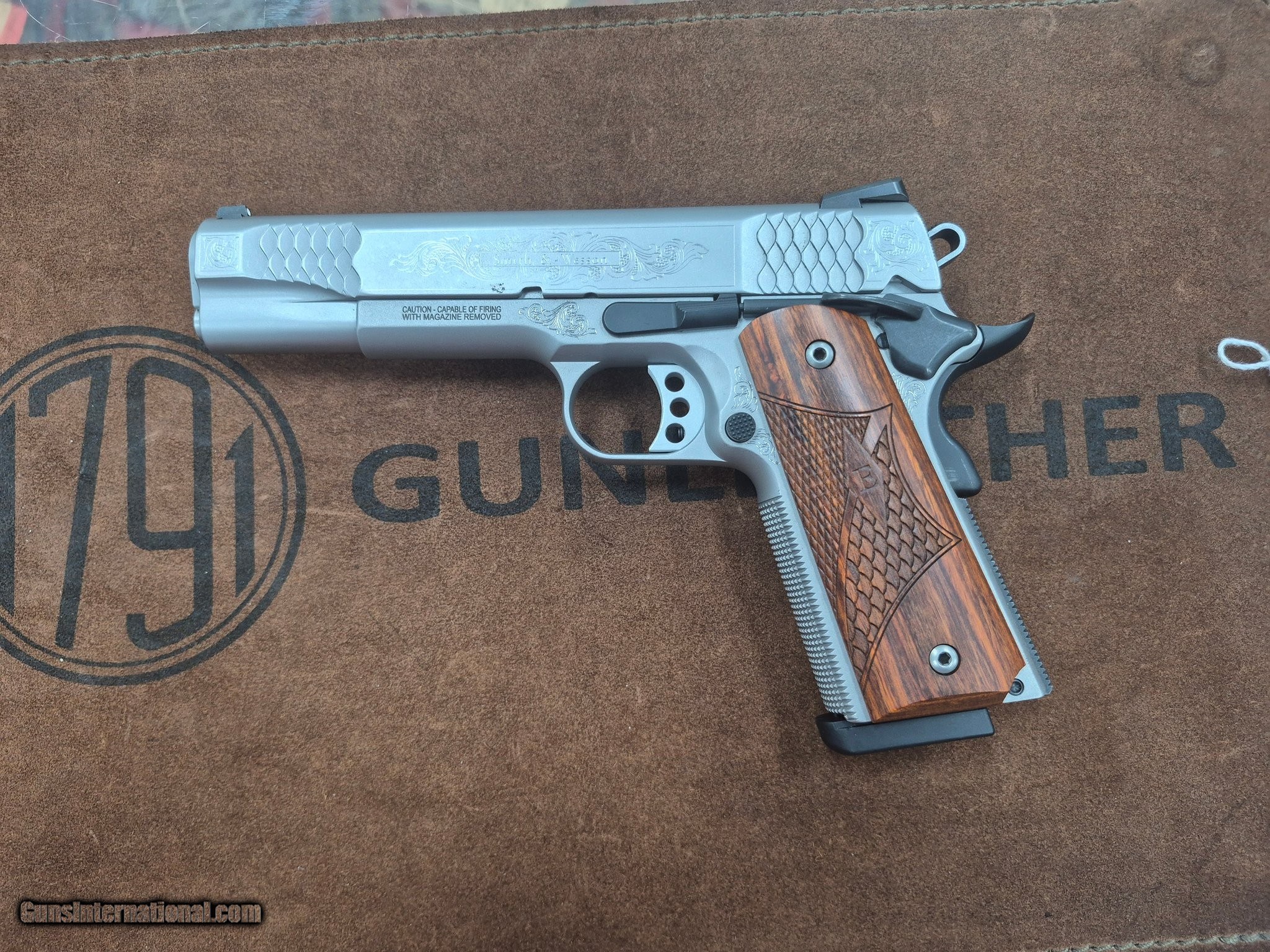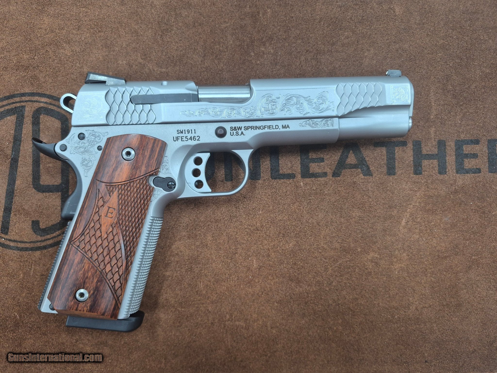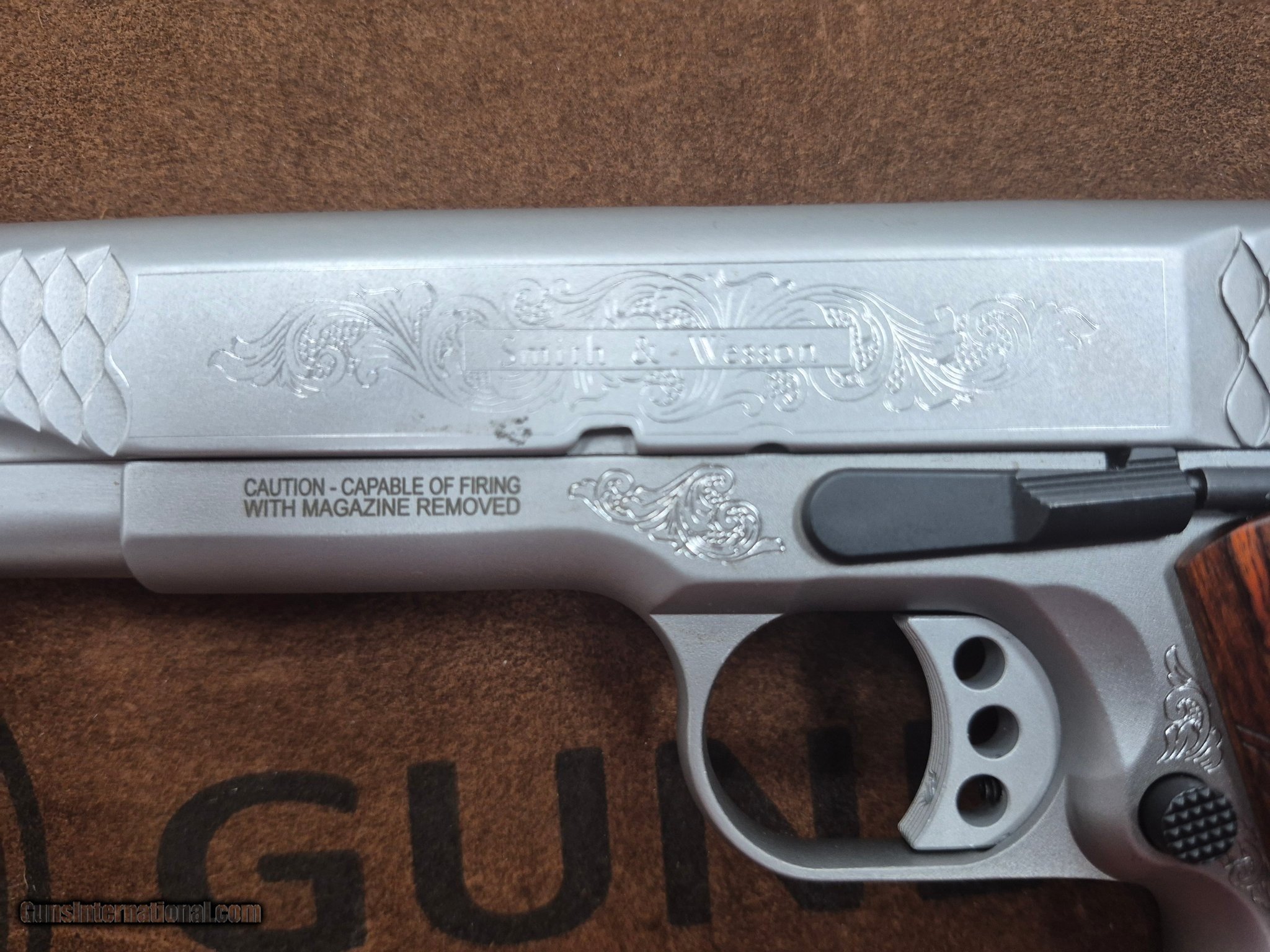 Description: Guns Listing ID: 577755 Smith and Wesson SW1911 with factory engraved slide. Manufacturer: SMITH & WESSON Model: 1911 Caliber Info: .45 ACP Condition: Used - Non-Certified Barrels: 5" BARREL Action: SEMI AUTOMATIC Finish: stainless Price: $1,275.99 Contact Seller |