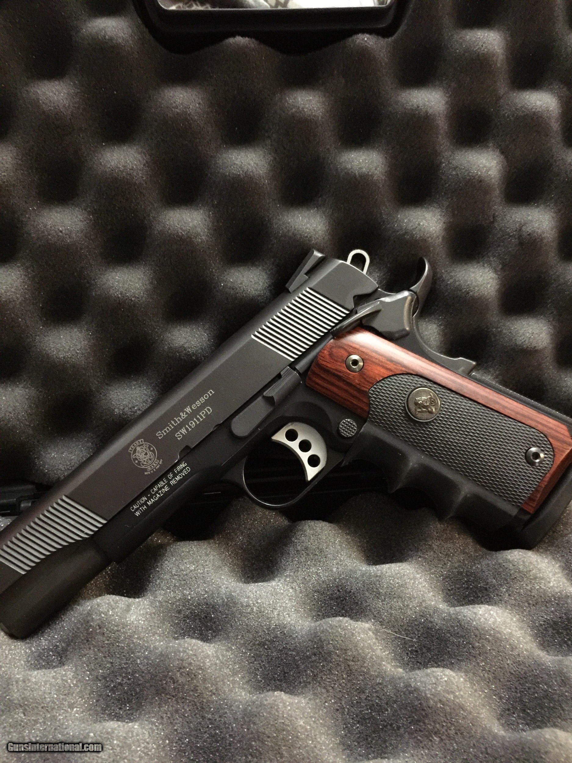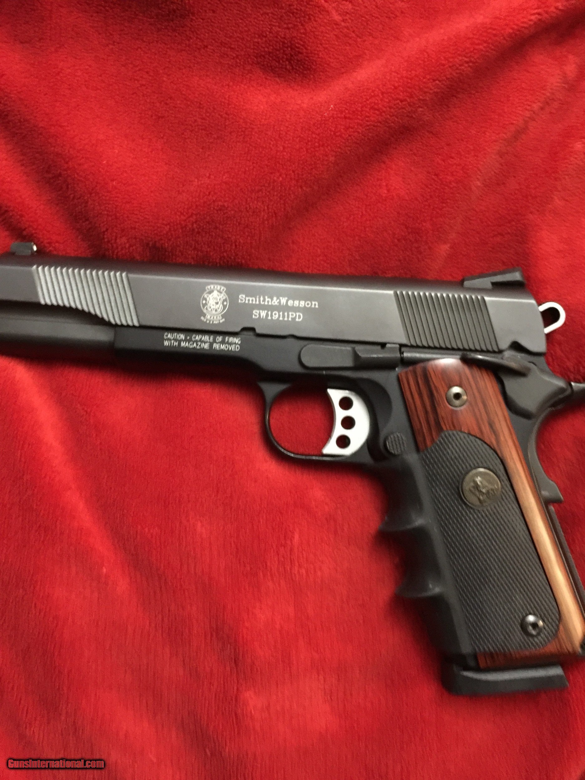 Description: Beautiful Smith and Wesson 1911 PD. 45 cal. With rosewood grips. Barely used Near mint condition. Comes with a box of Lightning Ammo 100 count. Shipping can be arranged at buyers expense. Local pick up in Branson Missouri txt4172304499 I have had a few questions of what PD stands for it means personal defense. I understand this to mean it’s a light weight 1911 It’s very comfortable in the hand compared to my Colt 45. Any questions txt4172304499 SOLD Handgun Caliber: .45 ACP (.45 Auto) Manufacturer: Smith & Wesson Model: 1911 PD Condition: Near mint Metal Condition: Excellent Wood Condition: Excellent Bore Condition: Excellent Item Location: Branson Missouri |