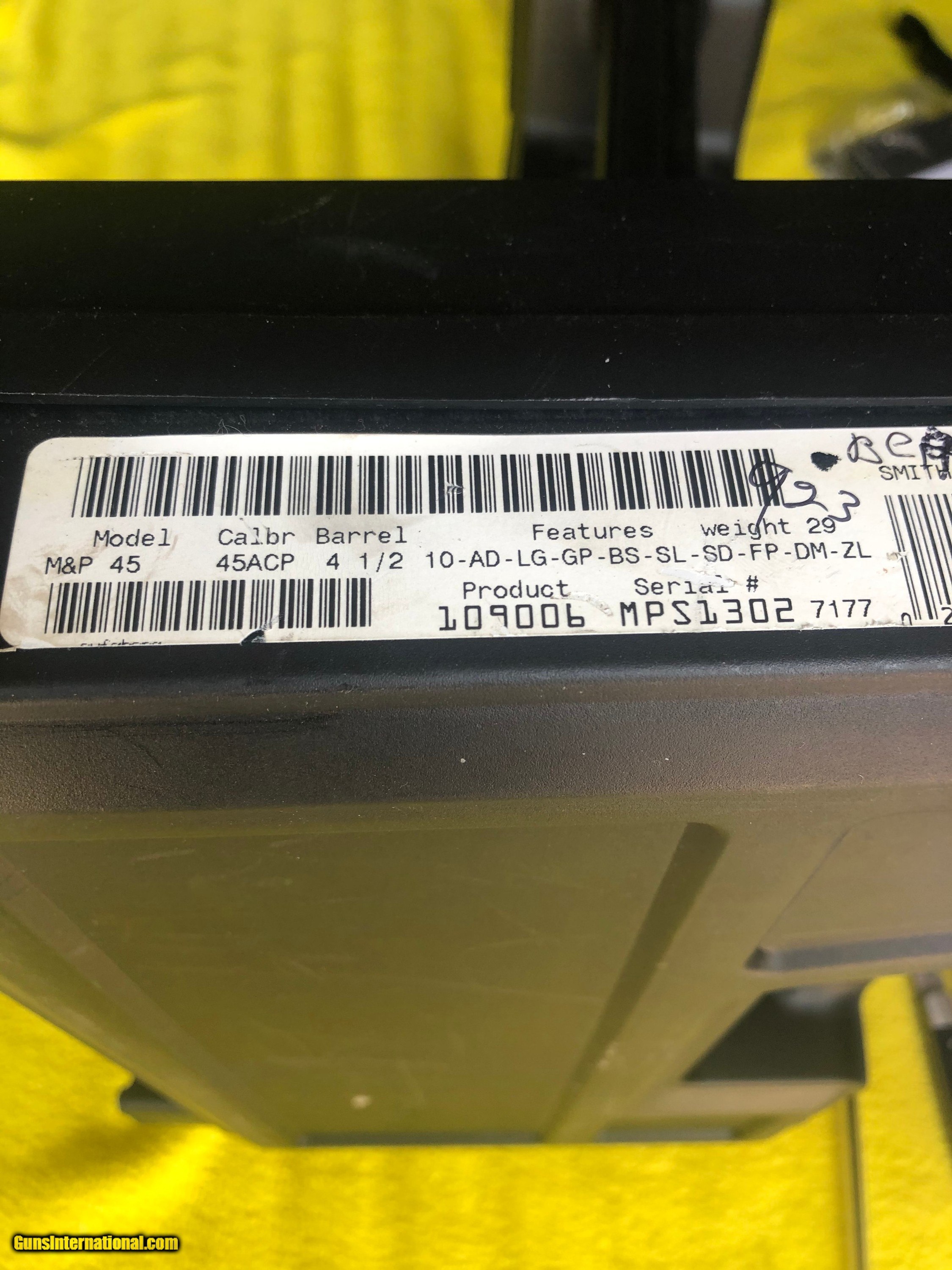 Description: SMITH AND WESSON NEW IN BOX WITH PAPER WORK. SOLD Handgun Caliber: .45 S&W Manufacturer: smith &WESSON Model: M&P45 ACP Serial Number: DTD 2849 Condition: 100% Metal Condition: 100% Bore Condition: 100% Sights: NIGHT SITES |
