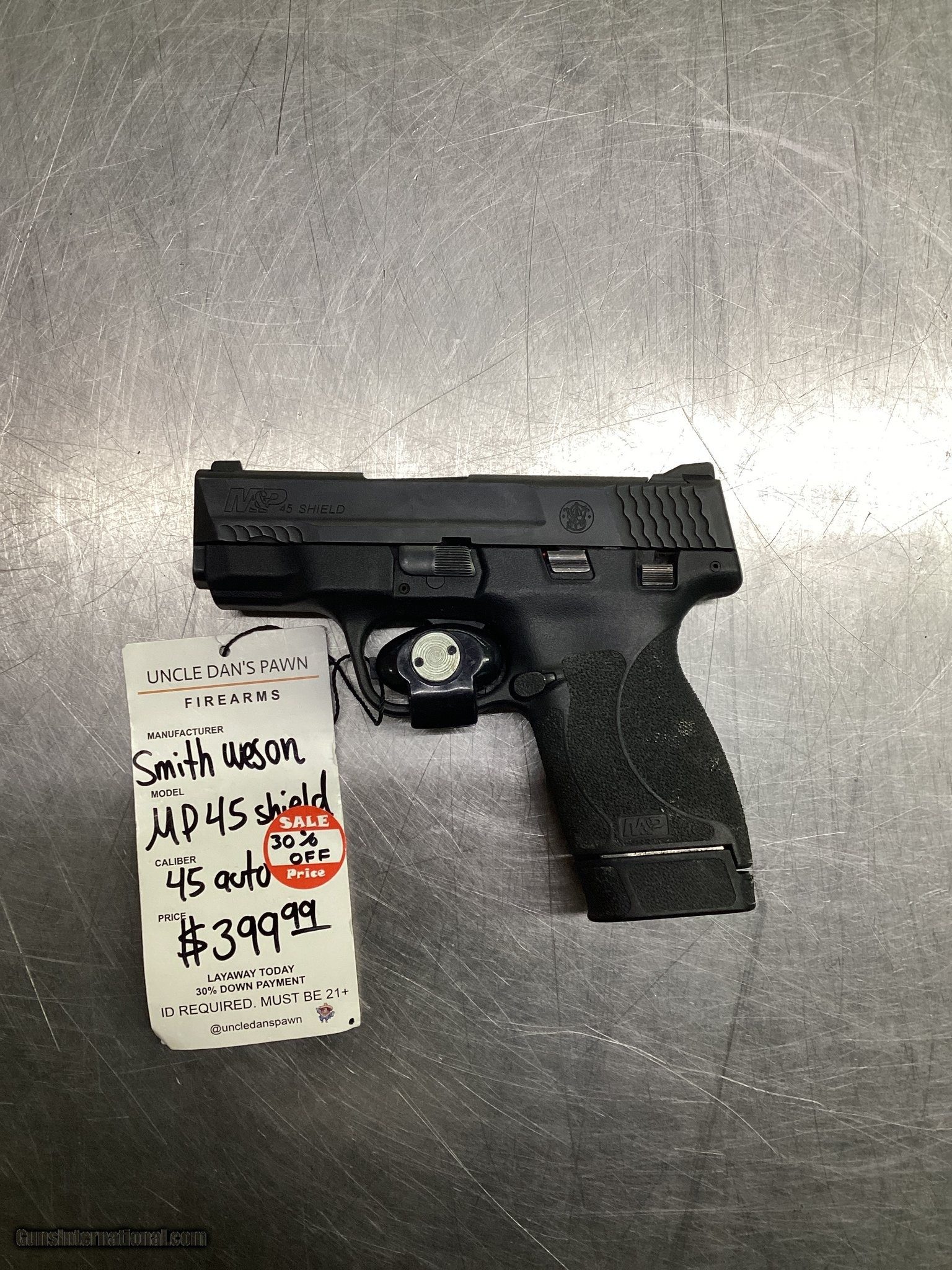 Description: Guns Listing ID: 619211 Like brand new box not included Manufacturer: SMITH & WESSON Model: M&P SHIELD Caliber Info: .45 AUTO RIM Condition: Used - Non-Certified Barrels: 3" BARREL Action: SEMI AUTOMATIC Finish: black Price: $399.99 Contact Seller |