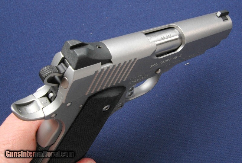 Description: Holy smoker!!! I test fired this .45 and put the first shot dead square center in the bullseye, 2nd shot same hole at 8 yards. I know, it's just a Kimber. But this one has a great trigger and an excellent, smooth slide to frame fit. No work has been to it that I know.... it's just one of those cherries that drops every once in a while. Kimber Pro Carry HD II. Commander-sized, stainless frame, bushingless bull barrel, factory sights. Comes in the factory box with one factory magazine and a set of pink Hogue finger groove grips. Priced to sell! $35 shipping to the lower 48, 3% surcharge for using a CC. If you choose to pay with a personal check, you can expect us to hold the item for up to 10 days, to make sure the check clears. Please expedite delivery of the check as we will hold an item for up to 5 days on your word. SOLD |