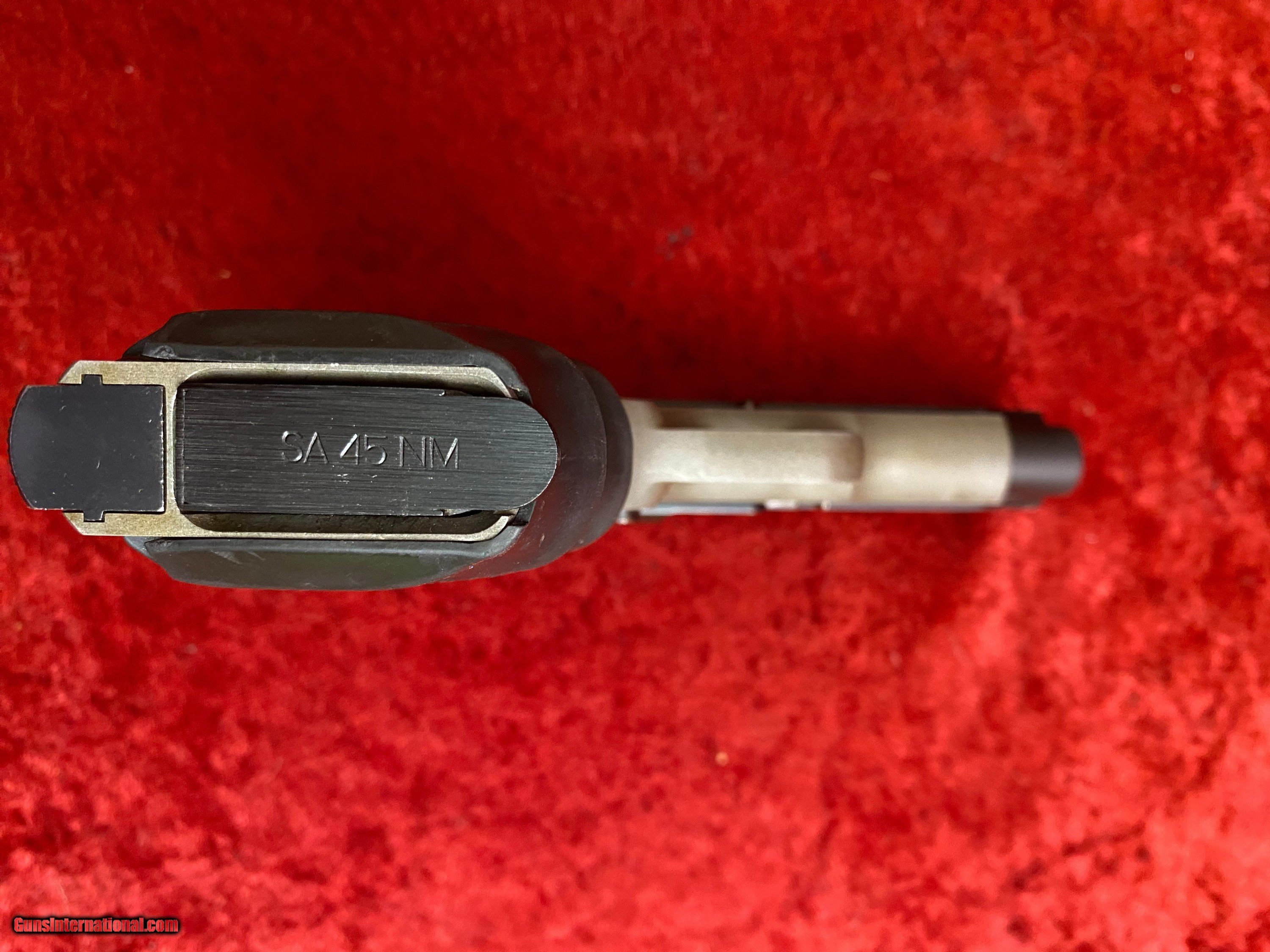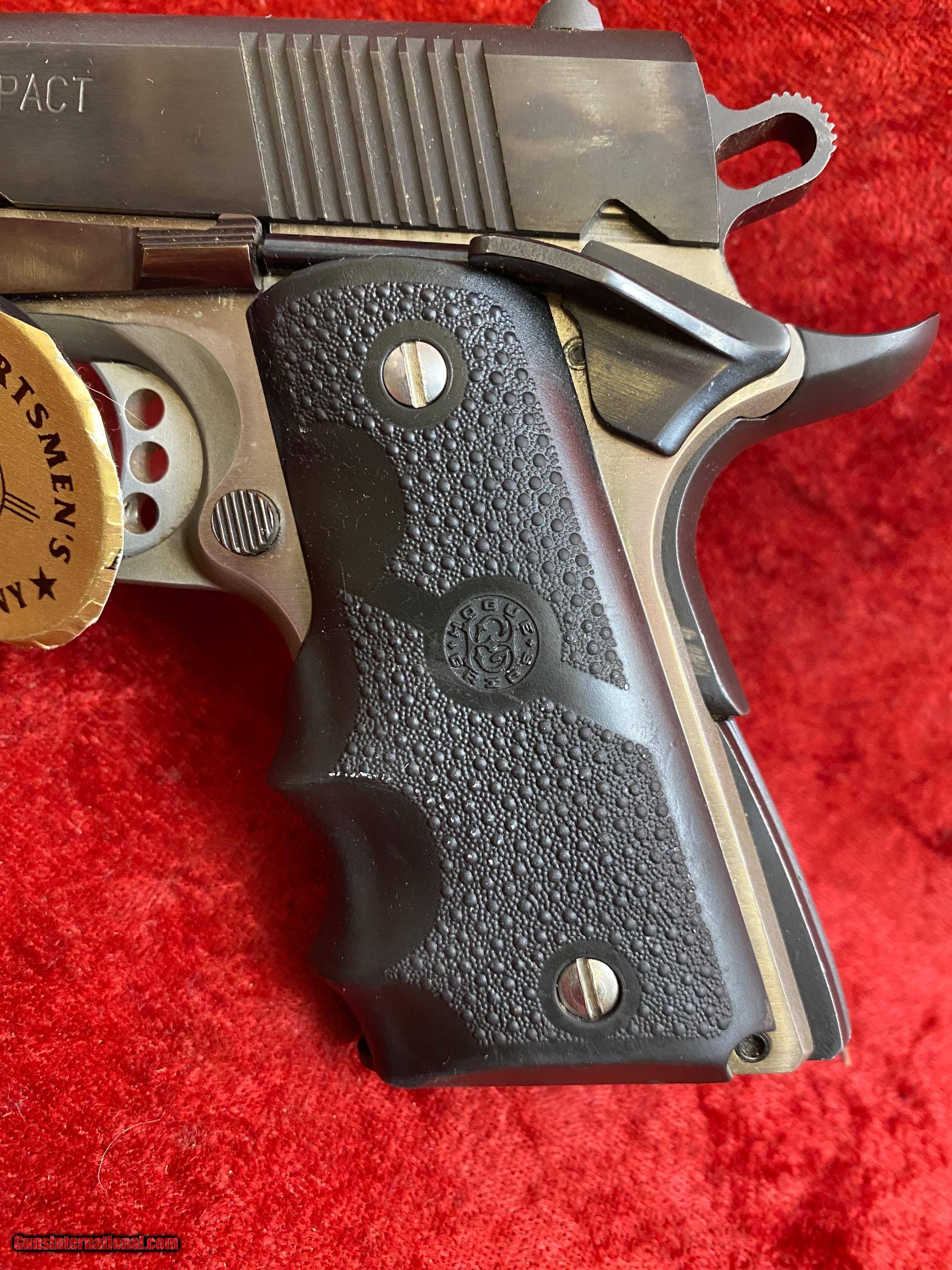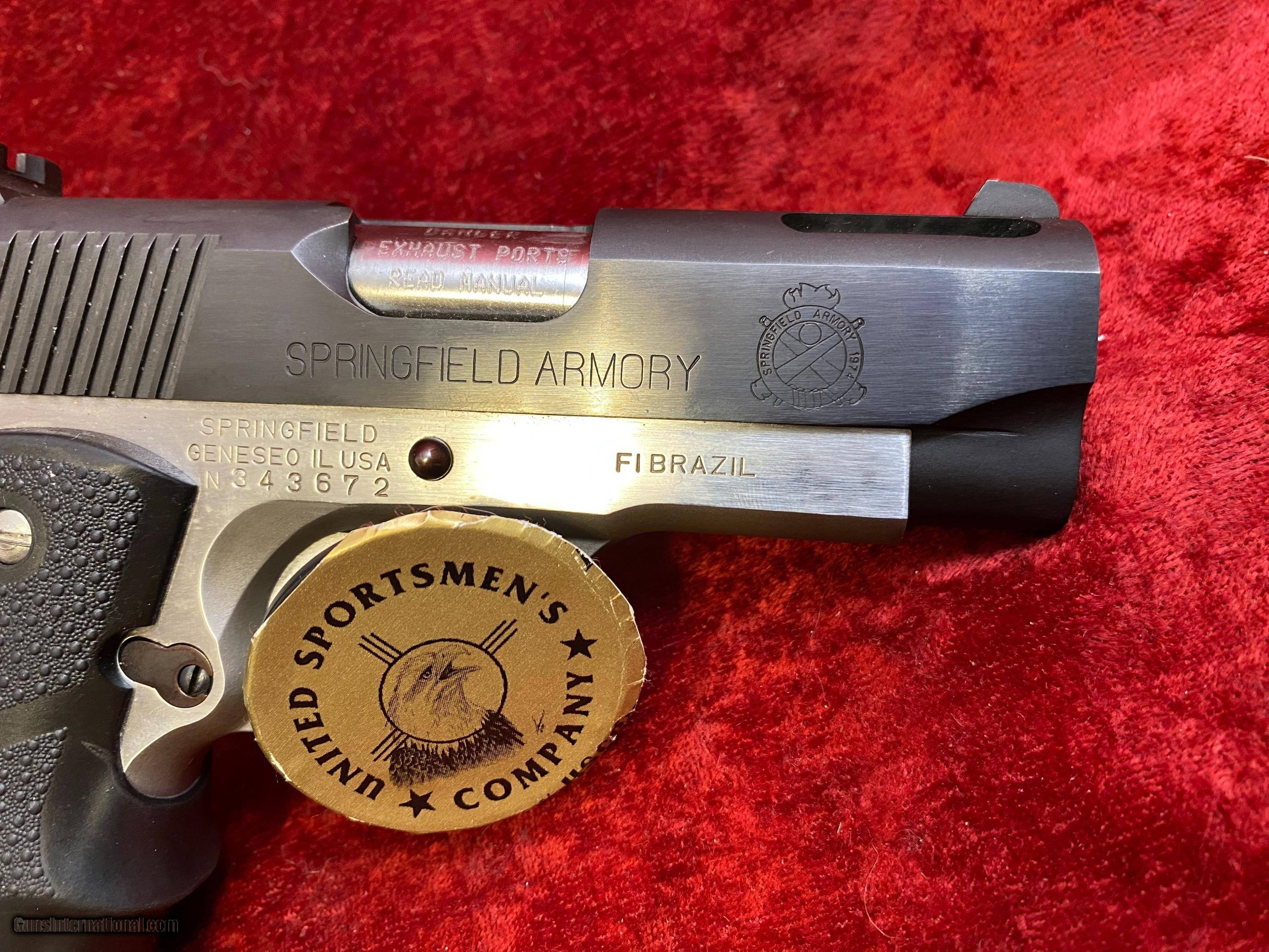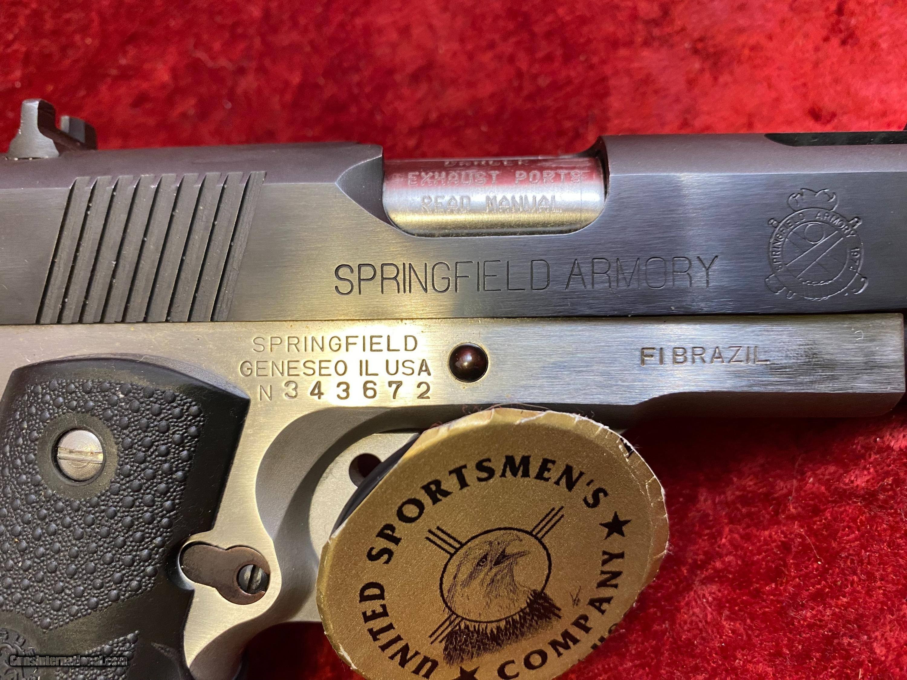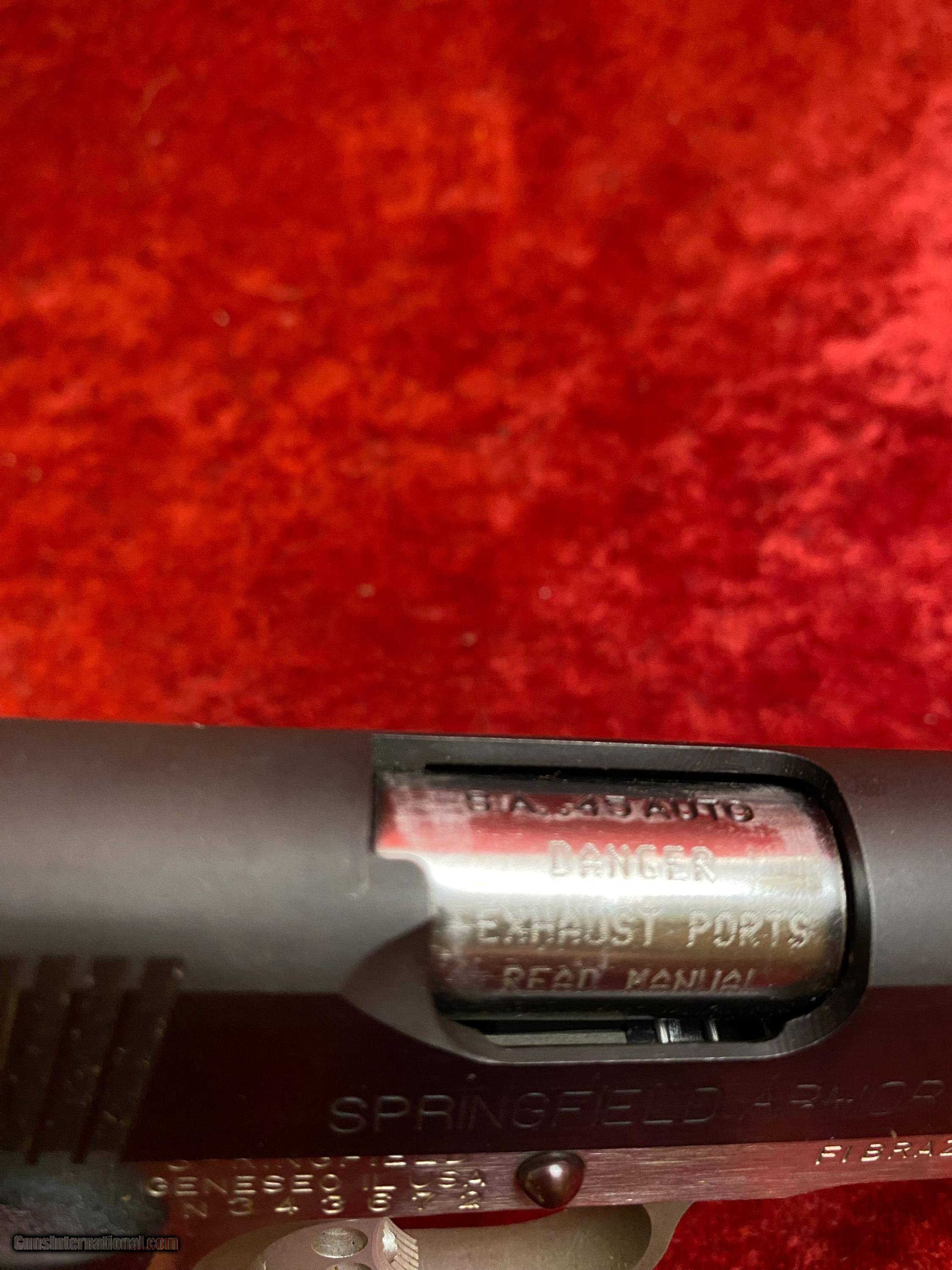 Description: Springfield Armory 1911 V10 Ultra Carry Compact .45 ACP pistol Great conceal carry pistol w/Hogue finger groove grips!! This is a used Springfield Armory 1911 V10 Ultra Compact pistol chambered in 45 ACP. It features a 3.5-inch ported barrel, 7-round magazine, 3-dot sights, thumb safety, grip safety, Hogue rubber grips, and stainless frame. Overall, this Springfield is in good condition with normal cosmetic wear on the barrel, slide, and frame. This would be a good choice for concealed carry.