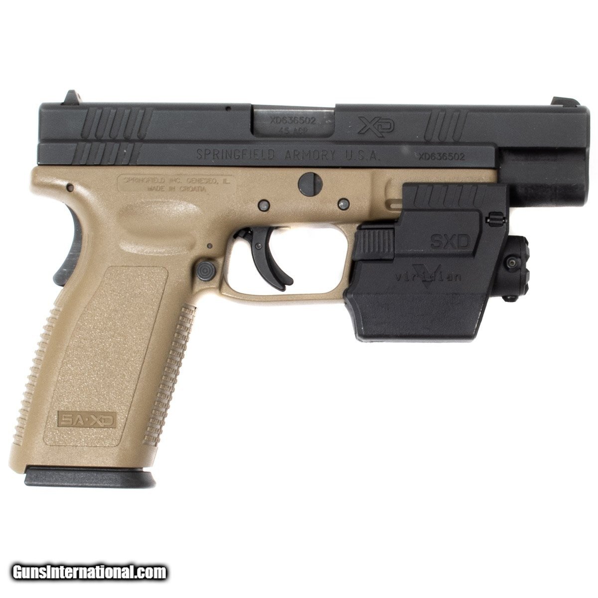 Description: Guns Listing ID: 590154 This Springfield Armory XD-45 Tactical features a Viridian SXD green laser. Purchase includes a Springfield case and two 13-round magazines. Get the best bang for your buck when you get a Certified Used Firearm . When you see the Certified Used stamp on any of our firearms, you can be confident that you‚re getting exactly what you want – a gun only in very good to excellent condition and held to the highest quality standard. All Certified Used Guns come with a ‚no questions asked‚ return policy . Manufacturer: SPRINGFIELD ARMORY Model: XD-45ACP TACTICAL Caliber Info: .45 ACP Condition: Used - Certified Barrels: 5.00" BARREL Action: SEMI AUTOMATIC Finish: fde/black Weight: 1.8 Price: $349.99 Contact Seller |