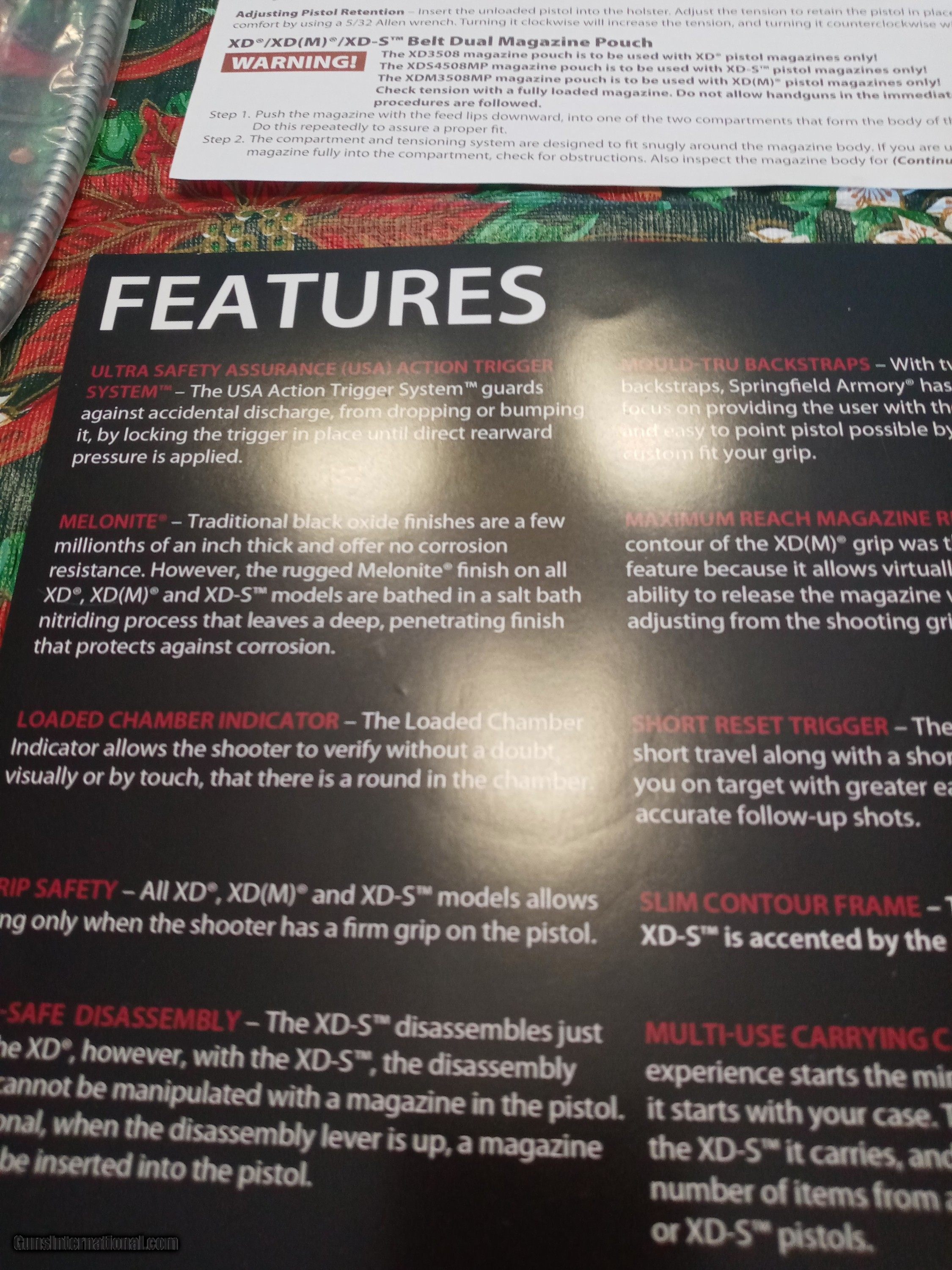 Description: Like new XDS, 10 rds down the barrel. In 2013 every gun magizine had praise for this gun. I had to have one for my personal gun. It is a very Very good weapon, but I guess I'm just "old school", any way I desided to stick with my "1911". So it's been in the safe since then, except when the springfield factory did the update on the safety. Again this an as new pistol with all the accessories hoster, double mag holder, lock, cleaning brush, a total of 3, five rd mags, hard case and all paperwork. If you have any questions, give me a call. SOLD Handgun Caliber: .45 ACP (.45 Auto) Manufacturer: Springfield armory Model: XDS 3.3 45acp Serial Number: XS567xxx Barrel Length: 3.3 Condition: Like New Metal Condition: Excellent Barrels: 3.3 Action: Simi Auto single action Triggers: Safety trigger Sights: HY VIS |
