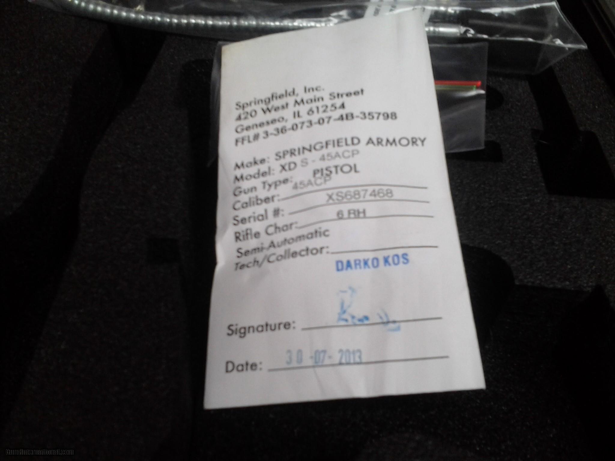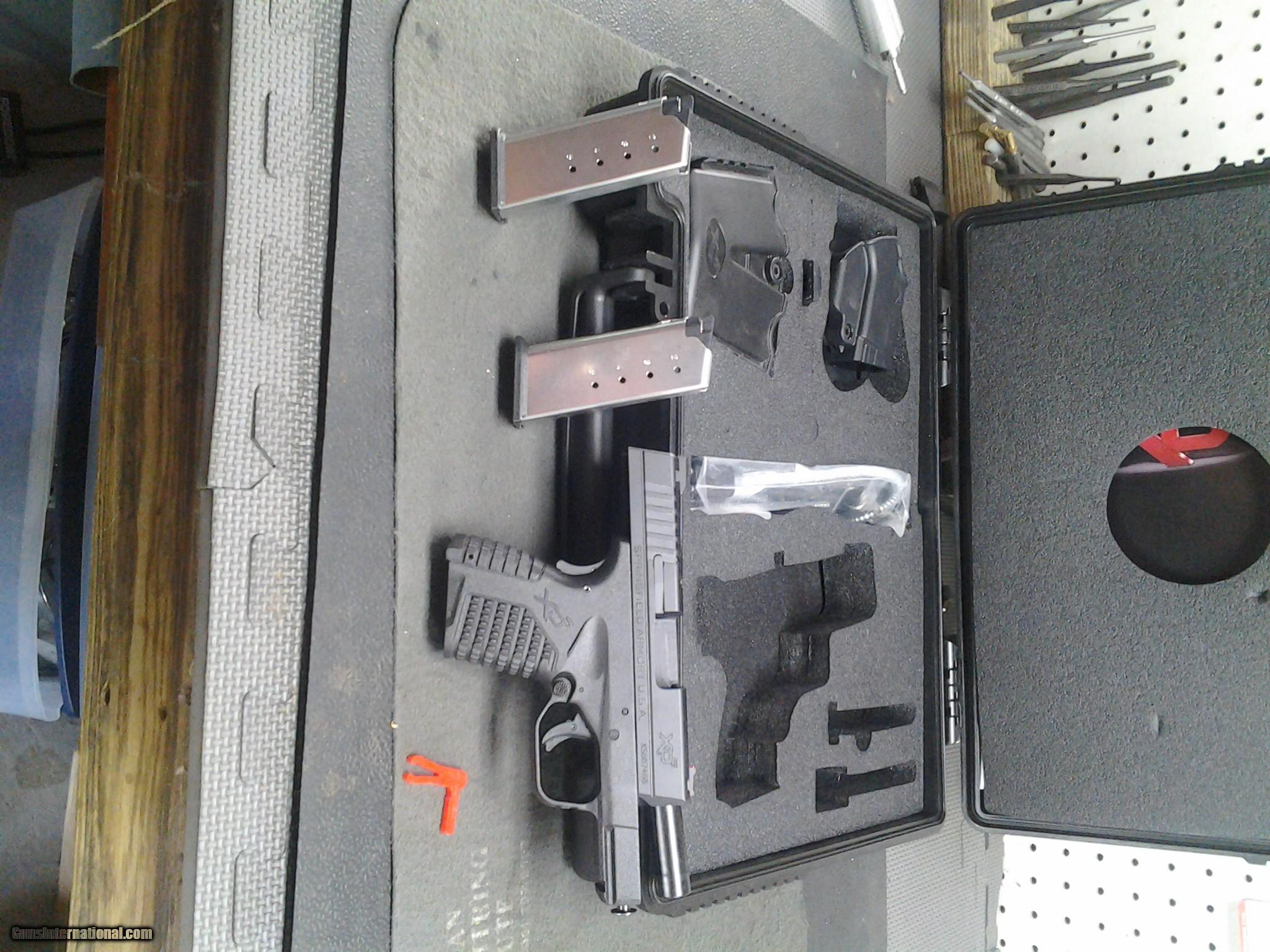 Description: Springfield Armory XDS 45 new in the box. Two (2) five round magazines, Holster, Magazine pouche, Extra fiber optics for change or repair, first round fired casing, cable lock, owners manual, and the Springfield carrying case. SOLD |