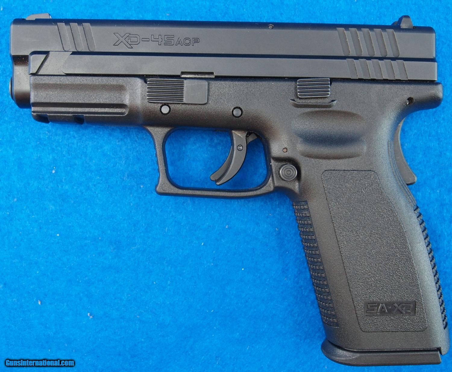 Description: Springfield XD .45 ACP. , 4" Barrel, 3 Dot sights, 98% condition. Comes with box that has second magazine, bore brush, manual, lock. S/H $25.00 C/C add 3% SOLD |