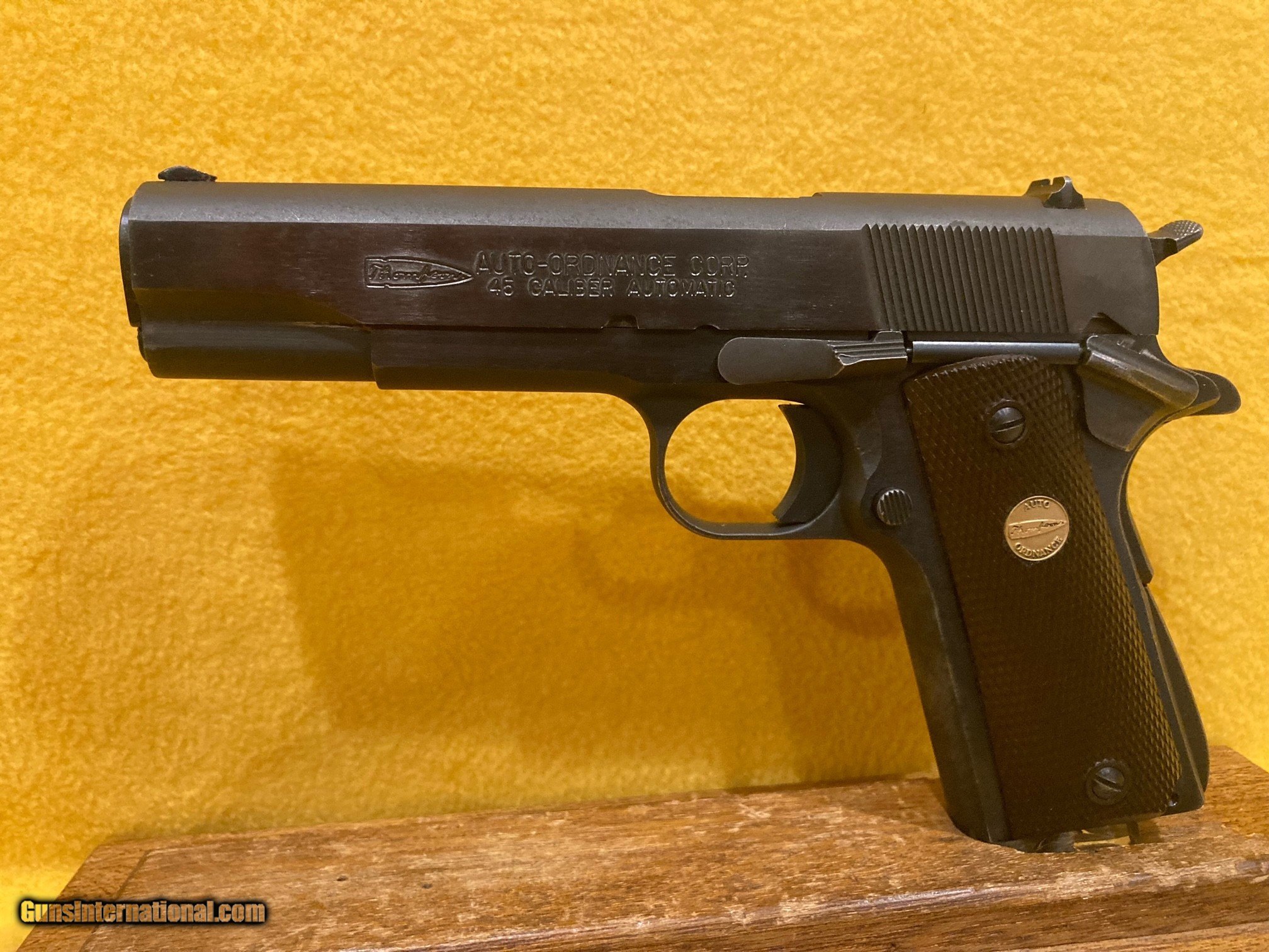 Description: Thompson Auto Ordnance 1911 in 45 acp. 5" barrel excellent bore.overall good condition with some handling wear and light freckling on the slide. Grips are excellent. Serial #AOC7386, our stock #D4386. NO credit card fees. SOLD Handgun Caliber: .45 ACP (.45 Auto) Manufacturer: Auto Ordnance Model: 1911 |