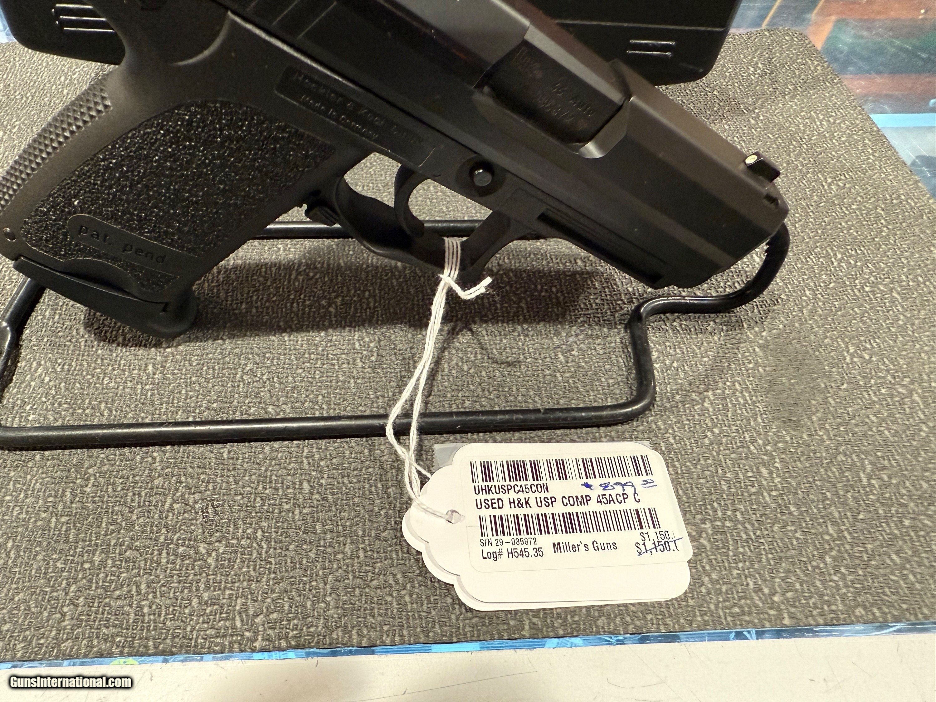 Description: USED H&K USP 45 Compact .45acp Fired (1) magazine 8 round capacity (3) magazines included Night sights Factory box and literature included Handgun Caliber: .45 ACP (.45 Auto) Manufacturer: H&K Model: USP 45 Compact Serial Number: 29-035872 Barrel Length: 3.78” Condition: EXCELLENT Price: $899.00 Contact Seller |