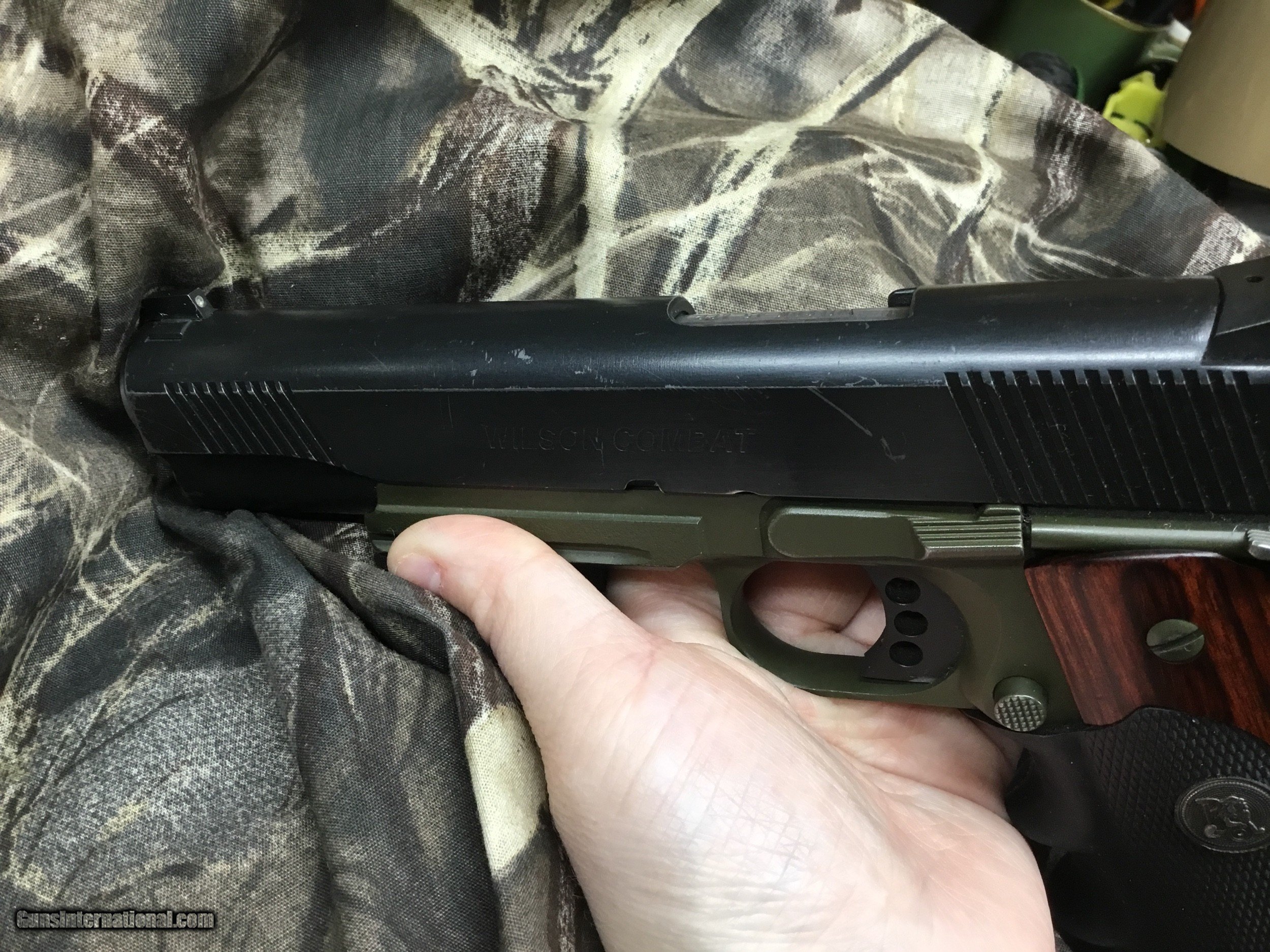 Description: USED USED USED WILSON COMBAT 1911 CQC 45 ACP ARMOR TUFF GREEN AND BLACK FINISH (has aftermarket grips) WHAT CAN YOU SAY IT IS A WILSON COMBAT....BEST OF THE BEST WILSON ALL THE WAY.................................HAS SEVERAL SMALL MARKS ON BOTTOM FROM LIGHT ON THE RAIL AND COUPLE OF SMALL SCRATCHES ON LEFT SIDE OF SLIDE (PICS WILL SHOW) $1995.00.................55.00 SHIP AND INSURE..............OBO...............OBO...................OBO Thank you for looking at our items. If it is listed on the site, we still have it in the shop. If you wish to buy, hit buy it now and call the shop to pay. Ask for Bree....... (803) 874-1060. If you are WEST of the Mississippi add $10 more to shipping cost. NO sales to California NO INTERNATIONAL SALES. SOLD Handgun Caliber: .45 ACP (.45 Auto) |