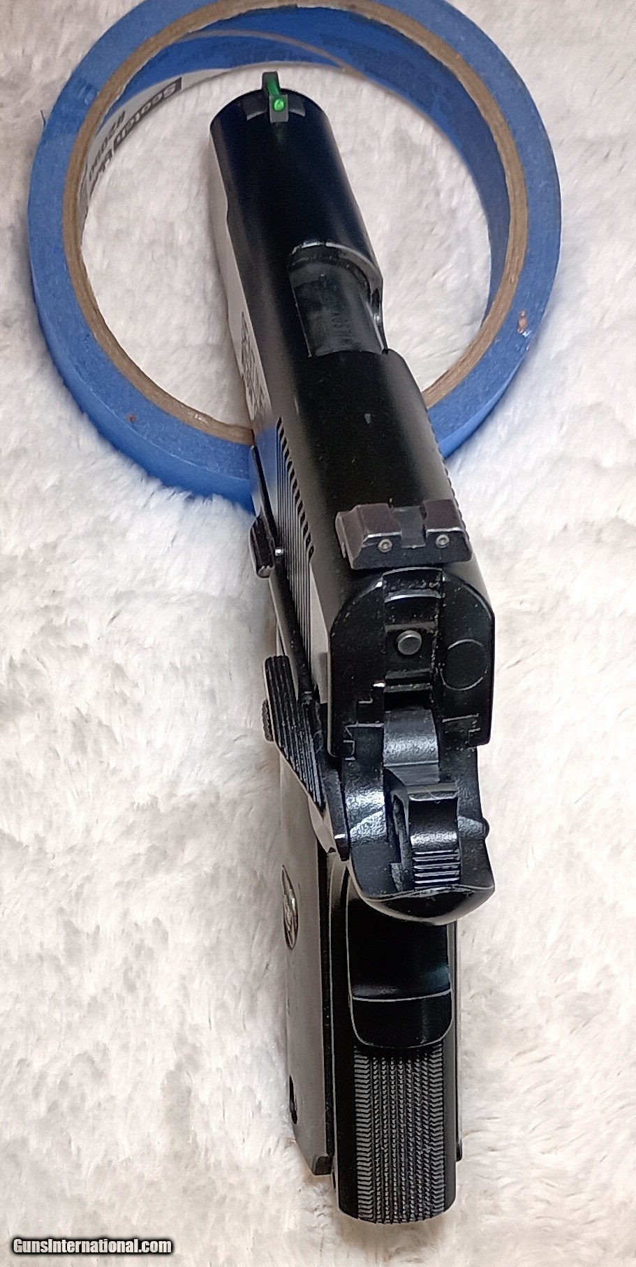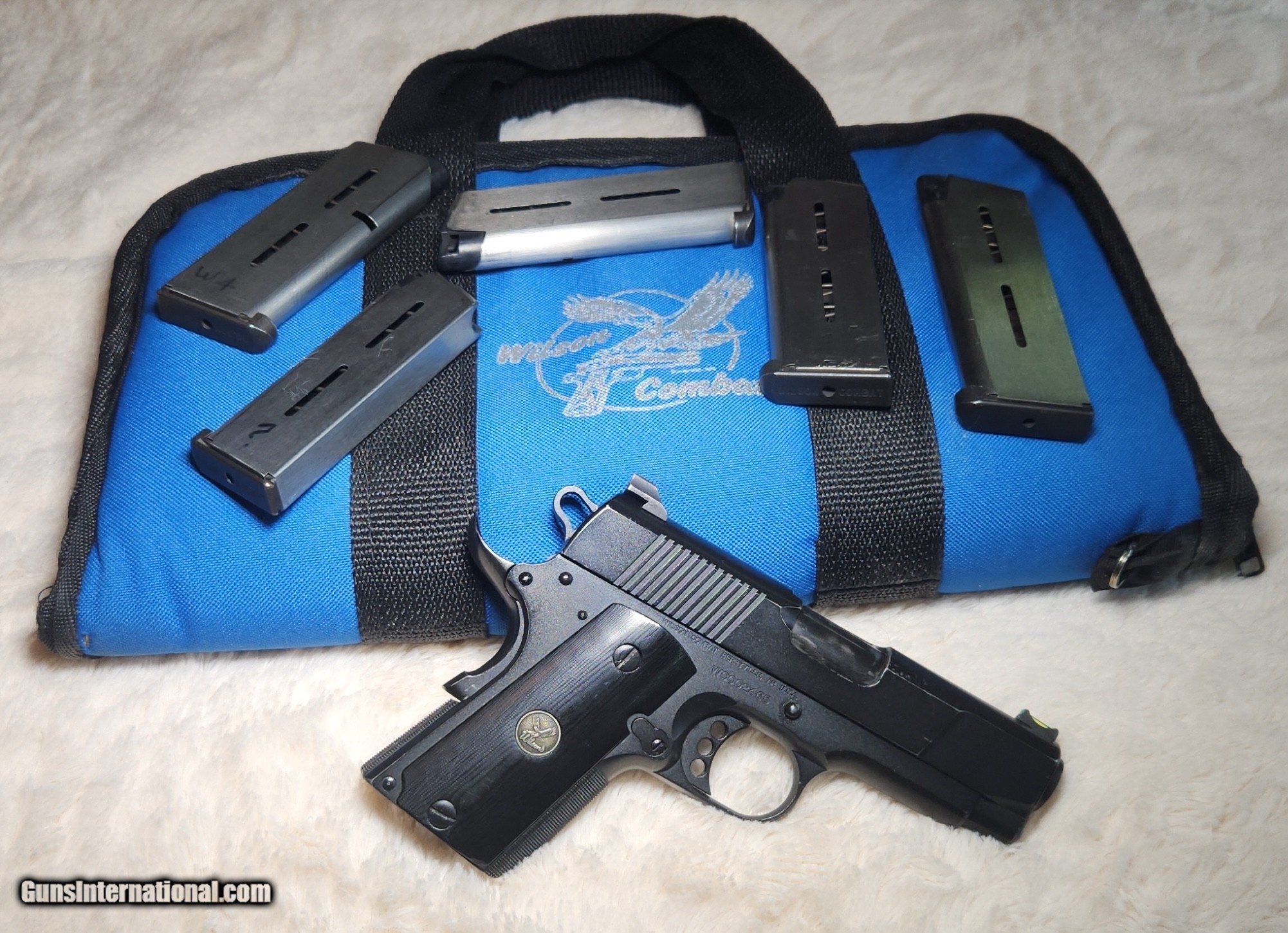 Description: Used and well kept with normal holster wear. Rifling, checkering, chamber, trigger, safety all excellent. Fibre optic front site is not original, but the original is included with package. I have also come across some extra additional magazines which will be included as a bonus. Five original mags plus four additional. Total 9 magazines included…$300 value included “free”. Handgun Caliber: .45 ACP (.45 Auto) Manufacturer: Wilson Combat Model: Sentinel Serial Number: WC002455 Barrel Length: 3 Condition: Very Good Metal Condition: Clean with holster wear Wood Condition: Excellent Bore Condition: Clean Price: $1,925.00 Buy Now Contact Seller |