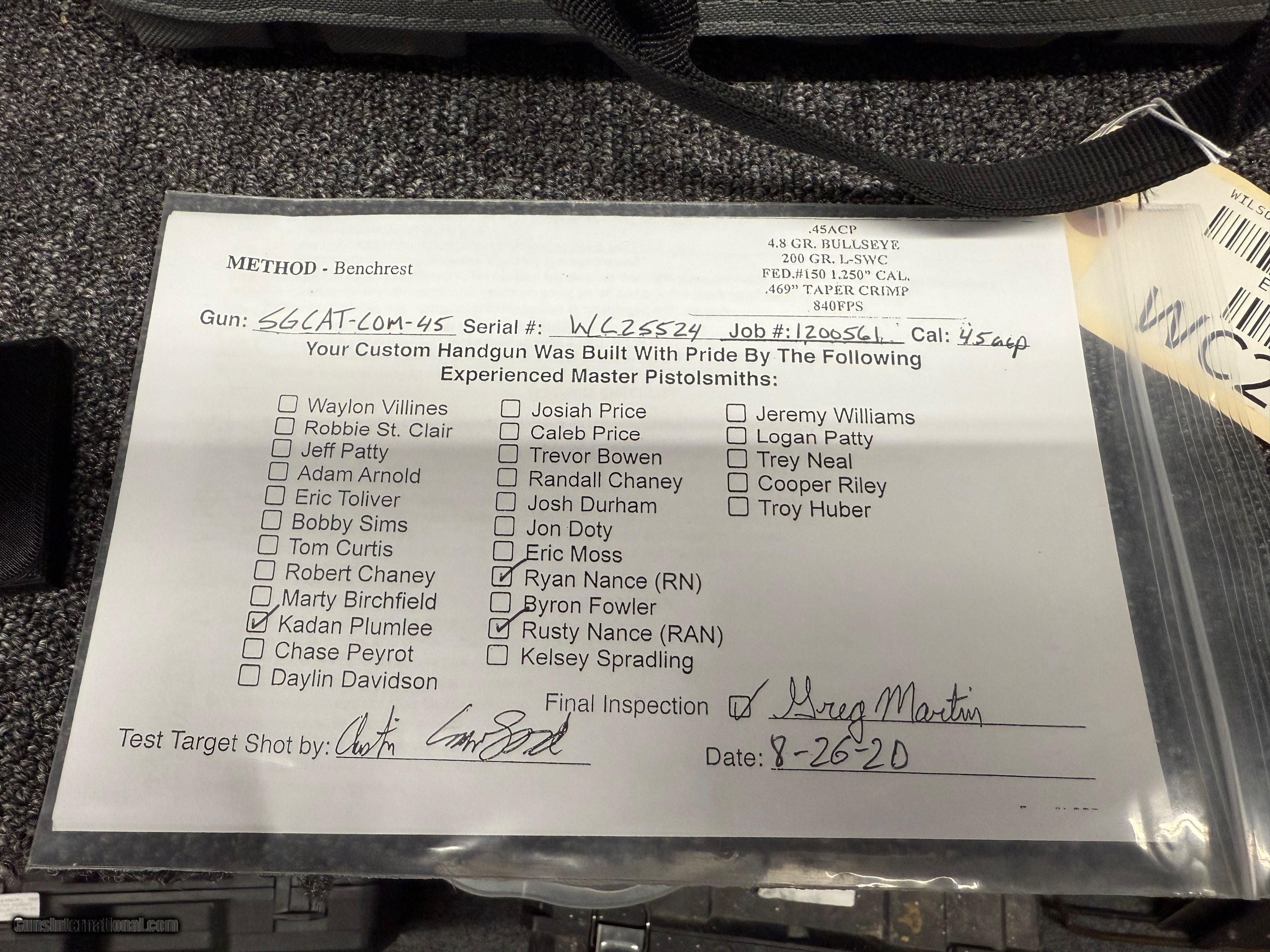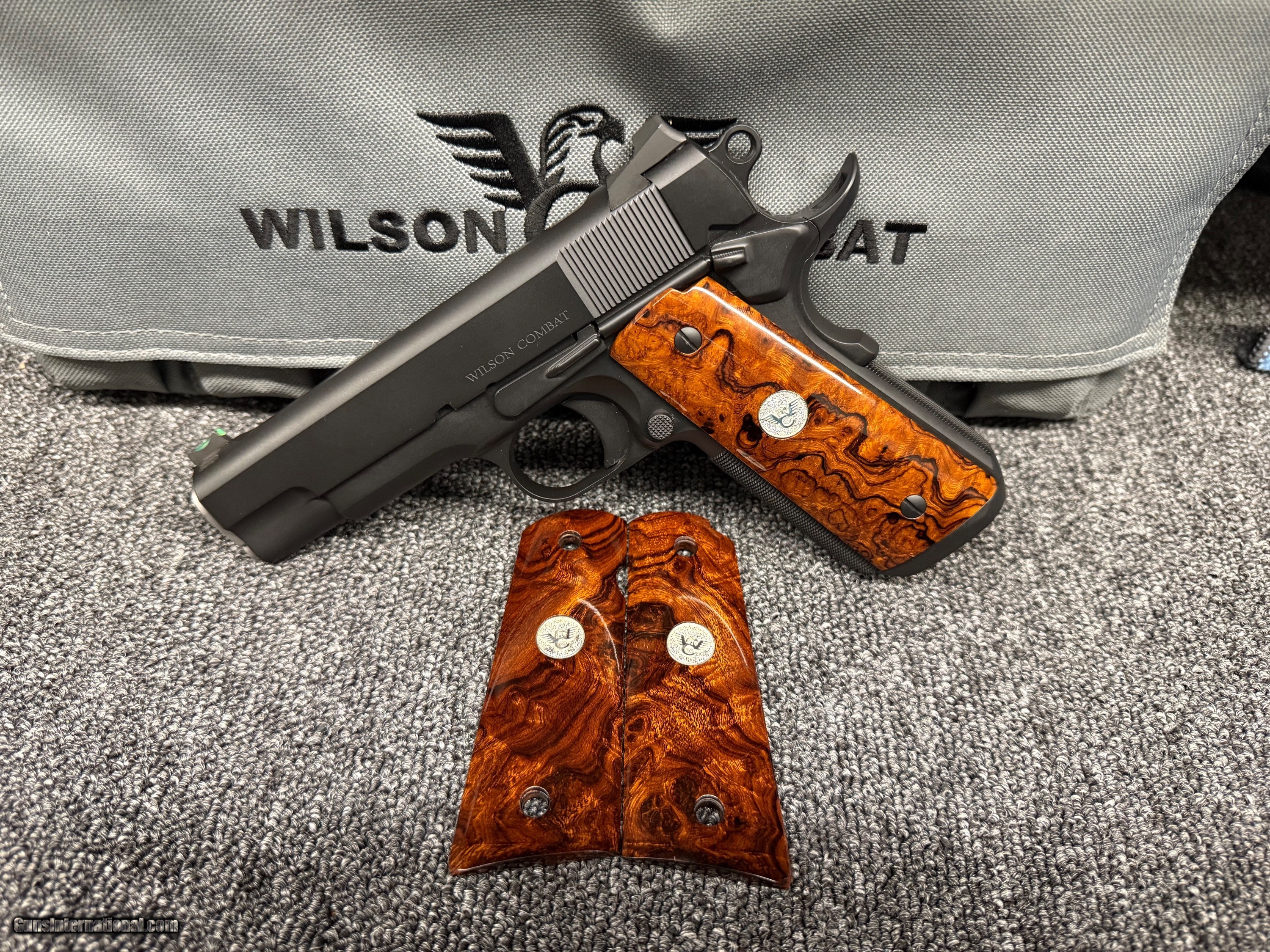 Description: All, Up for consideration is one of my Wilson Combat Supergrade Commander Specials chambered in 45acp. 2020 build with all oem items. Test target, build sheet, 6-factory Wilson magazines. Its obviously not fresh from Wilson but the condition is like factory new. Armor Tuff Finish on the whole build. I have not shot it since owning it. Flat top & ball cut slide Full length guide rod Round butt one piece magwell Recessed slide stop Flushcut & reverse crown barrel 2-pairs of Wilson Combat desert ironwood grips with sterling silver medallions Feel free to send me a message if you have any other questions, inquiries or would like additional photos of different angles. Im cigarafic88 on 1911addicts. I dont sell a lot of guns on here but when I do its a good one. $4800.00 shipped from my FFL to yours. Will be shipped vis USPS priorty mail with signature confirmation mandatory. FFL info must be exchanged prior to shipping. SOLD Handgun Caliber: .45 ACP (.45 Auto) Manufacturer: Wilson Combat Model: Supergrade Commander Special Serial Number: wc25524 Bore: Like new Condition: Like new Metal Condition: Like new Wood Condition: New Bore Condition: Like new Manufacture Date: 2020 |