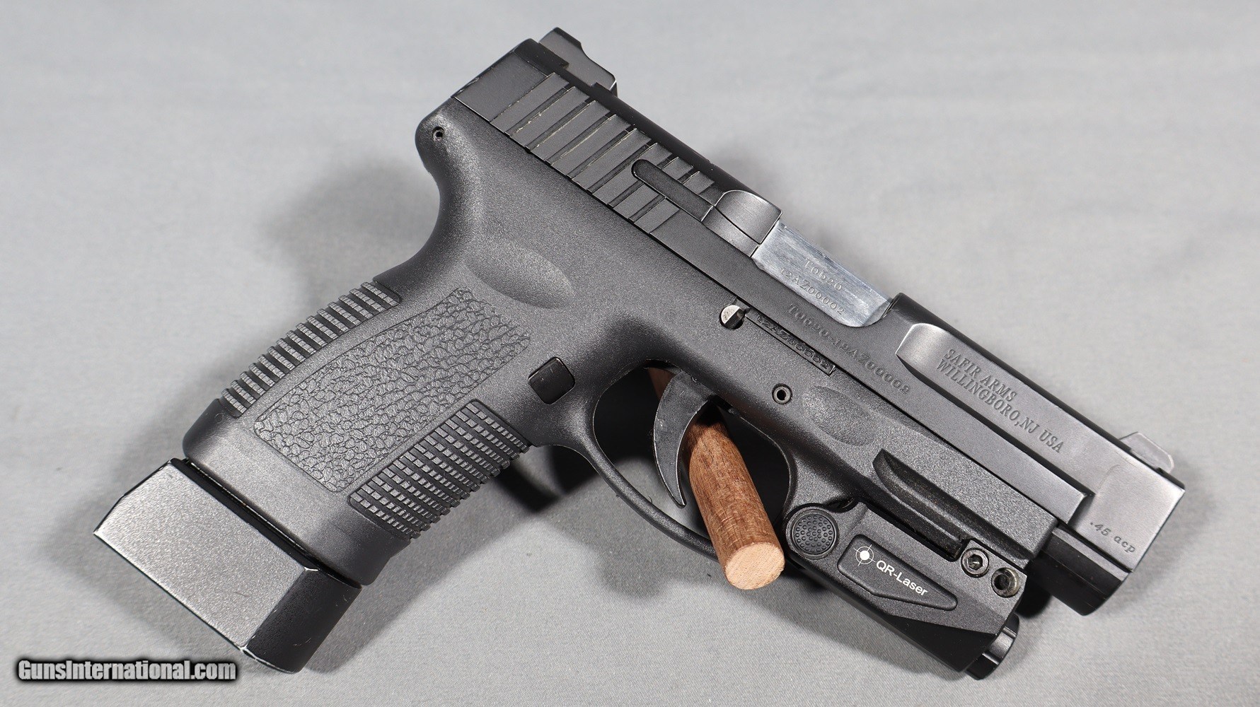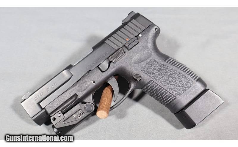 Description: For your consideration, we have a Zig P45, .45 acp handgun by Safir Arms to offer. You may purchase this used firearm on the Bass Pro Shops/Cabelas by adding it to your Cart, or you may contact the Wichita, Kansas Gun Library at (316) 854-0748. Your purchase will be shipped free of charge to the Bass Pro Shops/Cabelas store nearest to your location. Thank You for your interest and for shopping Bass Pro Shops. .45 Auto Chambers: .45 acp Metal Condition: Good Bore Condition: Good Barrels: 4" barrel Triggers: Curved Stock Dimensions: 7" overall length Weight: 2 Sights: Three dot sights Item Location: Wichita, KS Price: $199.99 Contact Seller |