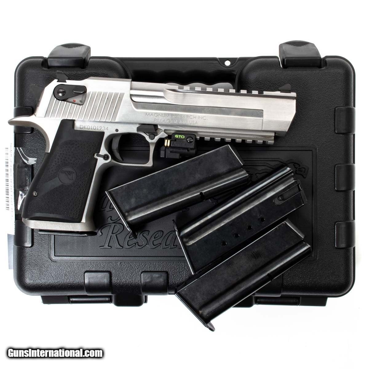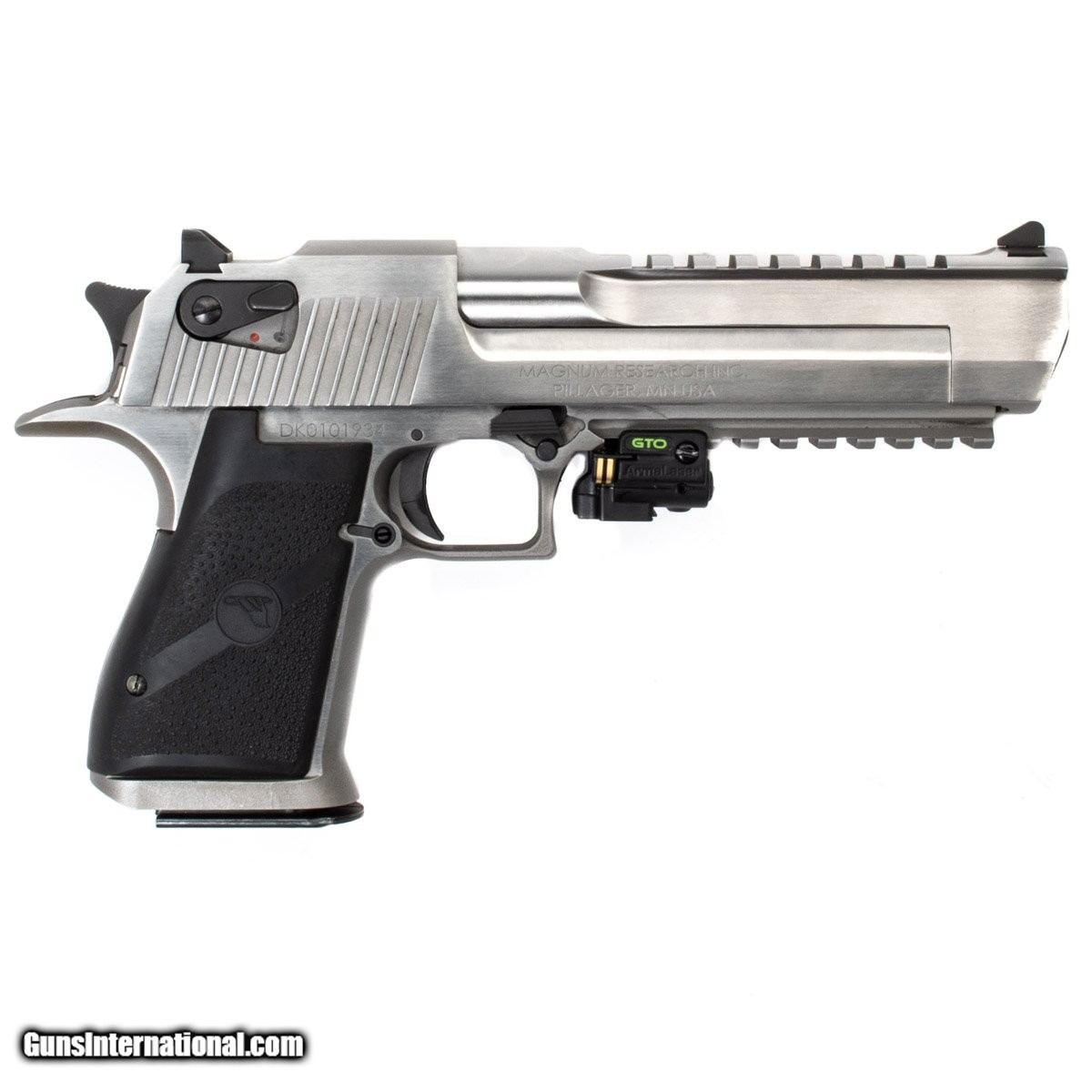 Description: Guns Listing ID: 598412 This Desert Eagle features an ambidextrous thumb safety and an Armalaser GTO green laser. It comes with the original case, owner‚s manual, DVD, four 7-round magazines, and a gun sock. Get the best bang for your buck when you get a Certified Used Firearm . When you see the Certified Used stamp on any of our firearms, you can be confident that you‚re getting exactly what you want – a gun only in very good to excellent condition and held to the highest quality standard. All Certified Used Guns come with a ‚no questions asked‚ return policy . SOLD Manufacturer: MAGNUM RESEARCH Model: DESERT EAGLE PISTOL Caliber Info: .50 AE Condition: Used - Certified Barrels: 6.00" BARREL Action: SEMI AUTOMATIC Finish: stainless Weight: 4.6 |