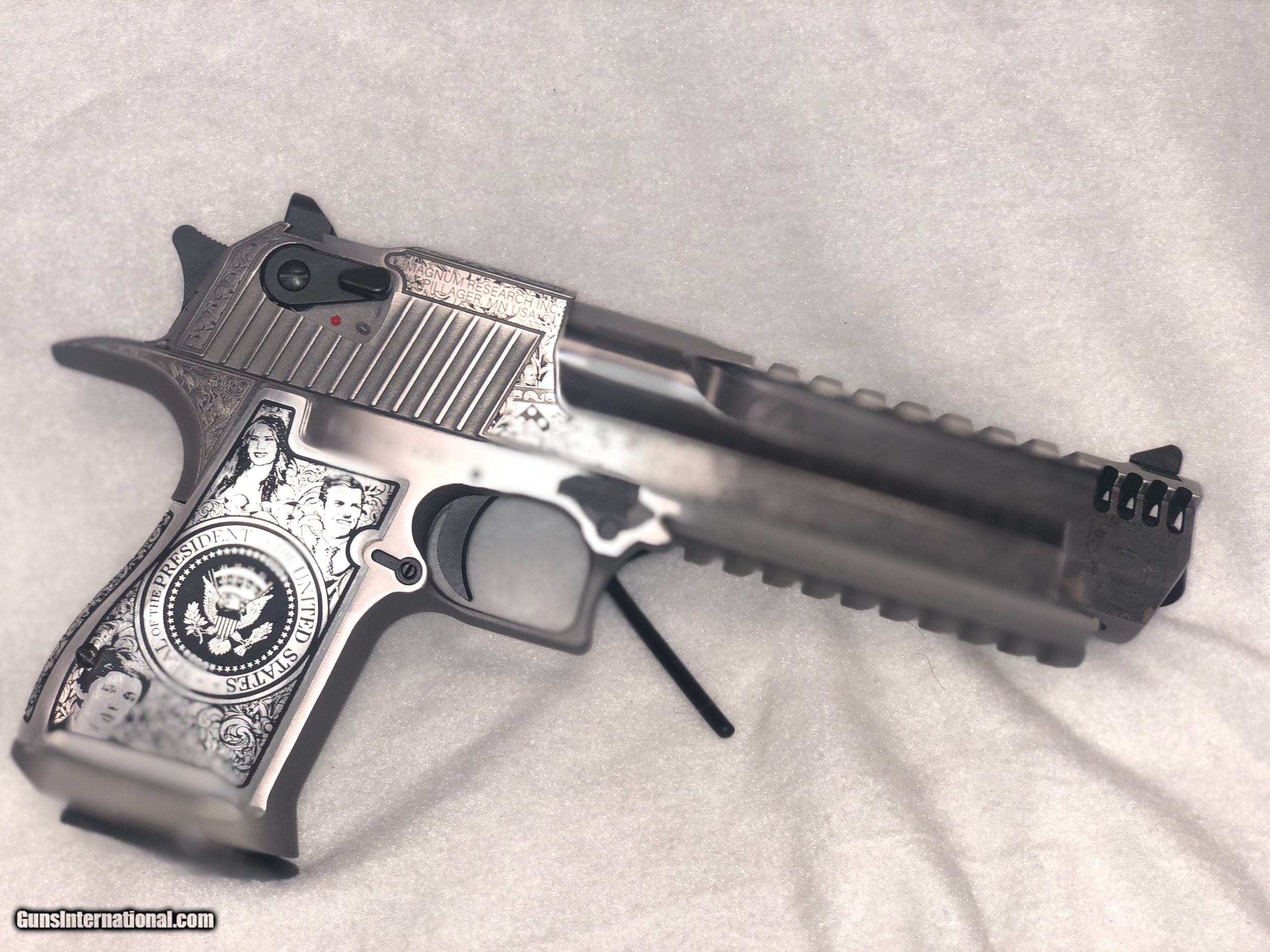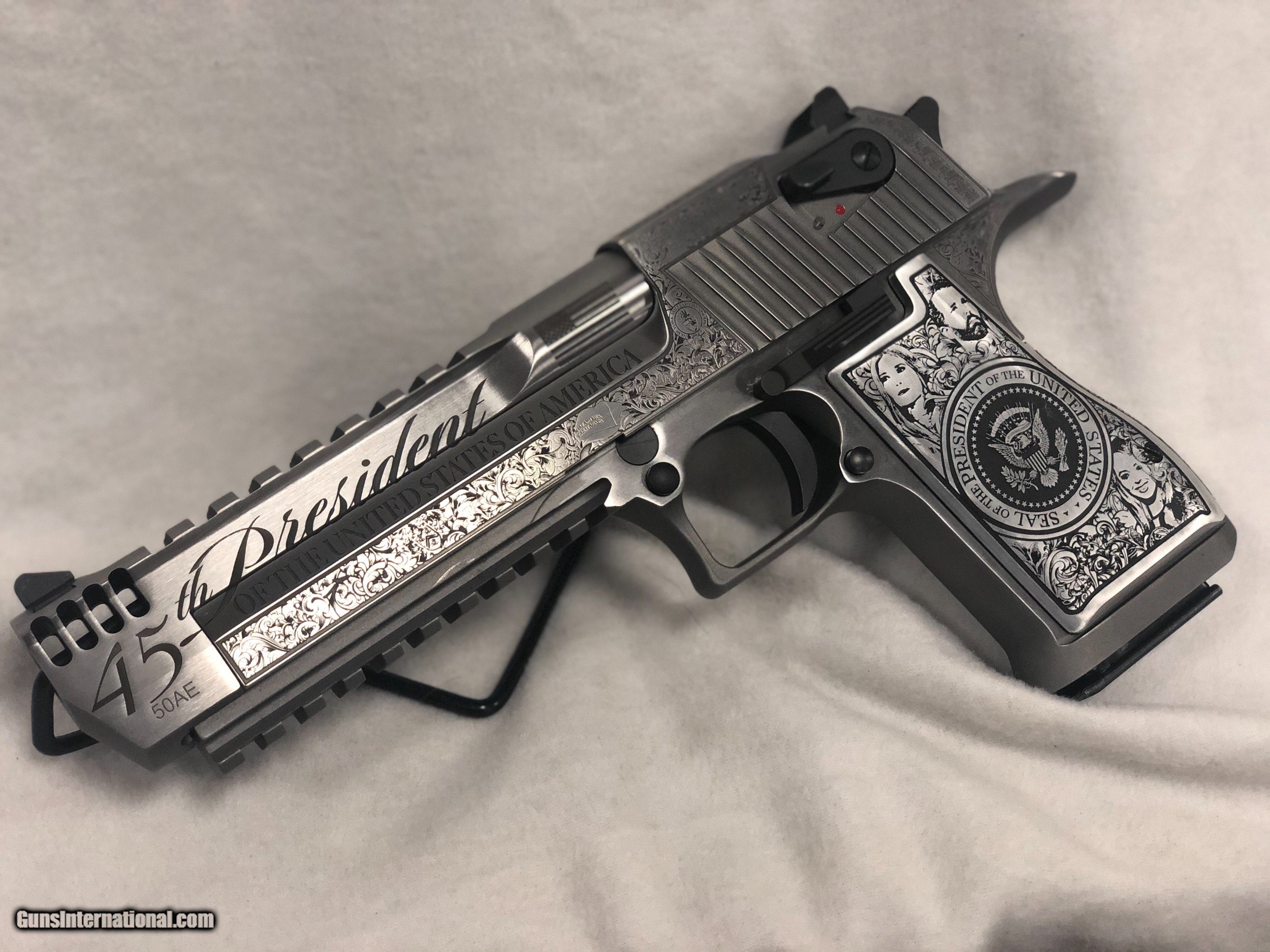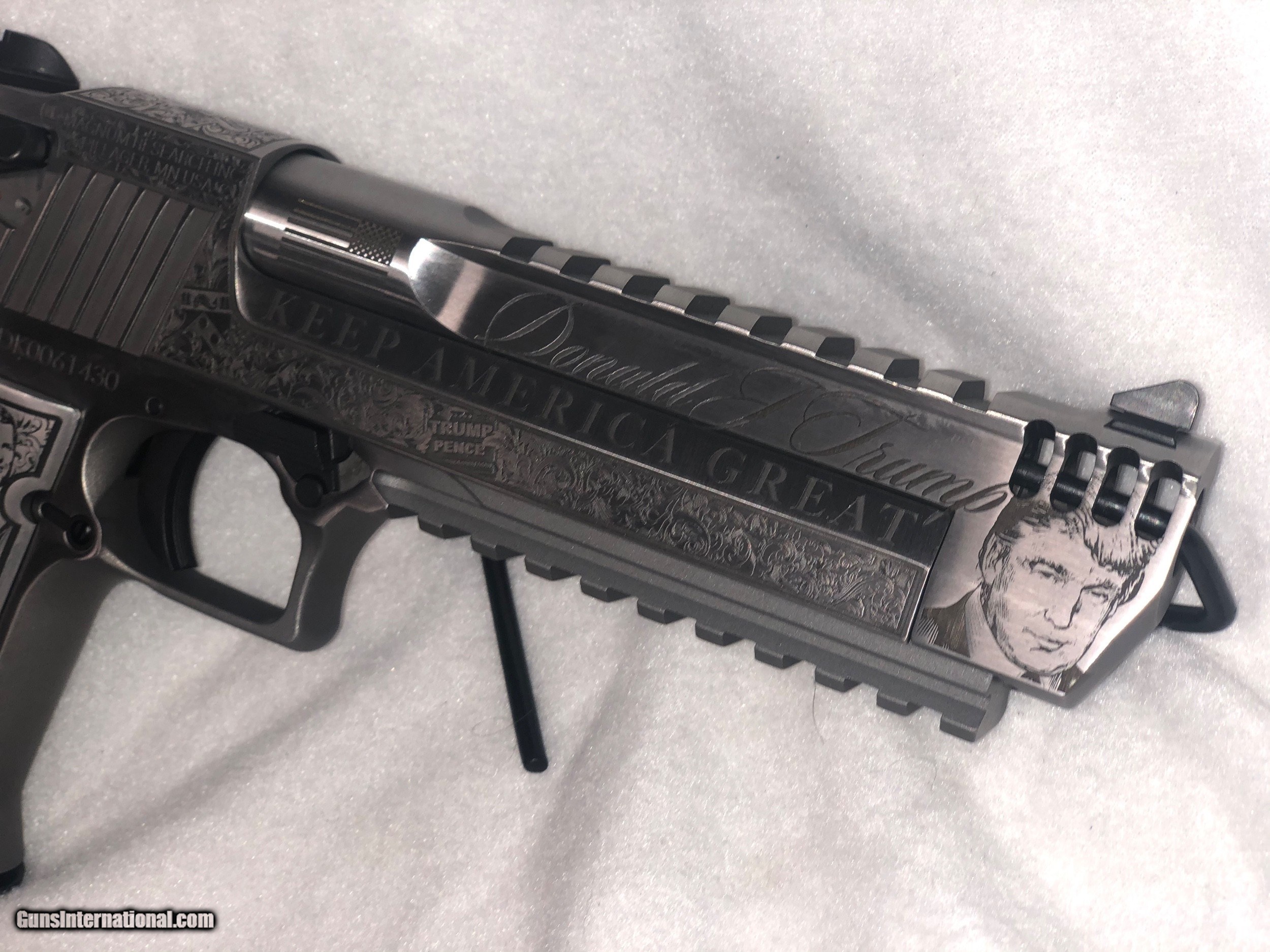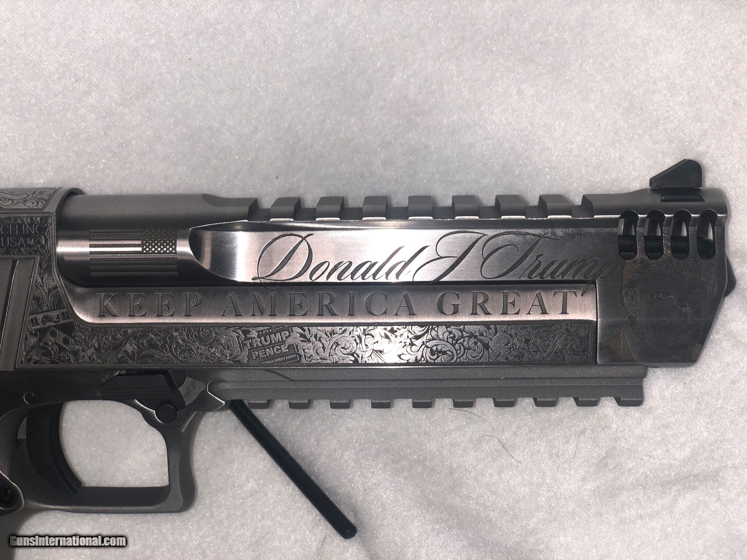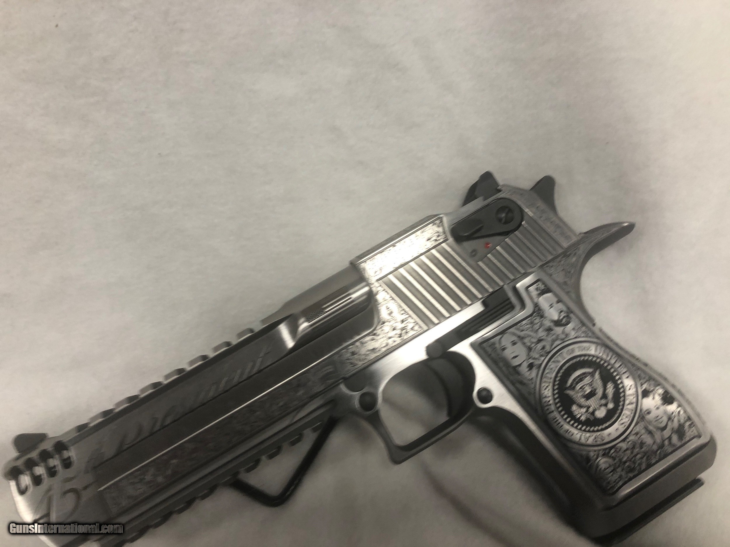 Description: This is a limited production Magnum Research DE 50 Trump engraved pistol. This is a Davidson exclusive shot show gun for dealers only to order. There was only 150 of these pistols made for dealers. This a rare and distinct gun for sale. Don't miss the chance to own it. Only FSFA aka THE GUN SHOP! SOLD Manufacturer: Magnum Research Model: Desert Eagle |