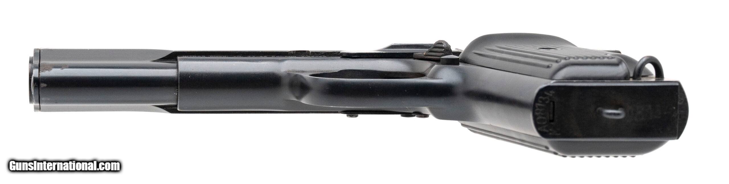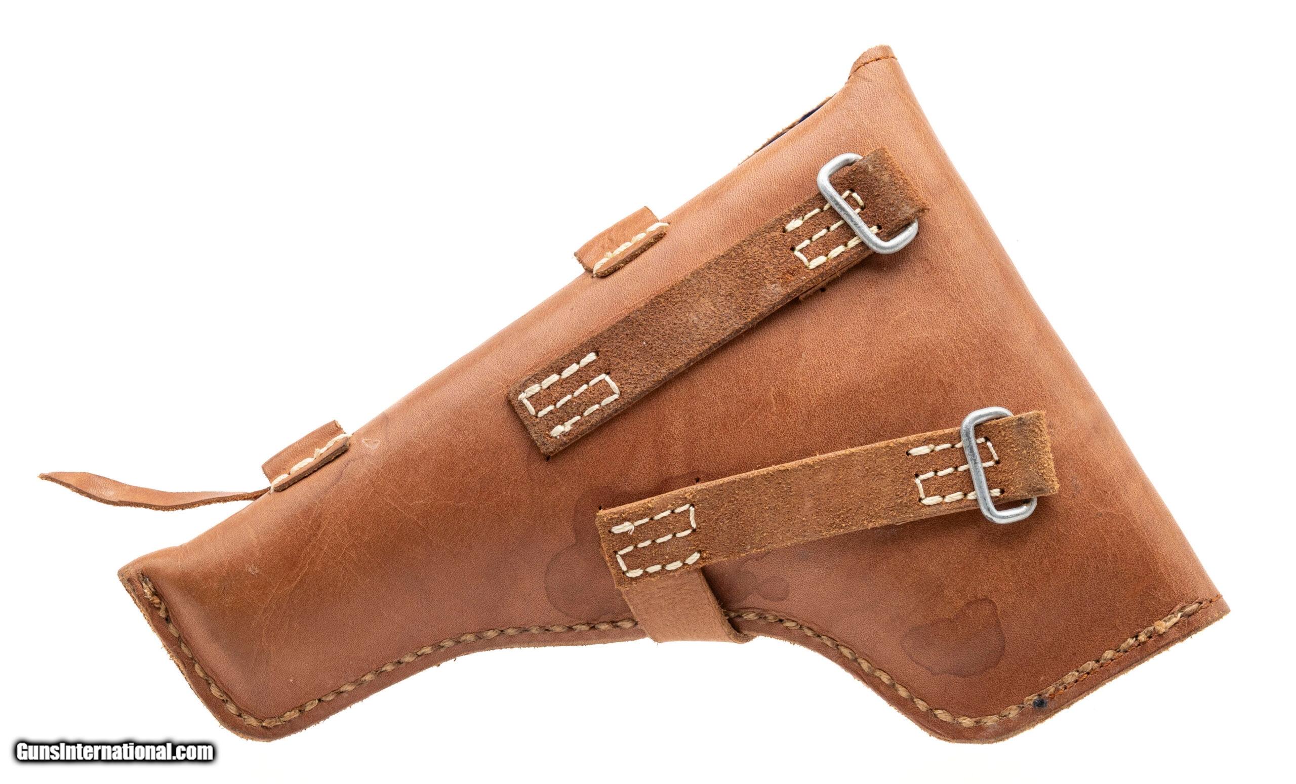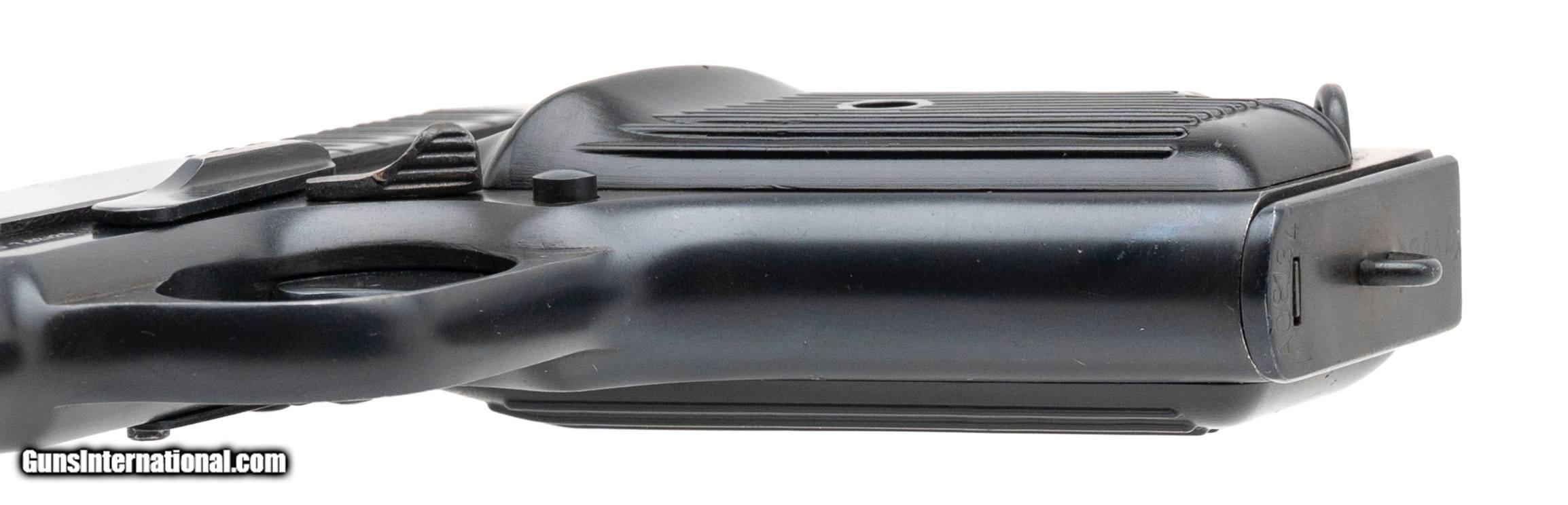 Description: "Serial No. DR07199, made in 1954, 7.62x25mm, 4 ½" round barrel. Pistol retains approximately 95% of its original finish, with matching serial numbers throughout. Grips show light handling marks but remain structurally sound. Action is smooth and functions correctly. Includes brown leather holster with extra magazine. A classic Cold War-era sidearm SOLD |