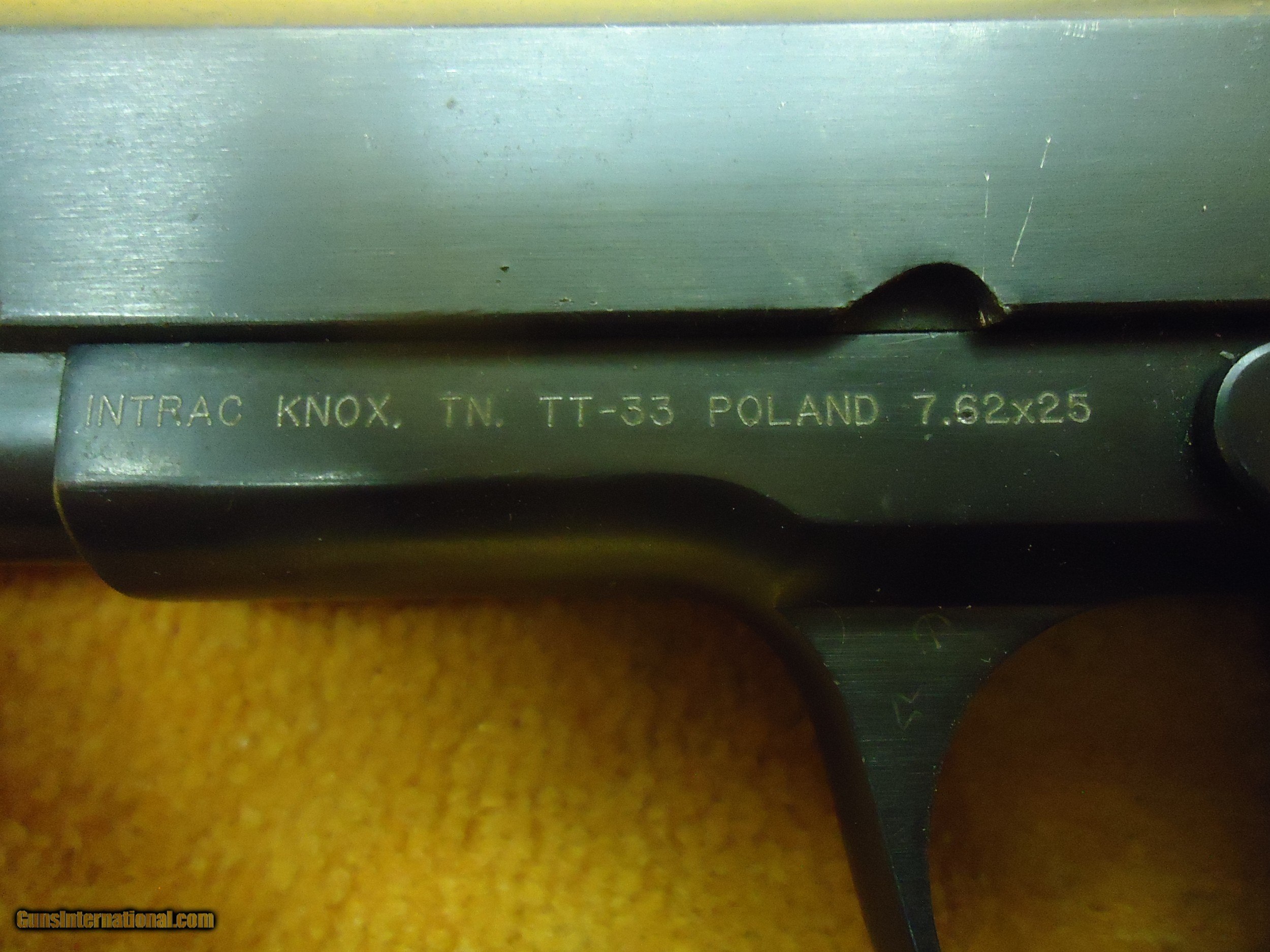 Description: 1952 Polish Tokarev Pistol 7.62x25. Good bore, Excellent condition. In holster with extra magazine and cleaning rod. SOLD Curio/Relic: Yes Manufacturer: Poland Model: Tokarev Serial Number: PK00452 Caliber Info: 7.62x25 Bore: Good Condition: Excellent Metal Condition: excellent |