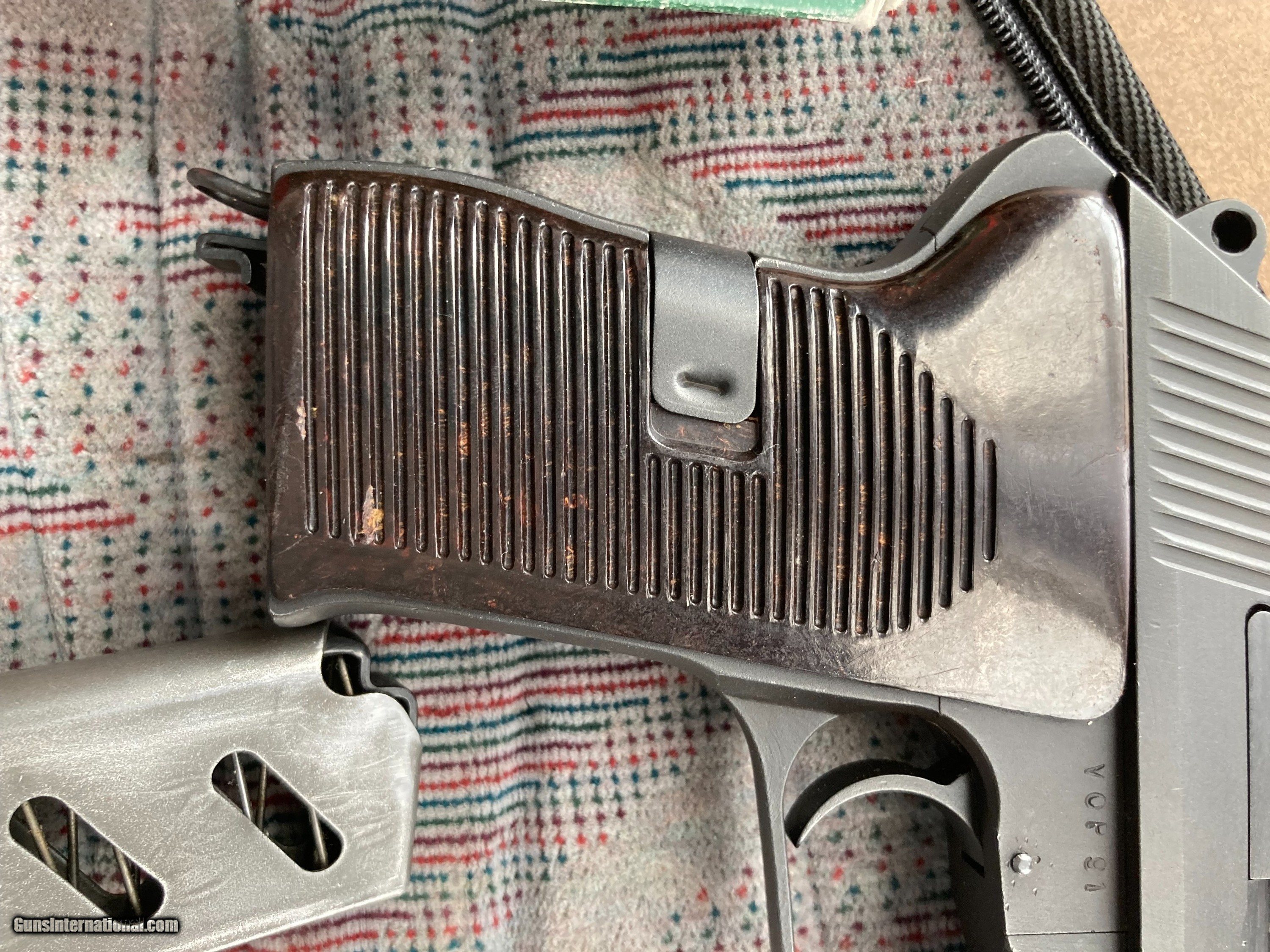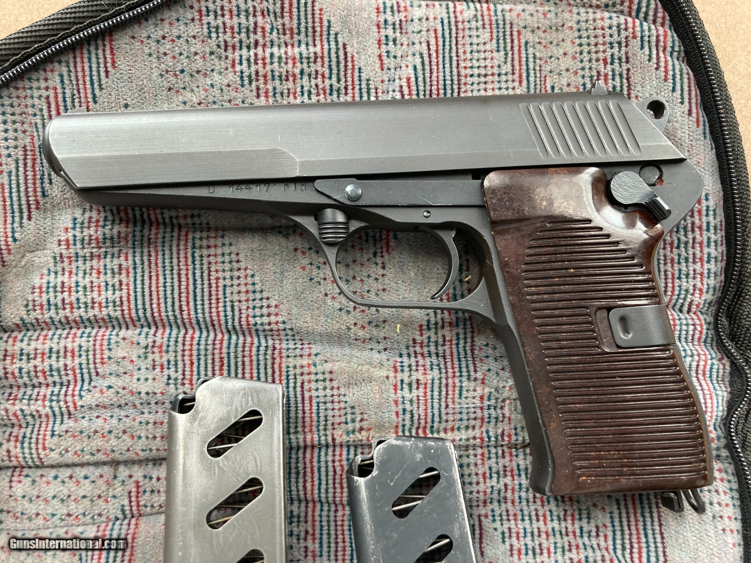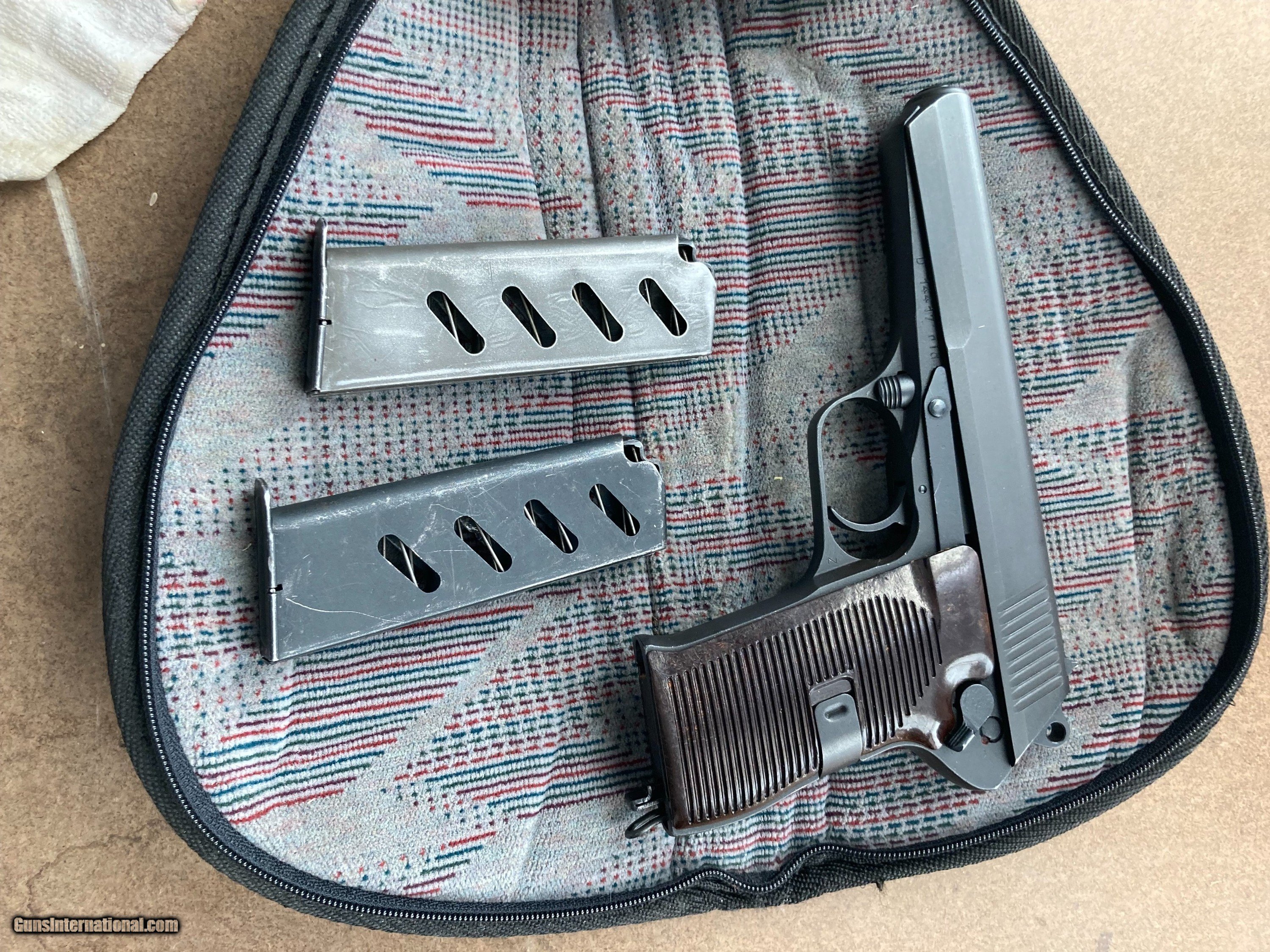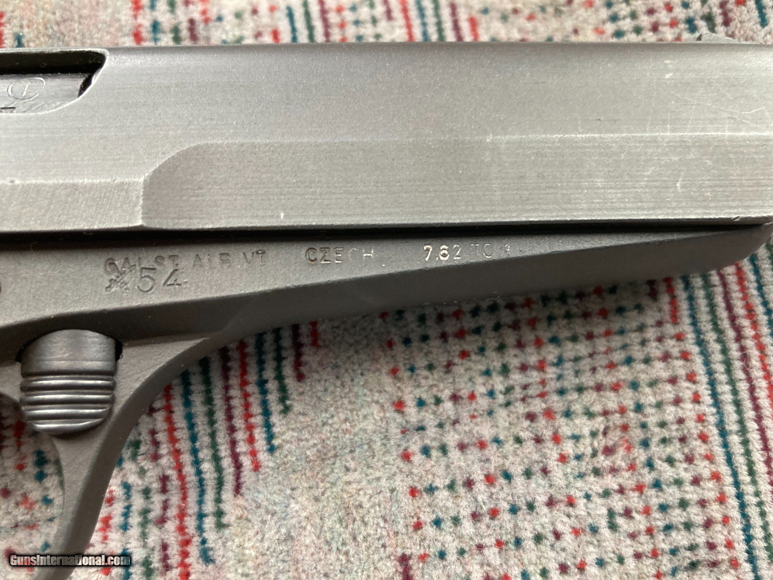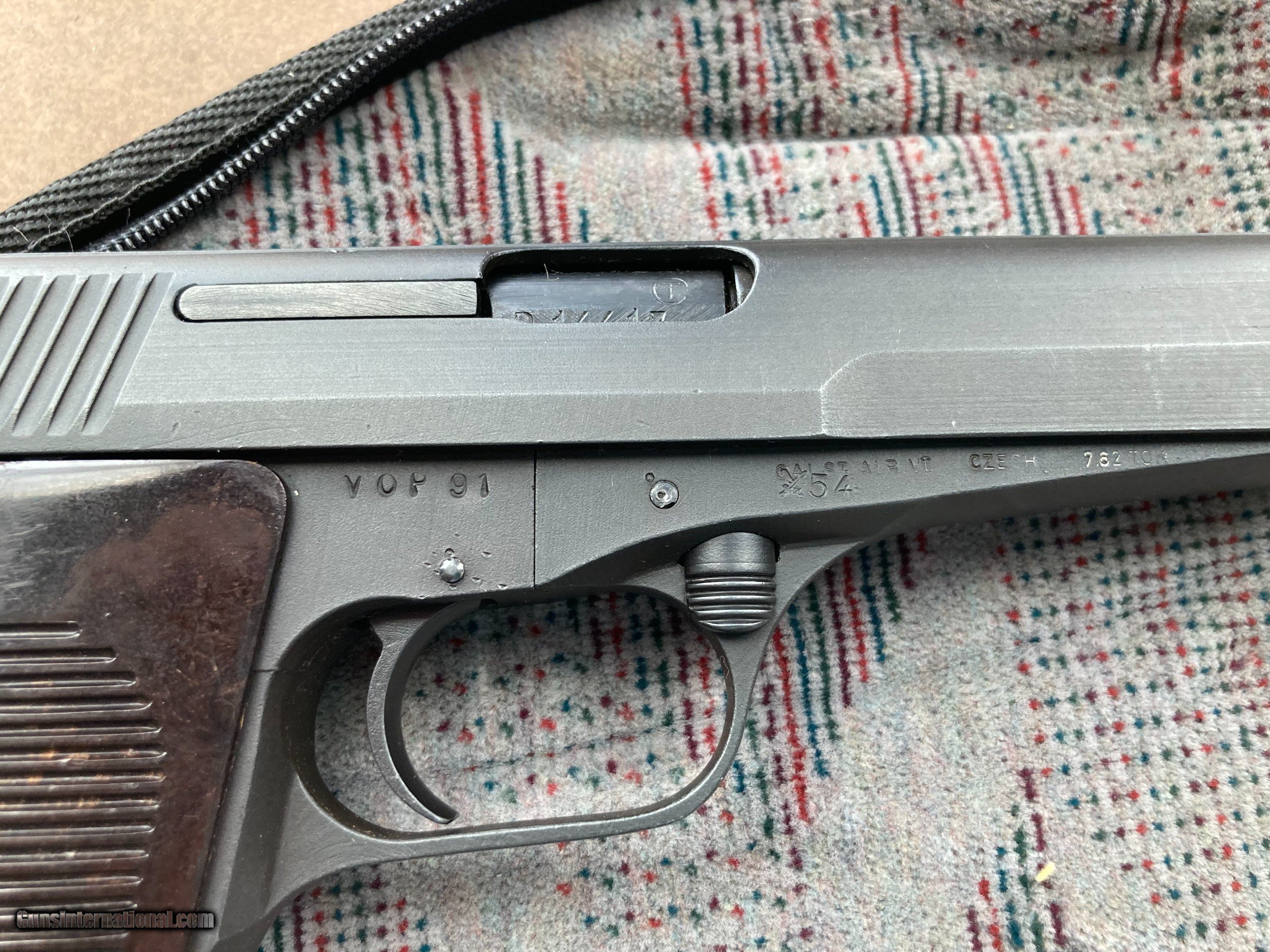 Description: Nice CZ 52, finish 95%+, good bore, good shooter, 2 magazines. shipping actual cost. SOLD Curio/Relic: Yes Handgun Caliber: 7.62x25mm Tokarev Manufacturer: CZ Model: 1952 Serial Number: D4417 Condition: Very good - almost new Metal Condition: no iisues Wood Condition: chips in grips Bore Condition: very good |