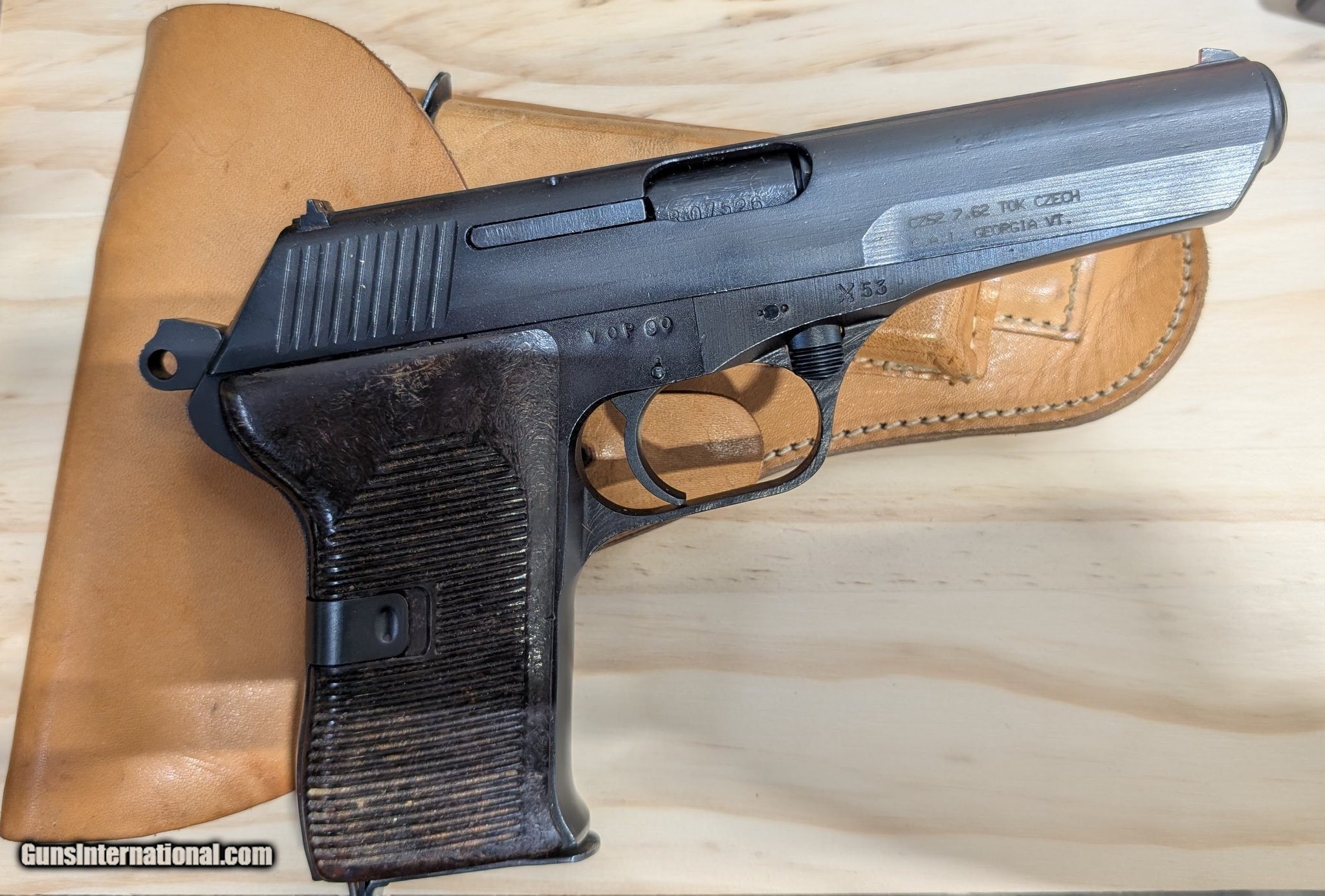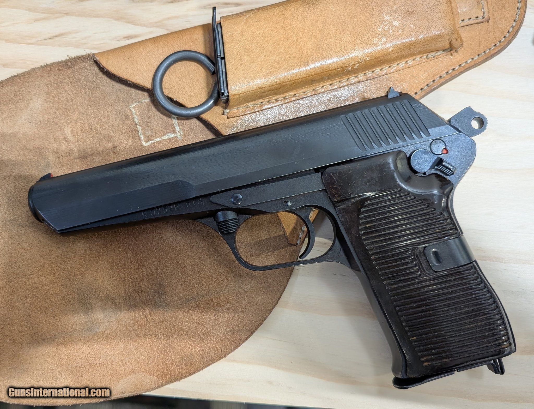 Description: Guns Listing ID: 585591 CZ 52 – 7.62x25mm – Used (Good Condition) Cold War Classic. Steel Frame. Surprising Power. This pre-owned CZ 52 is a robust, roller-locked military pistol chambered in 7.62x25mm Tokarev—a high-velocity round known for its flat trajectory and armor-piercing potential. Built for durability and precision, the CZ 52 features a full steel frame, single-stack magazine, and distinctive styling that sets it apart from modern handguns. ? Condition: Good ? Caliber: 7.62x25mm Tokarev ? Capacity: 8+1 ? Barrel Length: 4.5\" ? Action: Single-action, roller-locked recoil ? Sights: Fixed notch and post ? Includes: Two magazines, holster Whether you‚re a collector of Cold War-era firearms or looking for a unique range piece, this CZ 52 delivers old-world craftsmanship and ballistic punch in a striking, all-steel package. Manufacturer: CZ Model: 52 Caliber Info: 7.62X25MM TOKAREV Condition: Used - Non-Certified Barrels: 4.5" BARREL Action: SEMI AUTOMATIC Finish: black Price: $567.99 Contact Seller |