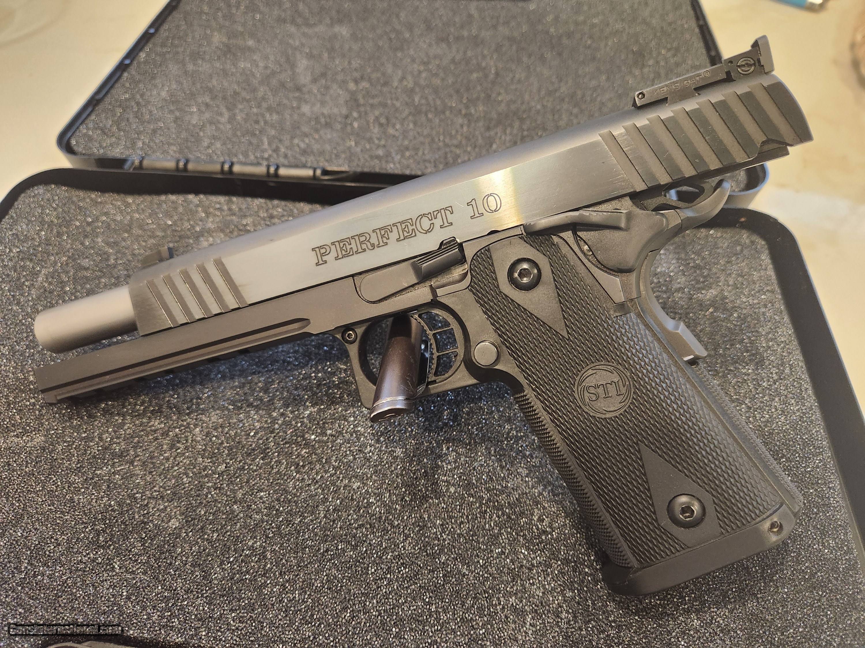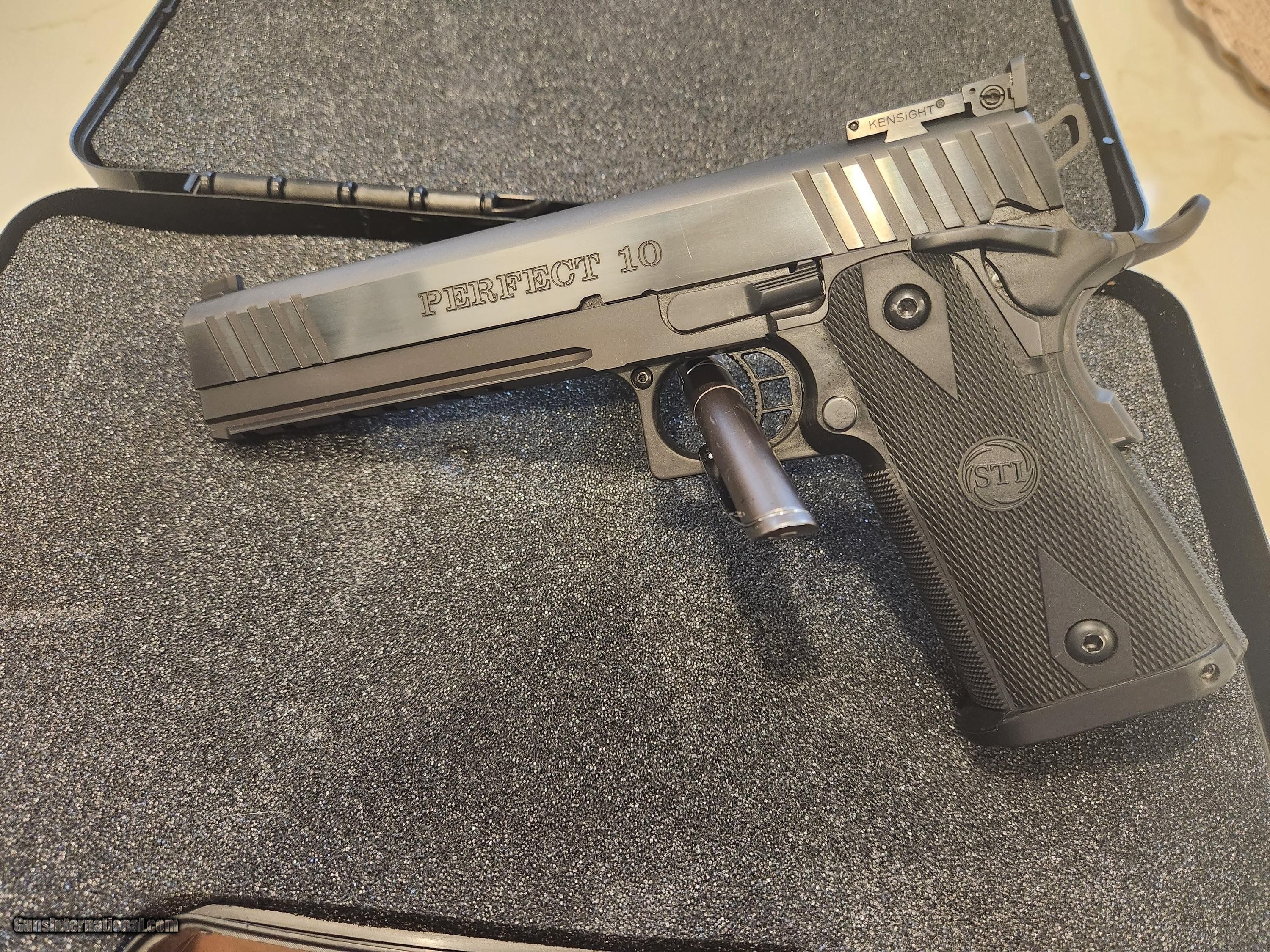 Description: Like new. With Box. SOLD Handgun Caliber: 10mm Auto Manufacturer: STI INTERNATIONAL Model: PERFECT 10 Serial Number: On request Condition: 9.5 of 10 Metal Condition: 10 Finish: Blue |