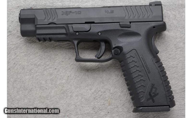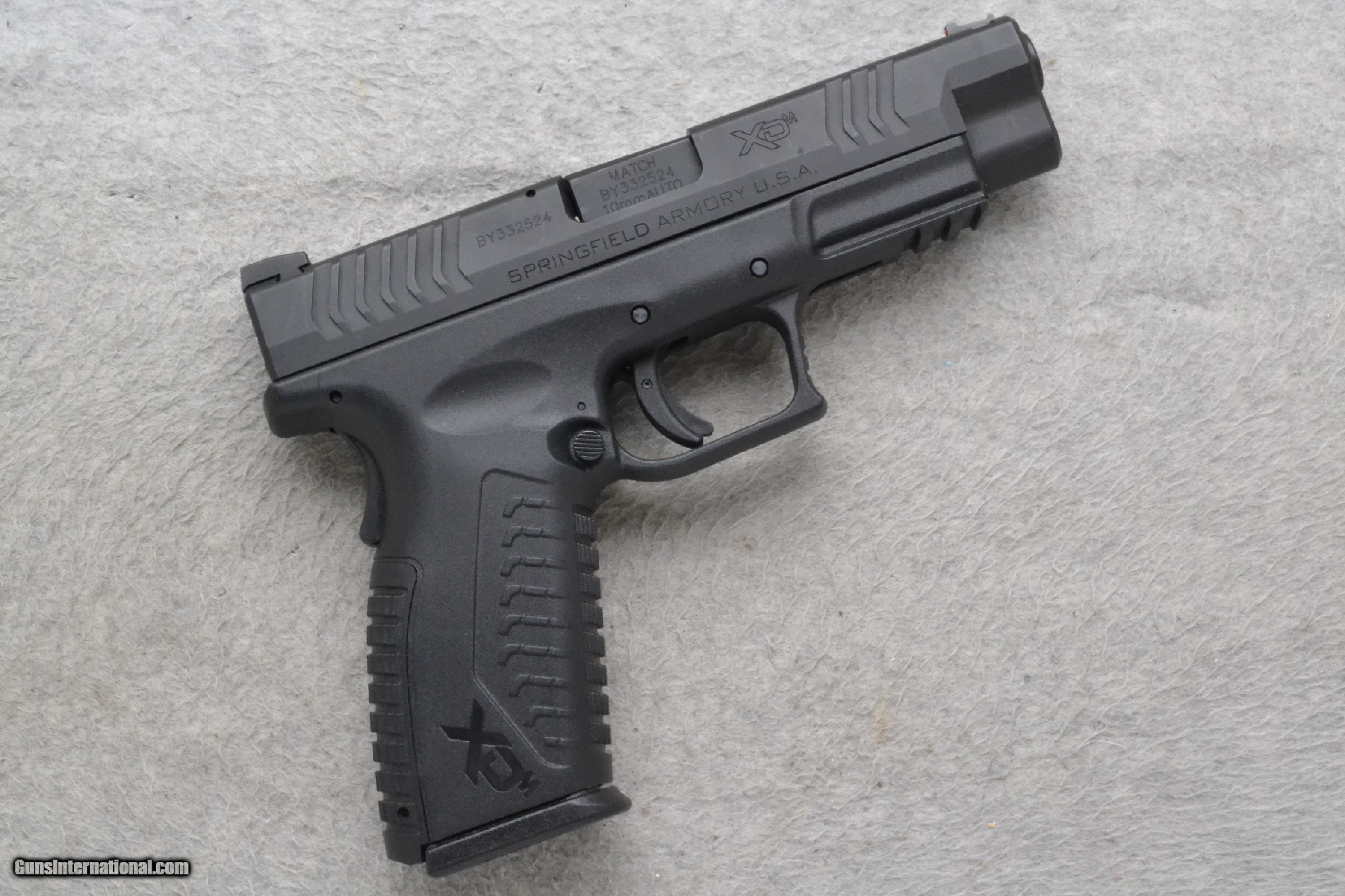 Description: This Springfield Model XDM-10 is a right-hand semi auto pistol in 10mm Auto Cal. It has a 4.5-inch Match barrel with front and rear slide serrations, red high visibility sight and white two-dot notch rear sight. The grip is a textured black polymer pistol with a grip safety. Features a lower accessory rail. 10mm Auto. 10mm Auto Barrels: 4.5 inches Weight: 2 lbs Item Location: Richfield, WI Price: $579.99 Contact Seller |