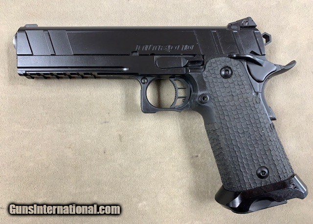 Description: An excellent original condition STI International Nitro 10 Tactical. This 5 inch 10mm auto pistol is the equal of any of recent manufacture and this one is in the box with all the papers, correct labels, etc. We note quite a few folks are carrying these in bear country these days instead of the usual revolver. A lot of power plus increased firepower! SOLD Handgun Caliber: 10mm Auto |