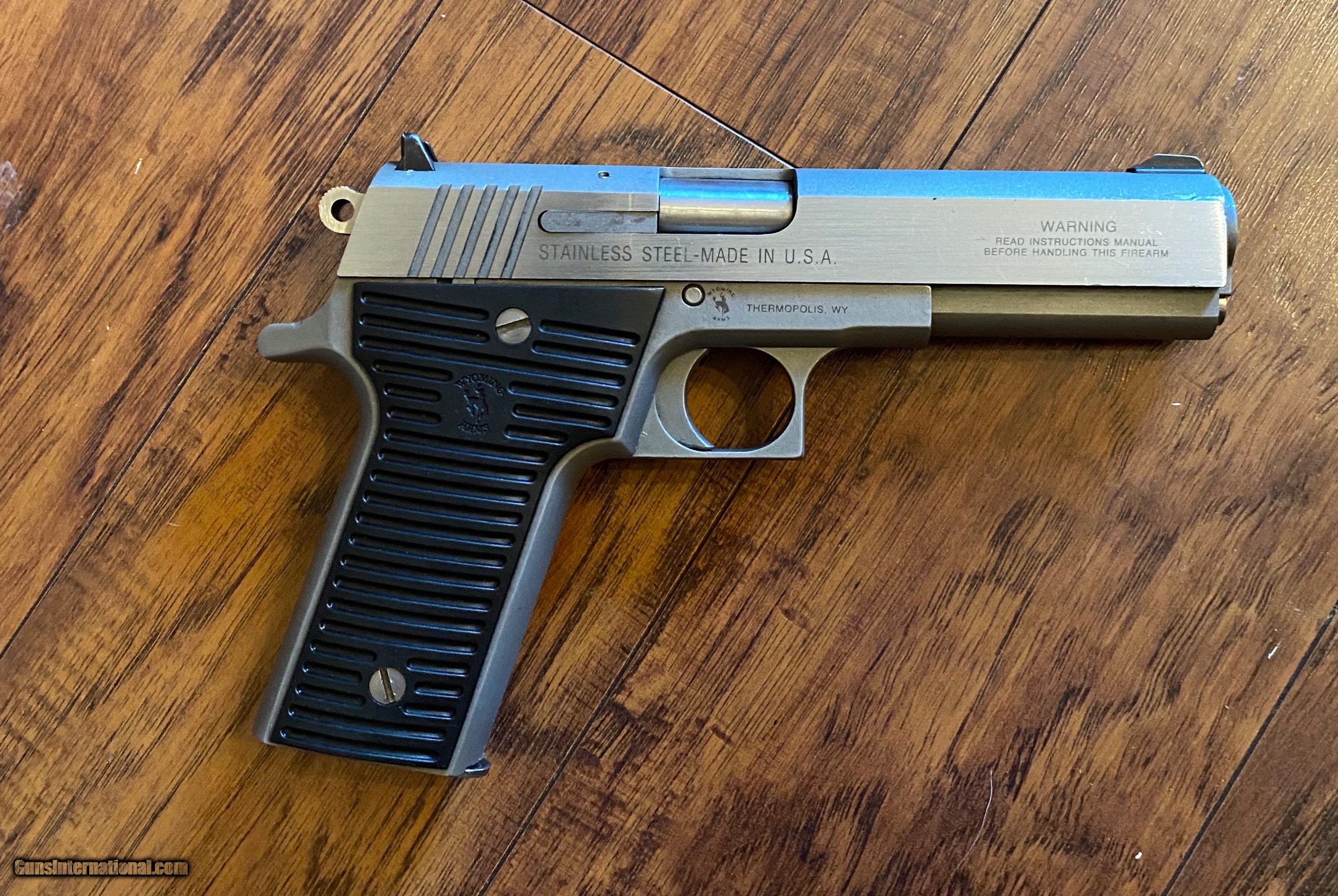 Description: Nice Rare Wyoming Arms 1911 Parker 10mm pistol, all stainless construction. Includes 1 stainless mag. Great shape. no credit card fees! Fast FedEx Shipping $20 SOLD |