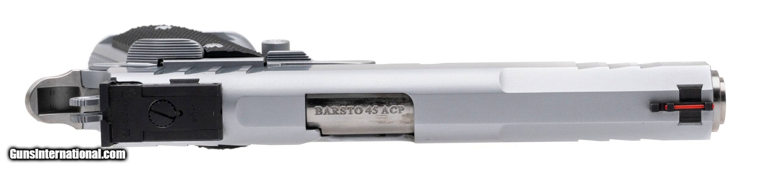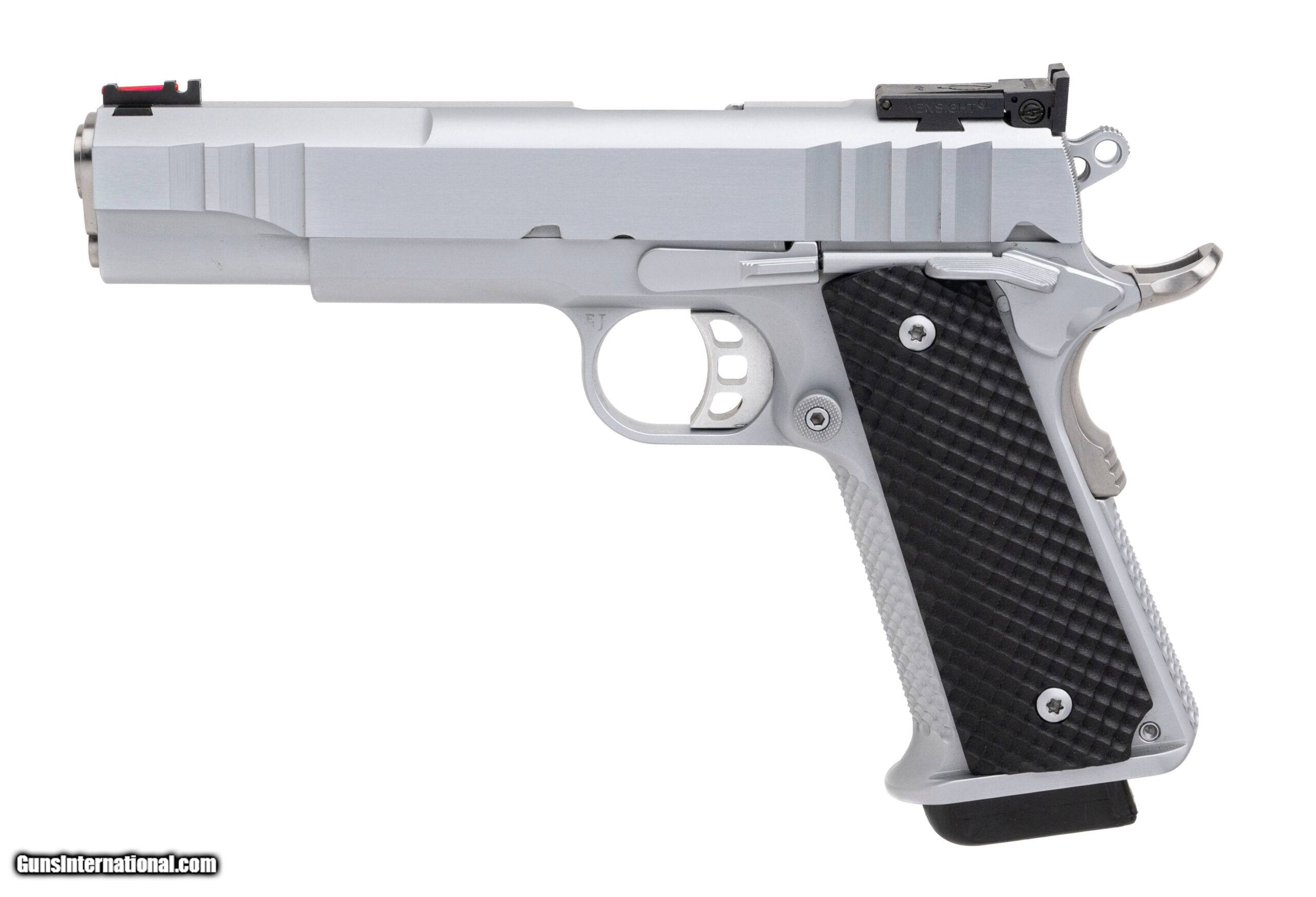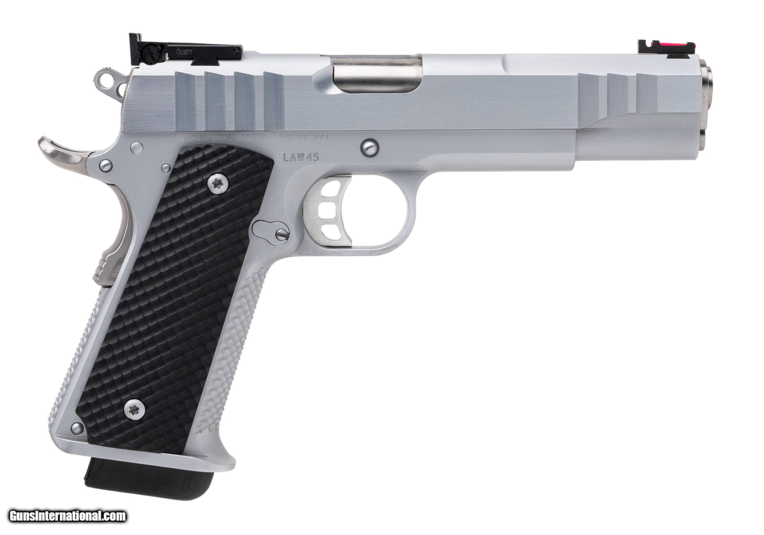 Description: "SN: LAW45. Modern production, .45 Auto with an 5"" stainless steel Barsto barrel. Custom stainless steel Government size 1911 pistol with Kensight target sights and VZ G10 grips. Custom work by Houston's renowned pistolsmith Eddie Jimenea. Custom features includes milled slide, flared integral magwell, custom stippling & serrations, perfectly fitted safety control, and trigger job with the smoothest action built on a Caspian frame. Like new condition. Price: $3,495.00 Contact Seller |