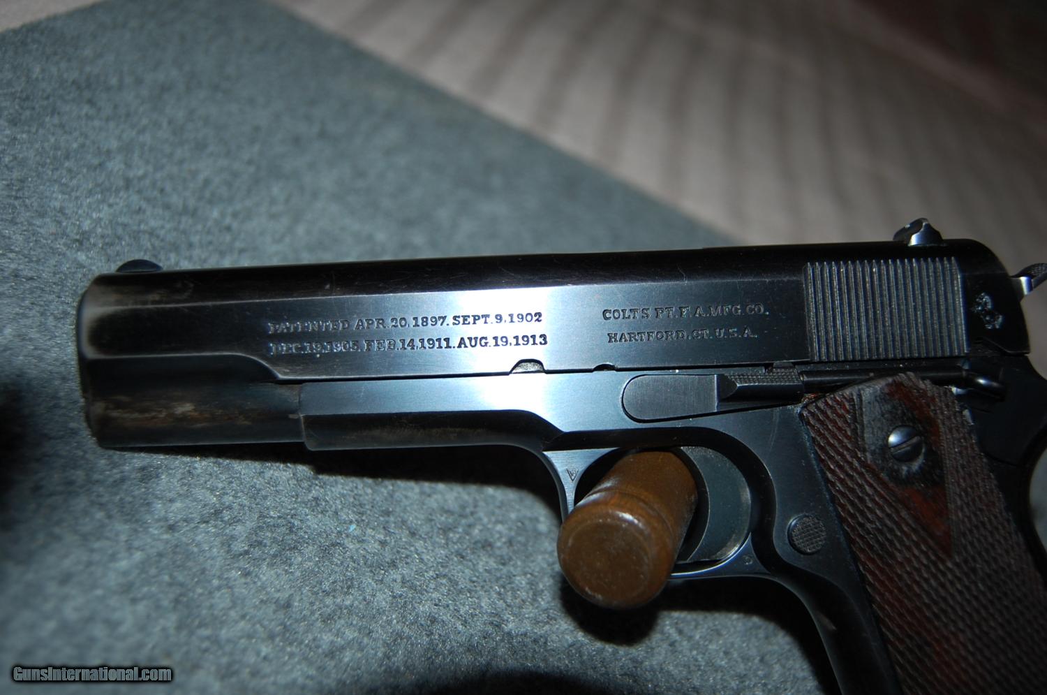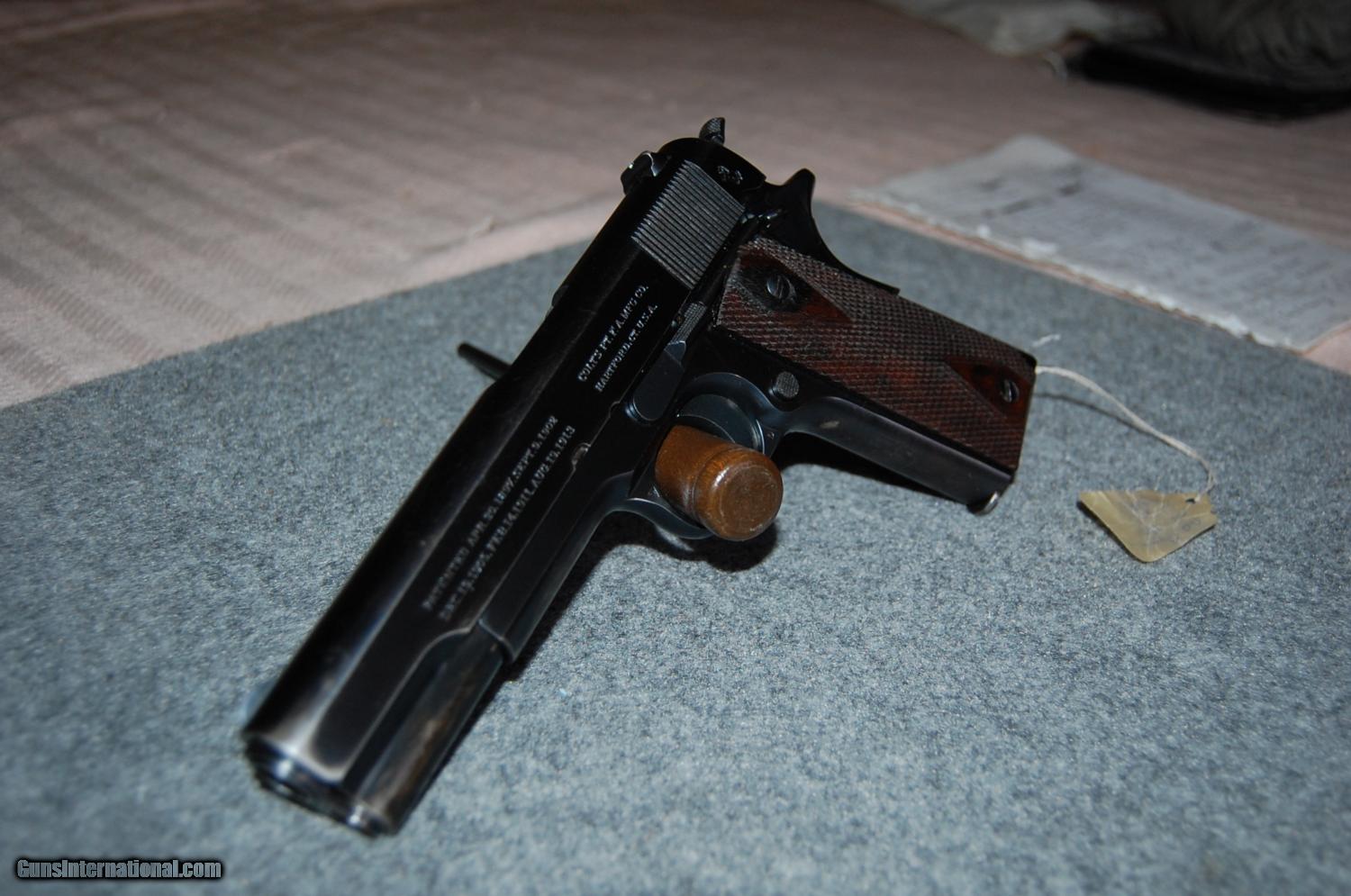 Description: 1916 .45 AUTO Commercial Pistol is 98% with some edge wear on front of slide and front and rear strap Very Nice 1911 from my collection SOLD Curio/Relic: Yes |