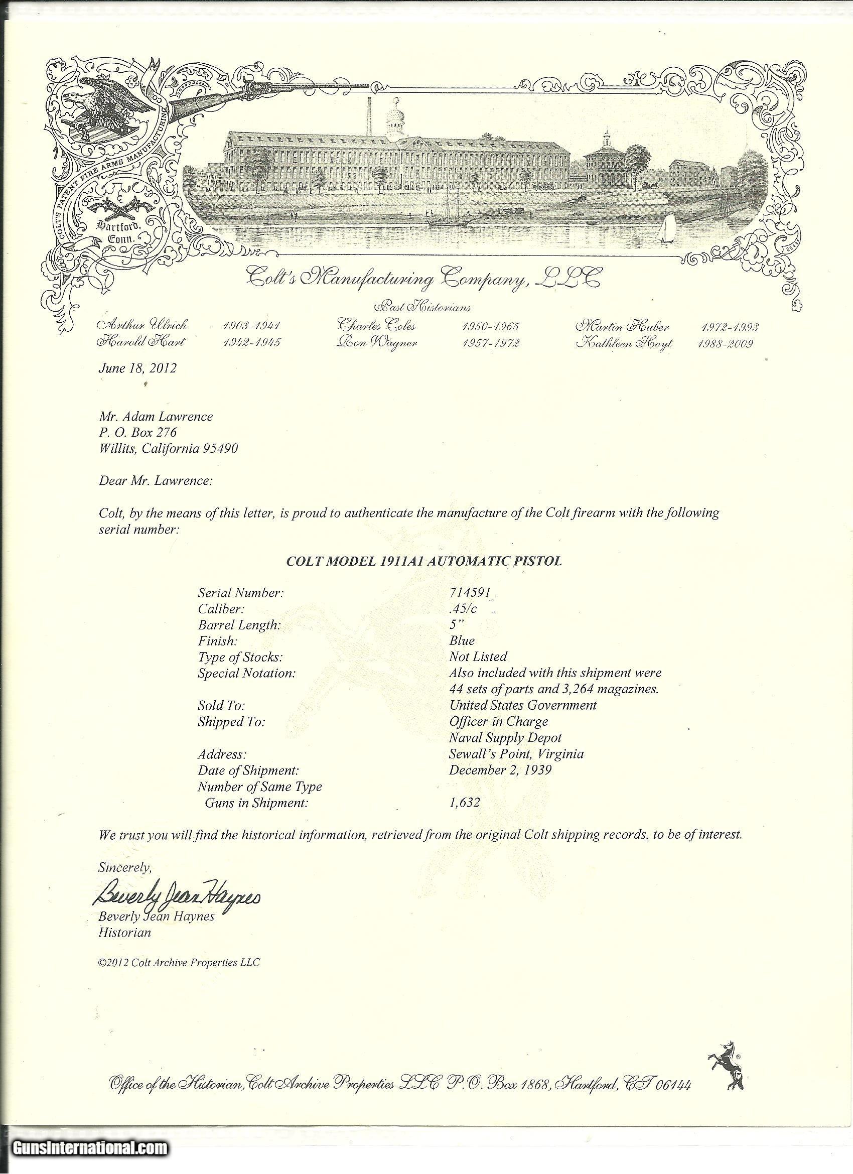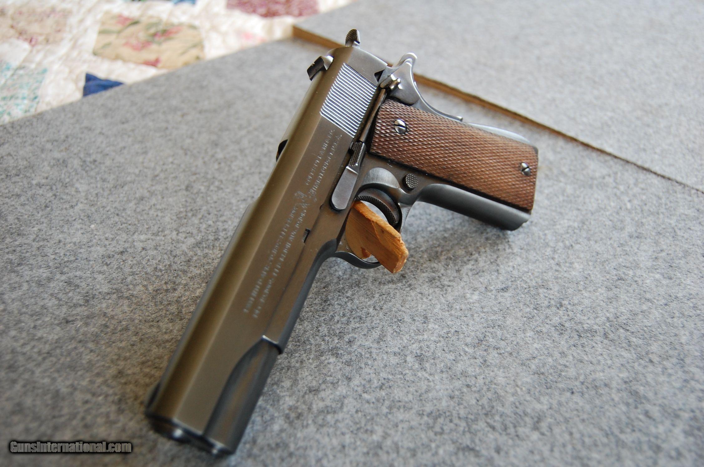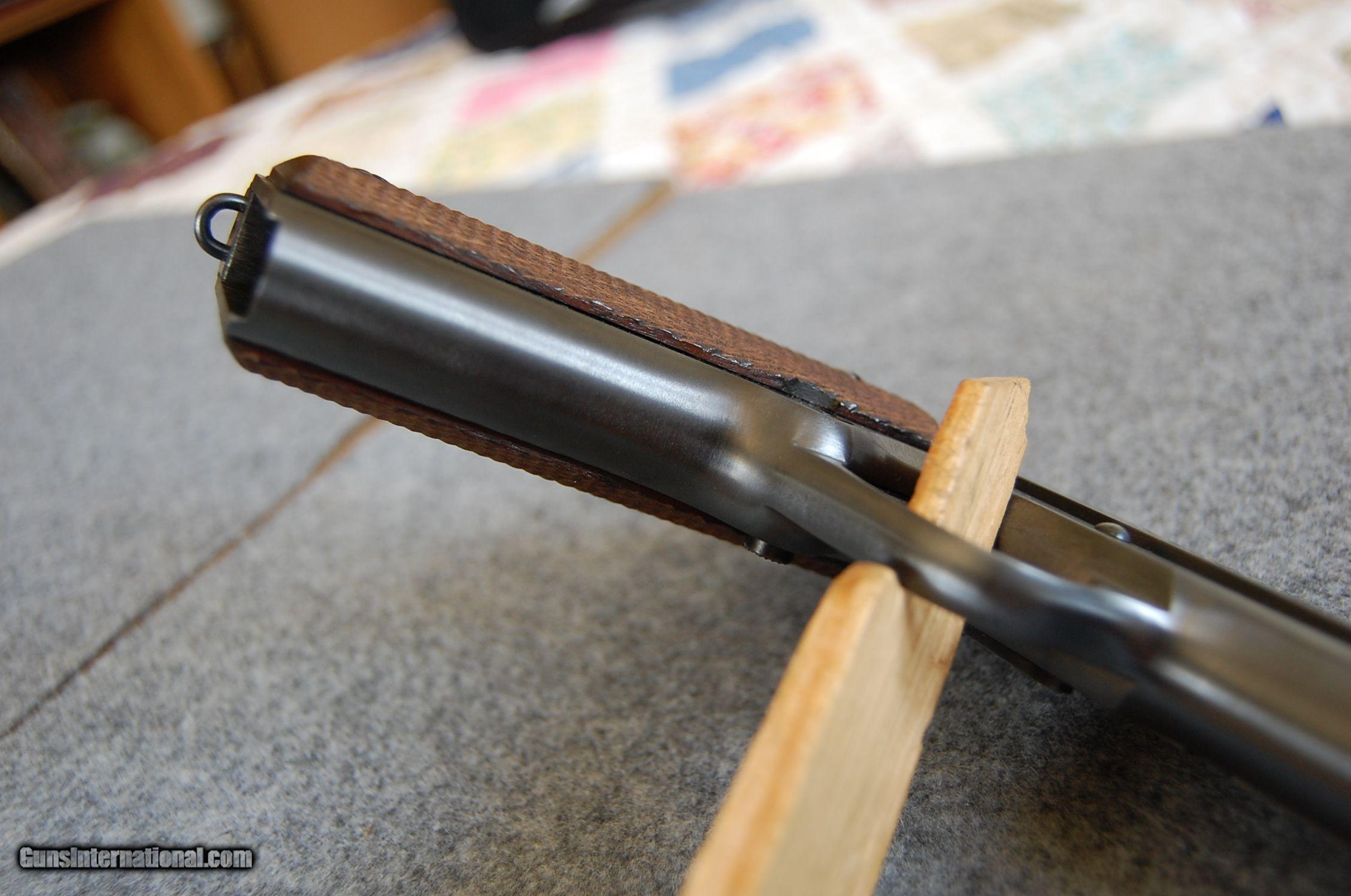 Description: 1939 Navy 1911A1 S# 714591 Excellent piece from my collection 45cal all correct beautiful 1911 Refinished by the late great Steve Moeler SOLD |