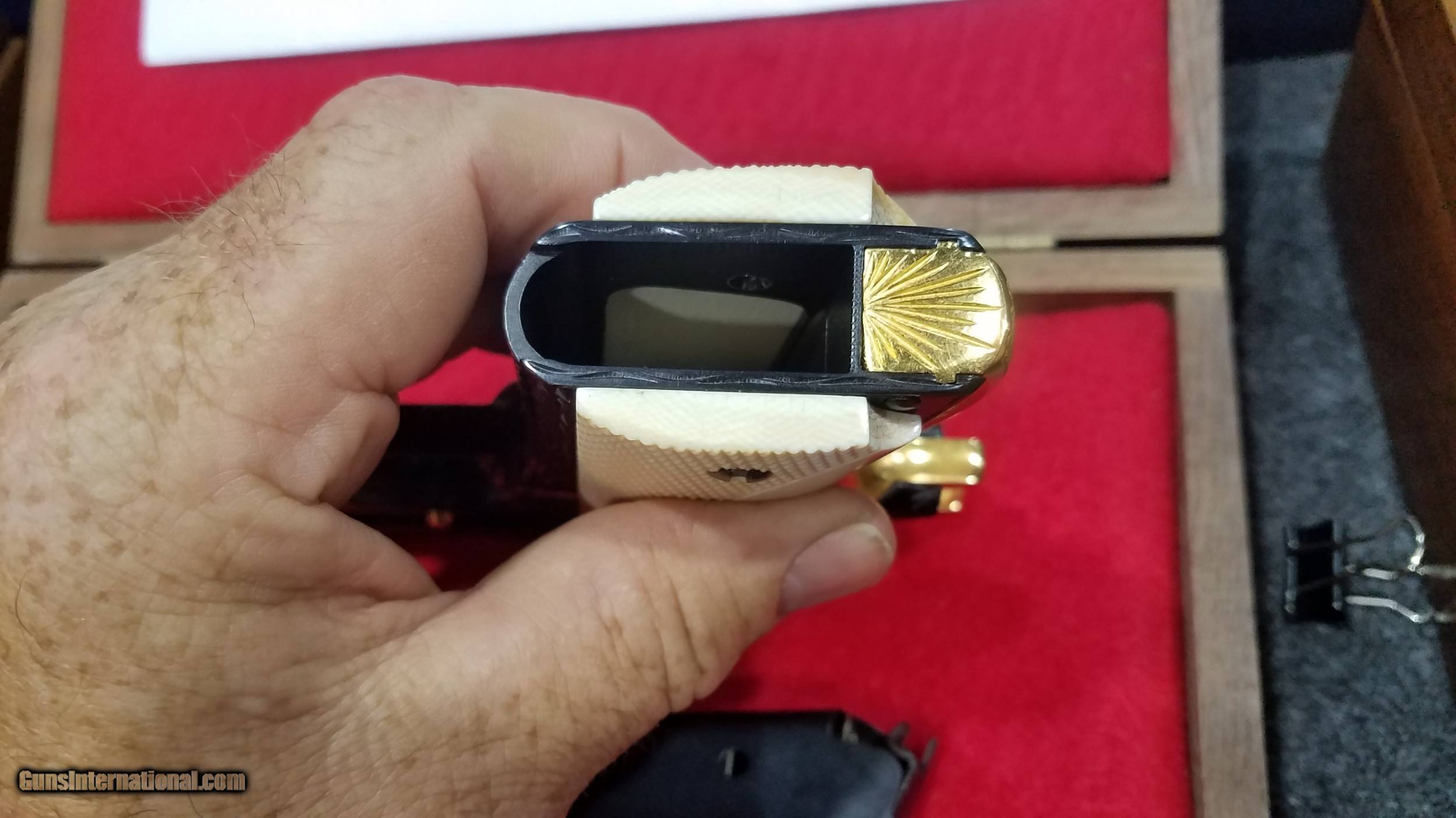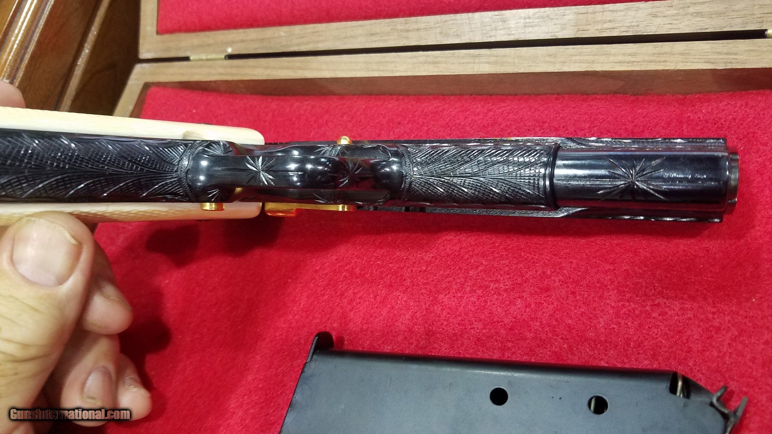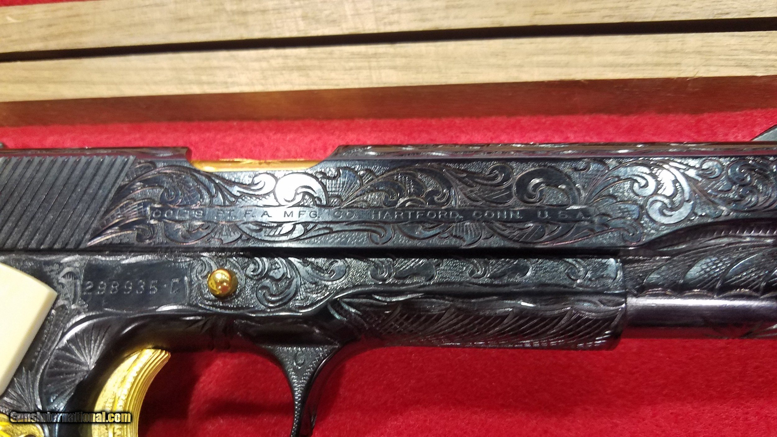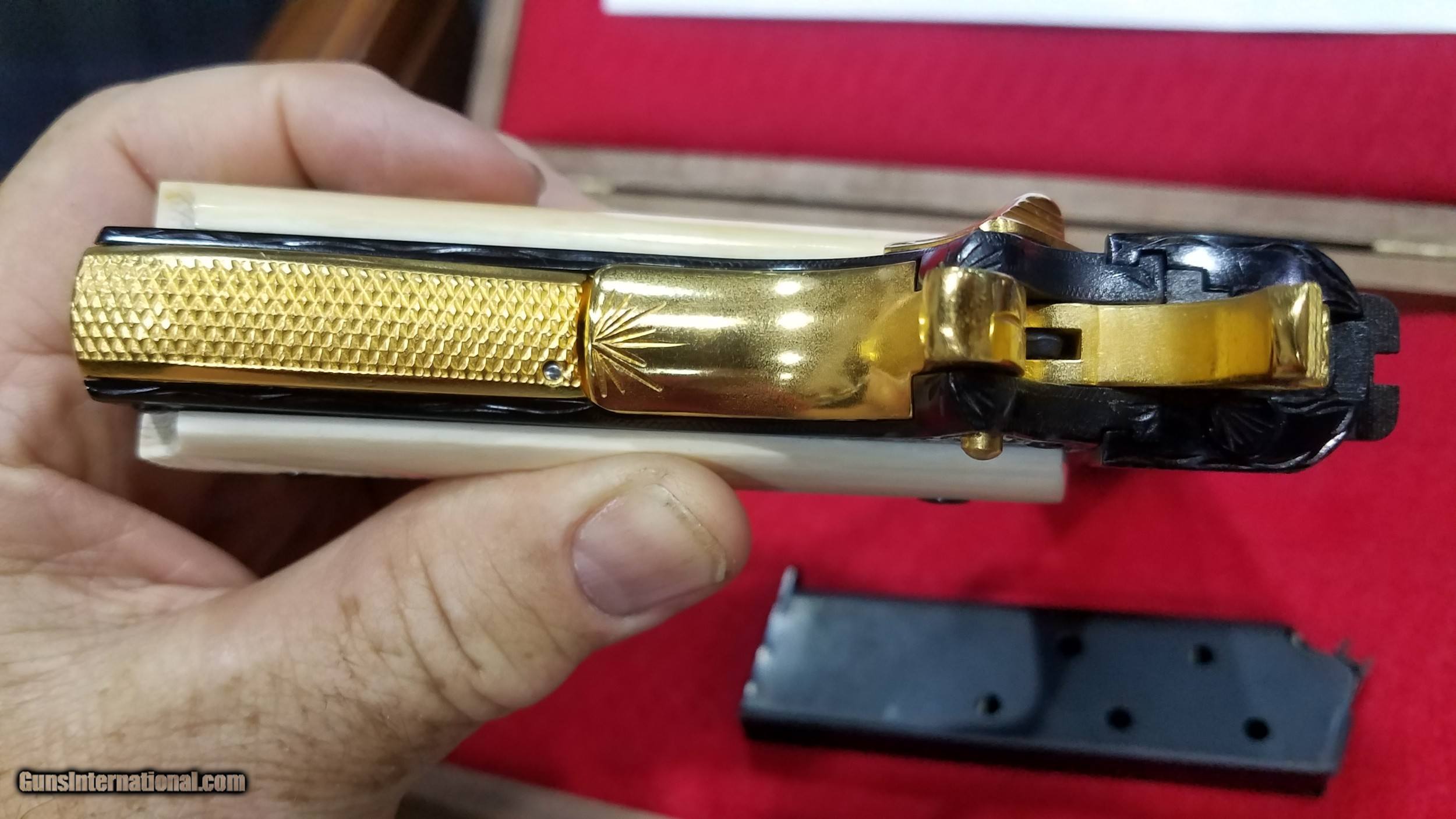 Description: 1965 Colt Government engraved with Ivory grips and Colt Walnut case. Gun is flawless. SOLD Curio/Relic: Yes |