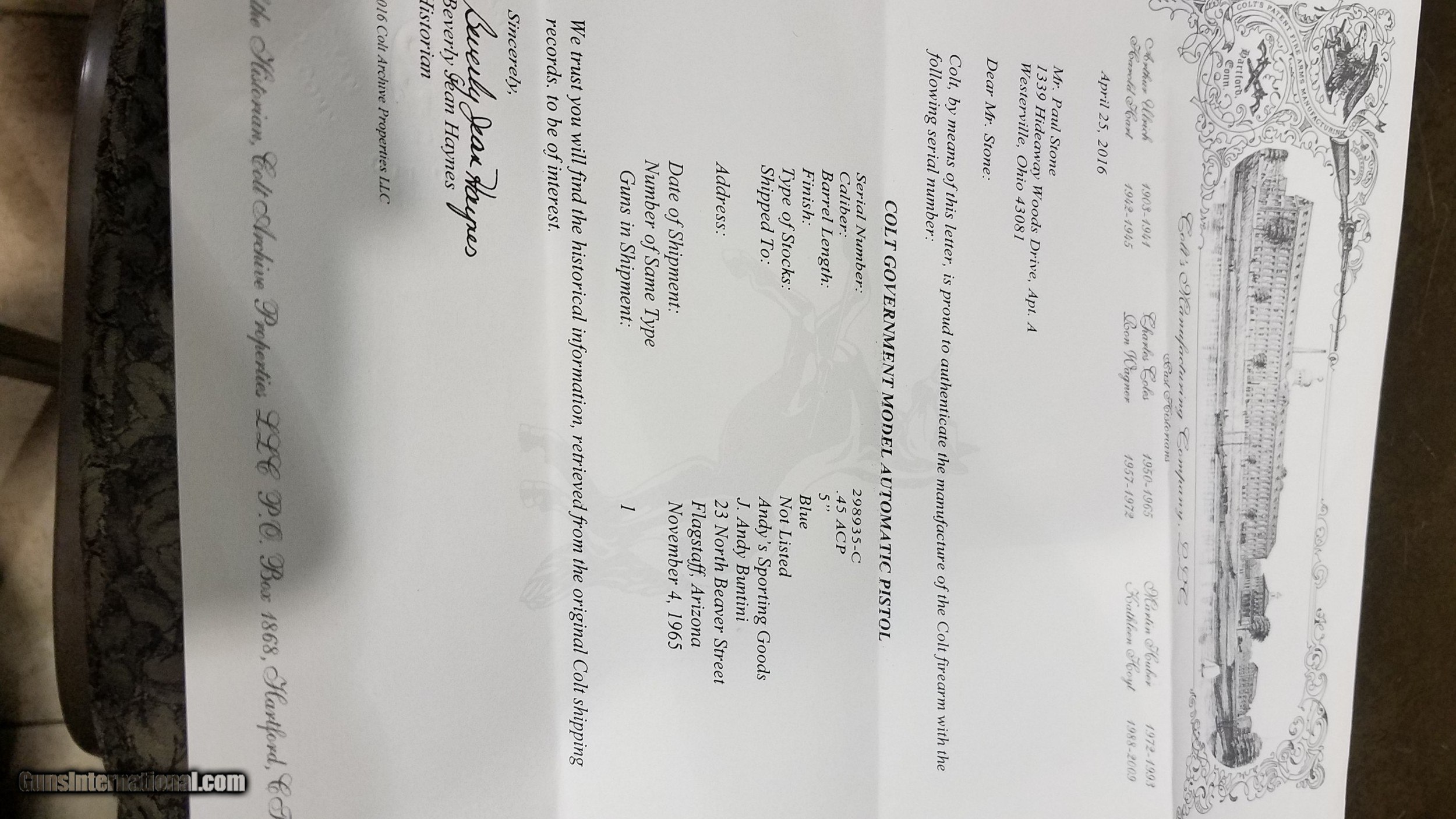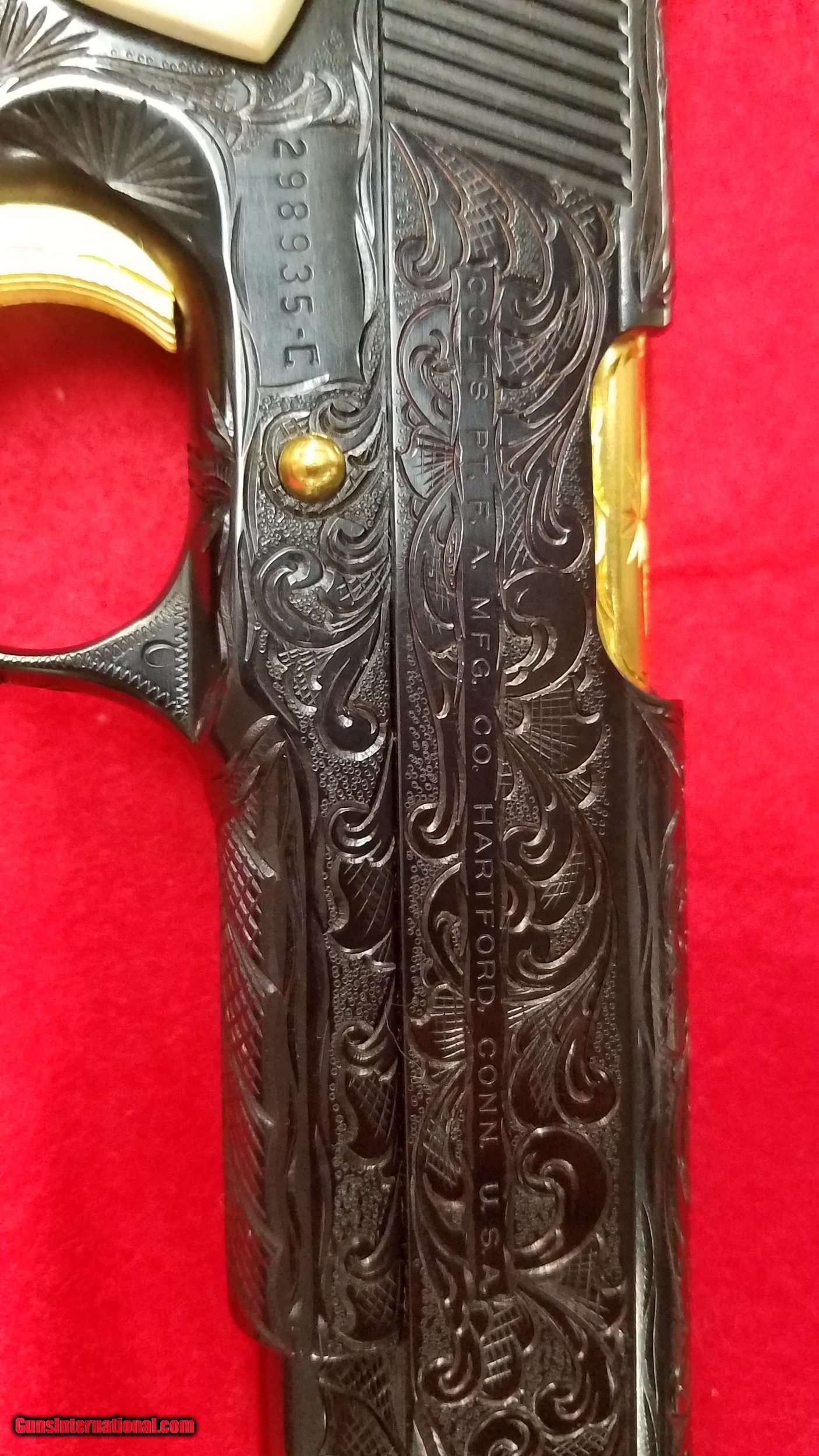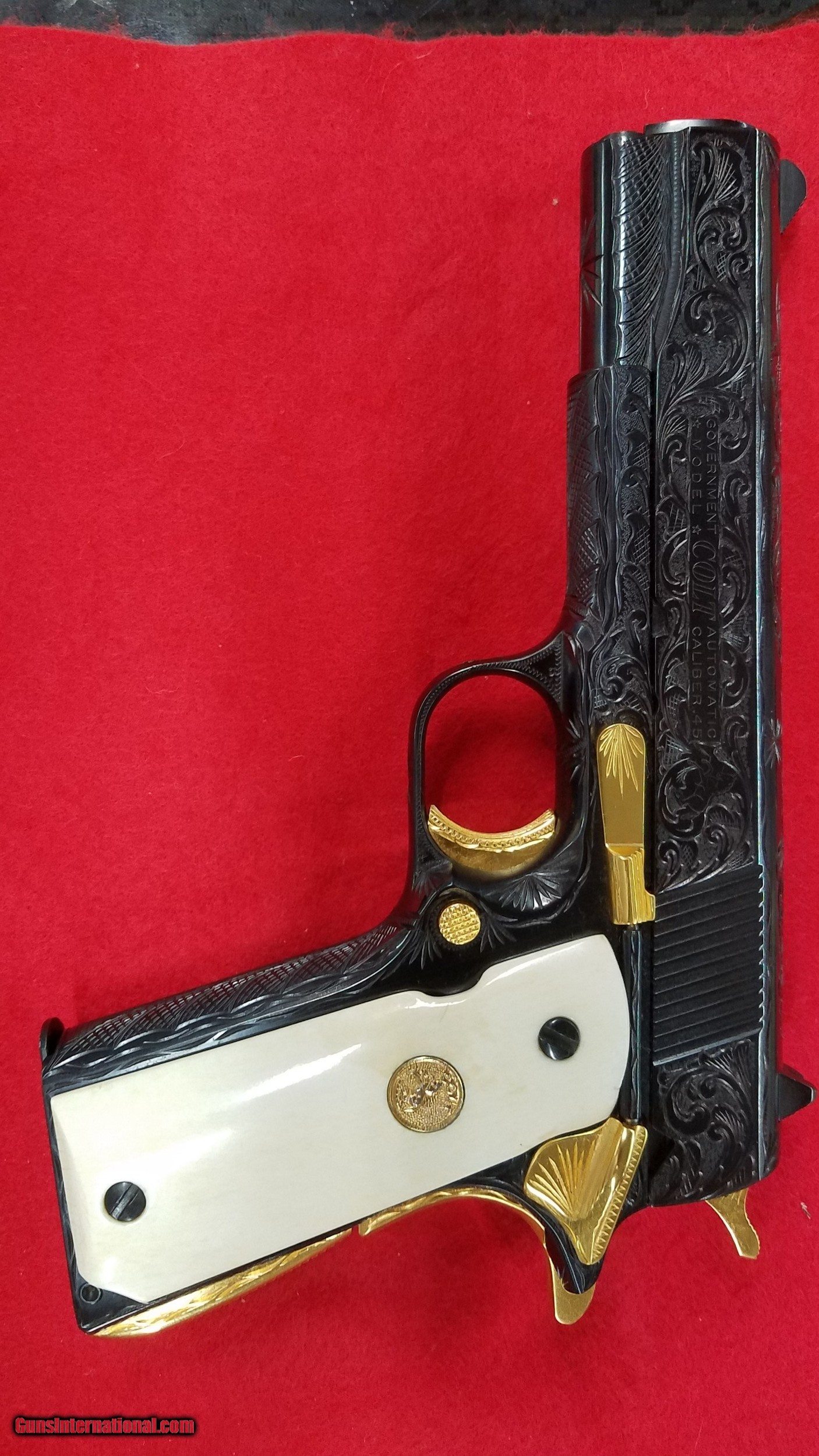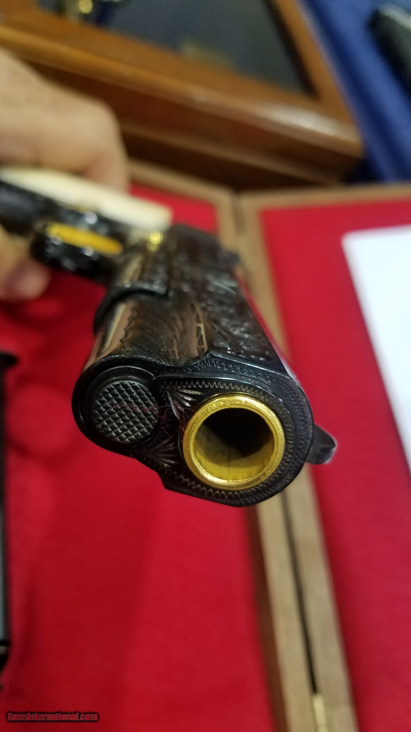 Description: 1965 Colt Government engraved with Ivory grips and Colt Walnut case. Gun is flawless. SOLD Curio/Relic: Yes |